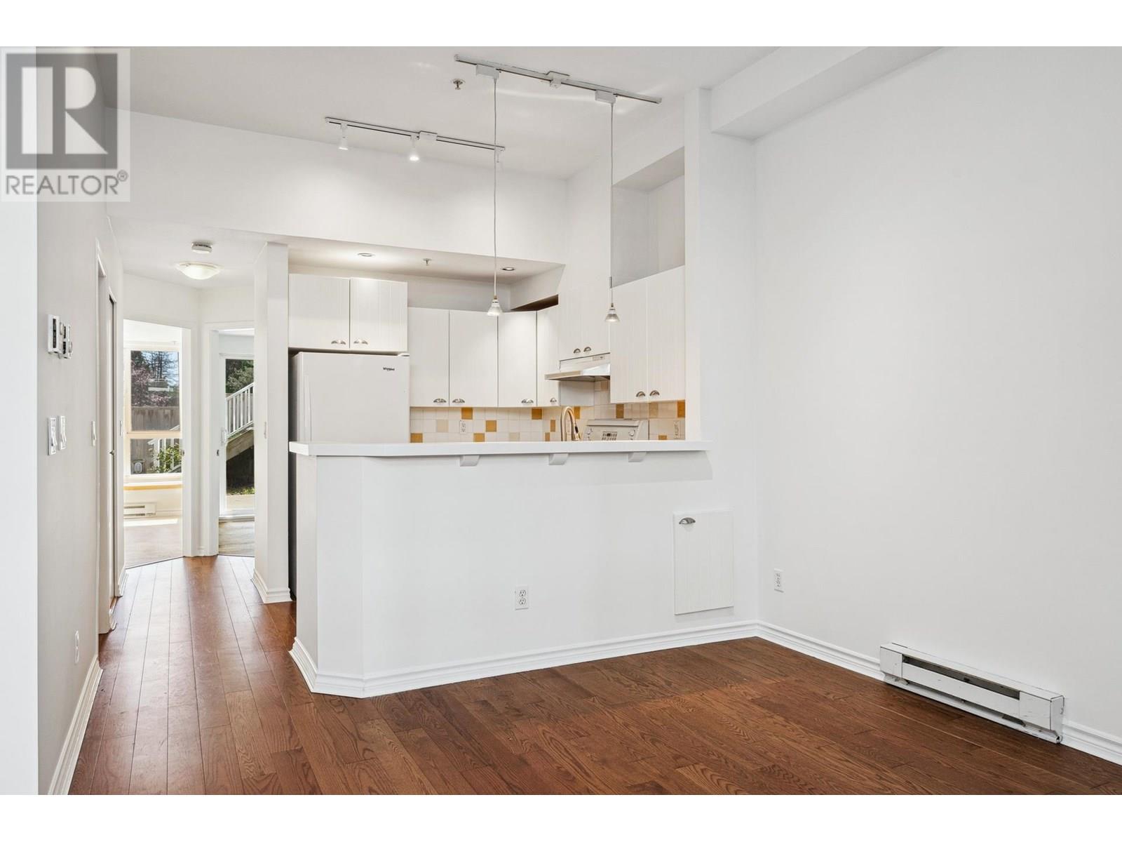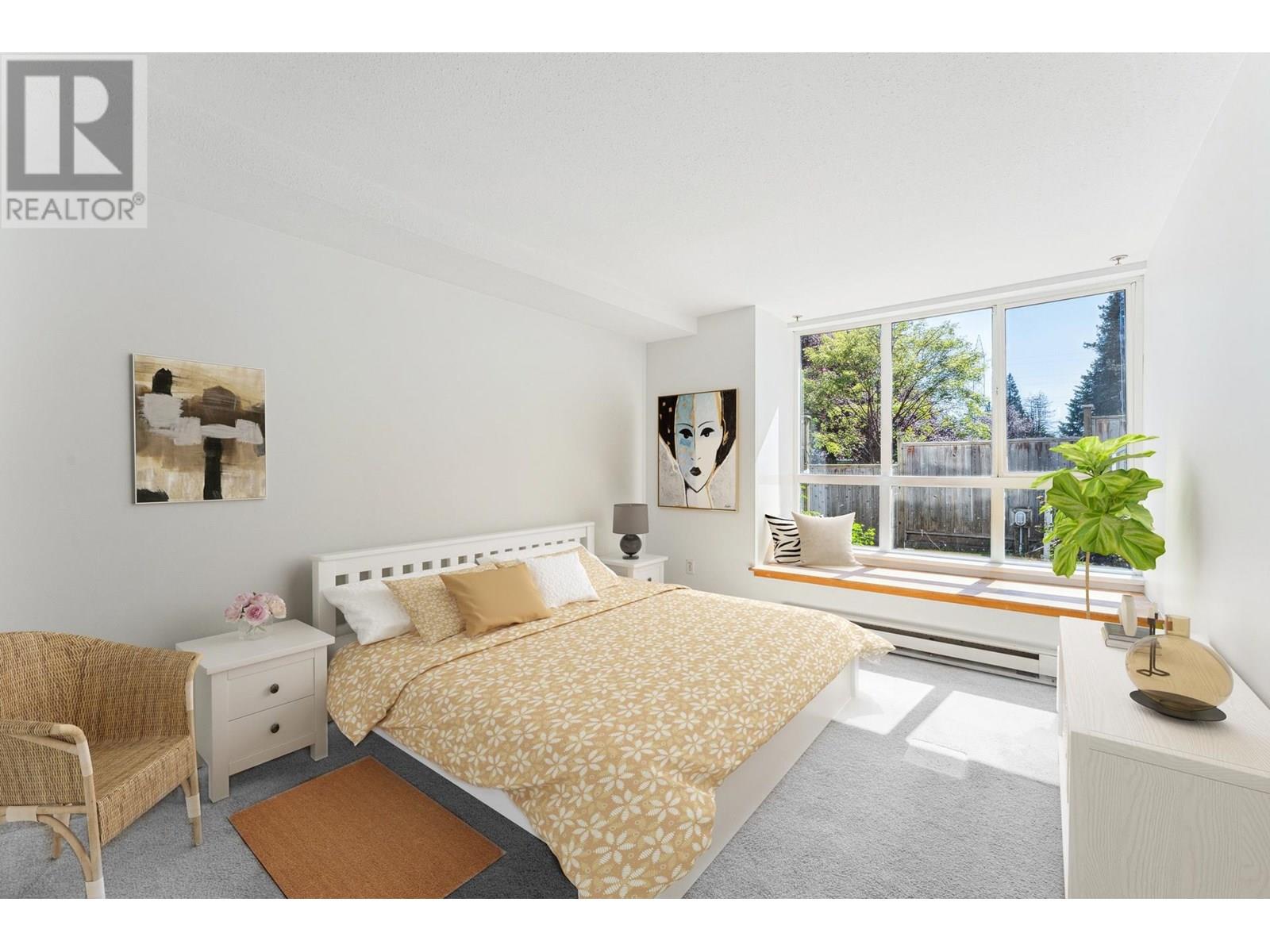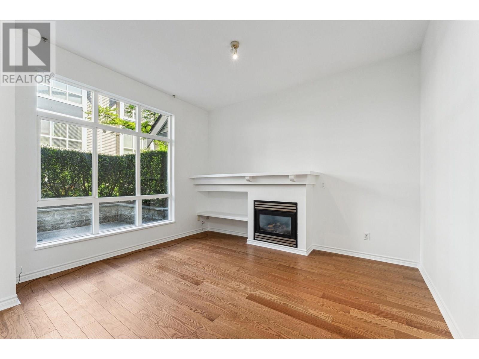 Garden-level townhome in the heart of family-friendly Lynn Valley. This bright & spacious 2-bed, 1-bath home offers 800+ sq/ft of single-level living w/great indoor-outdoor flow. Large windows fill the space with natural light, & the open-plan living/dining area feats hardwood floors, gas fireplace & vaulted ceilings for added volume. The adjacent kitchen is clean & functional with white cabinets, matching white appliances & great storage. The spacious primary has window bench seating, a walk-through closet & access to a shared 5-pc bath. Fresh paint & carpets! Enjoy morning and evening sun from two generous patios, perfect for lounging, dining, or gardening. Tucked into a well managed complex, just steps from Lynn Valley Centre, Kirkstone Park, Karen Magnussen Rec Centre, & desirable schools. (id:48970) Show More