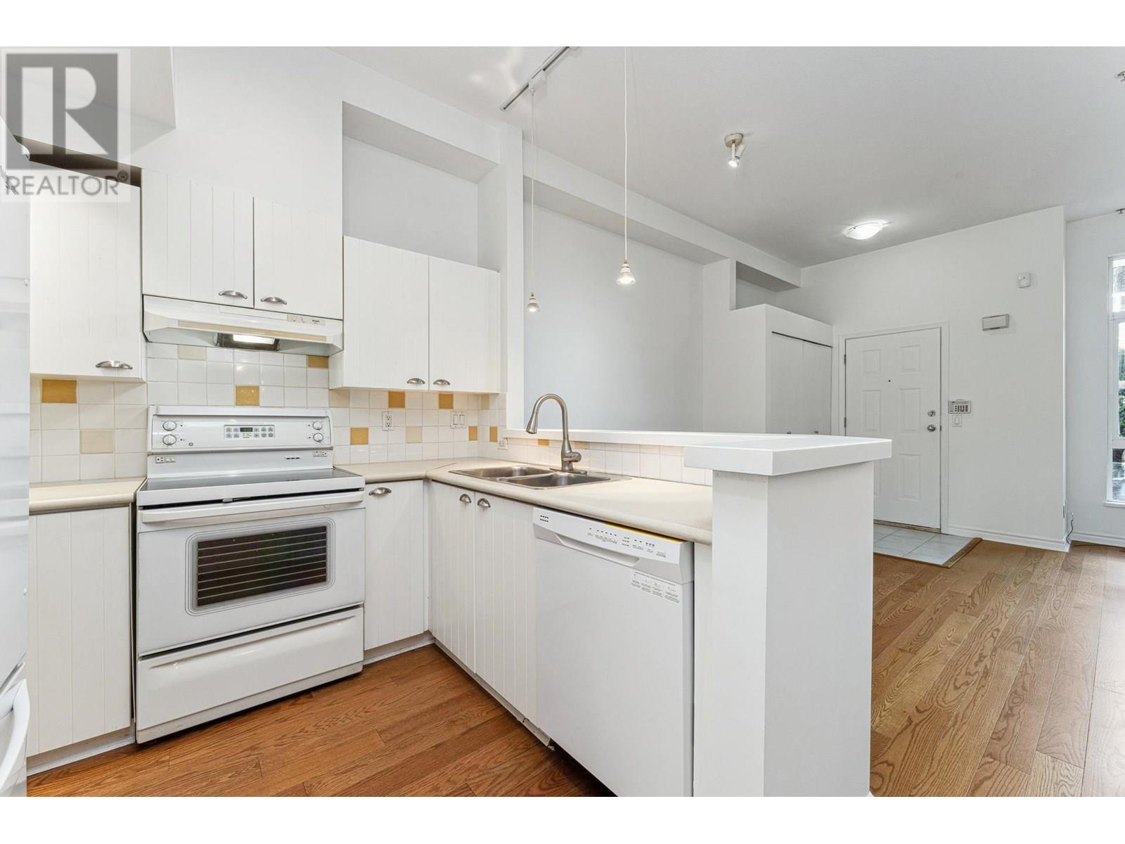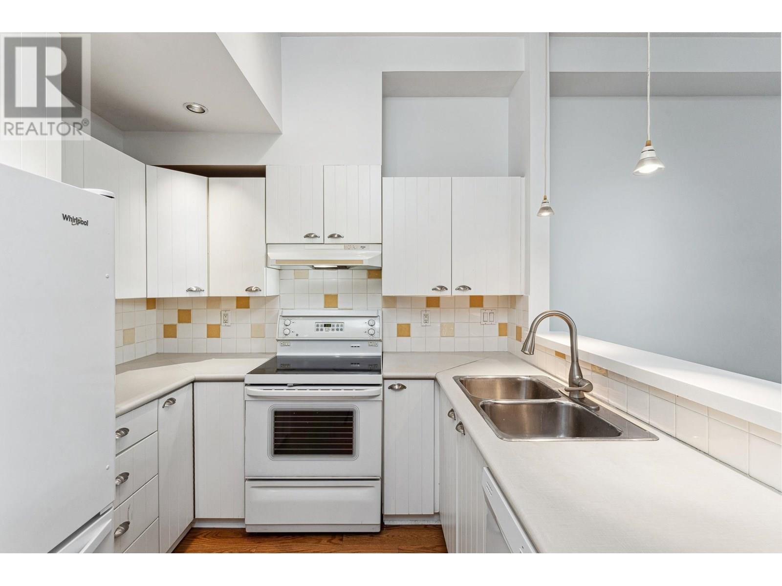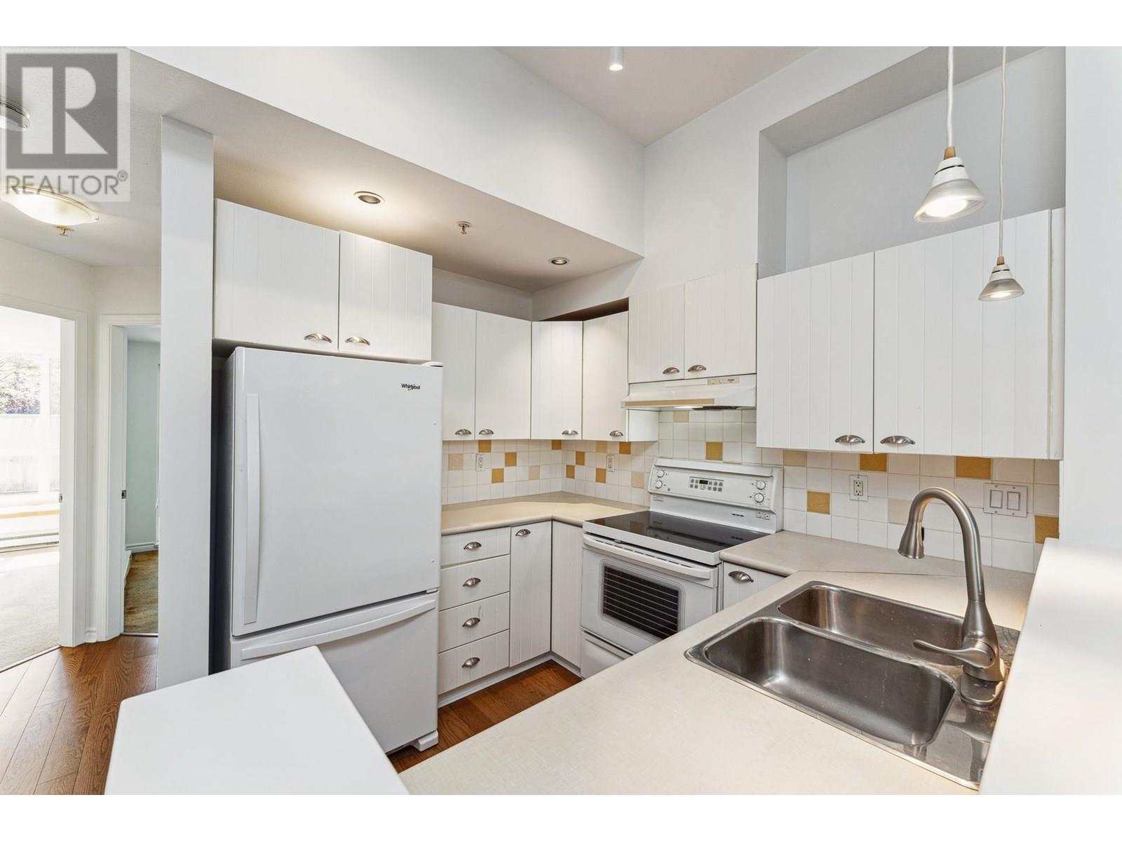 Garden-level townhome in the heart of family-friendly Lynn Valley. This bright & spacious 2-bed, 1-bath home offers 800+ sq/ft of single-level living w/great indoor-outdoor flow. Large windows fill the space with natural light, & the open-plan living/dining area feats hardwood floors, gas fireplace & vaulted ceilings for added volume. The adjacent kitchen is clean & functional with white cabinets, matching white appliances & great storage. The spacious primary has window bench seating, a walk-through closet & access to a shared 5-pc bath. Fresh paint & carpets! Enjoy morning and evening sun from two generous patios, perfect for lounging, dining, or gardening. Tucked into a well managed complex, just steps from Lynn Valley Centre, Kirkstone Park, Karen Magnussen Rec Centre, & desirable schools. (id:48970) Show More