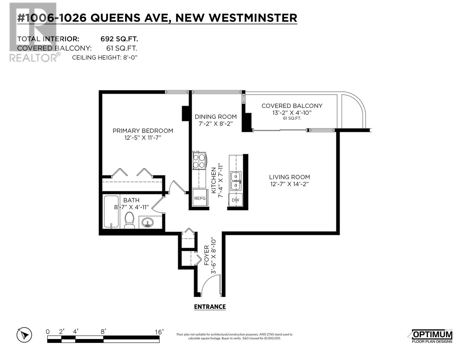 - Area 692 sq ft