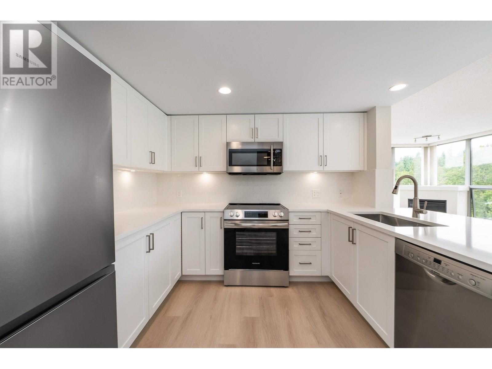 Welcome to The SENTINEL - a sought-after, well-managed & nicely maintained building just steps from Newport Village, Port Moody Rec Centre, and the SkyTrain. This stunning N/W corner unit offers privacy with no visible neighbours. Fully renovated: new flooring, baseboards, LED ceiling lights, plugs, switches, thermostats, cabinet doors, bathroom fans, fridge & stove. Enjoy quartz countertops with undermount sinks and new faucets in both the kitchen and bathrooms, plus a matching quartz backsplash and under-cabinet LED lighting in the kitchen. Bathrooms feature stylish vinyl wall coverings. Freshly painted and professionally cleaned-feels like a brand-new home and it's in a prime location. Amenities include a sauna, hot tub, steam room and fitness area. (id:48970) Show More