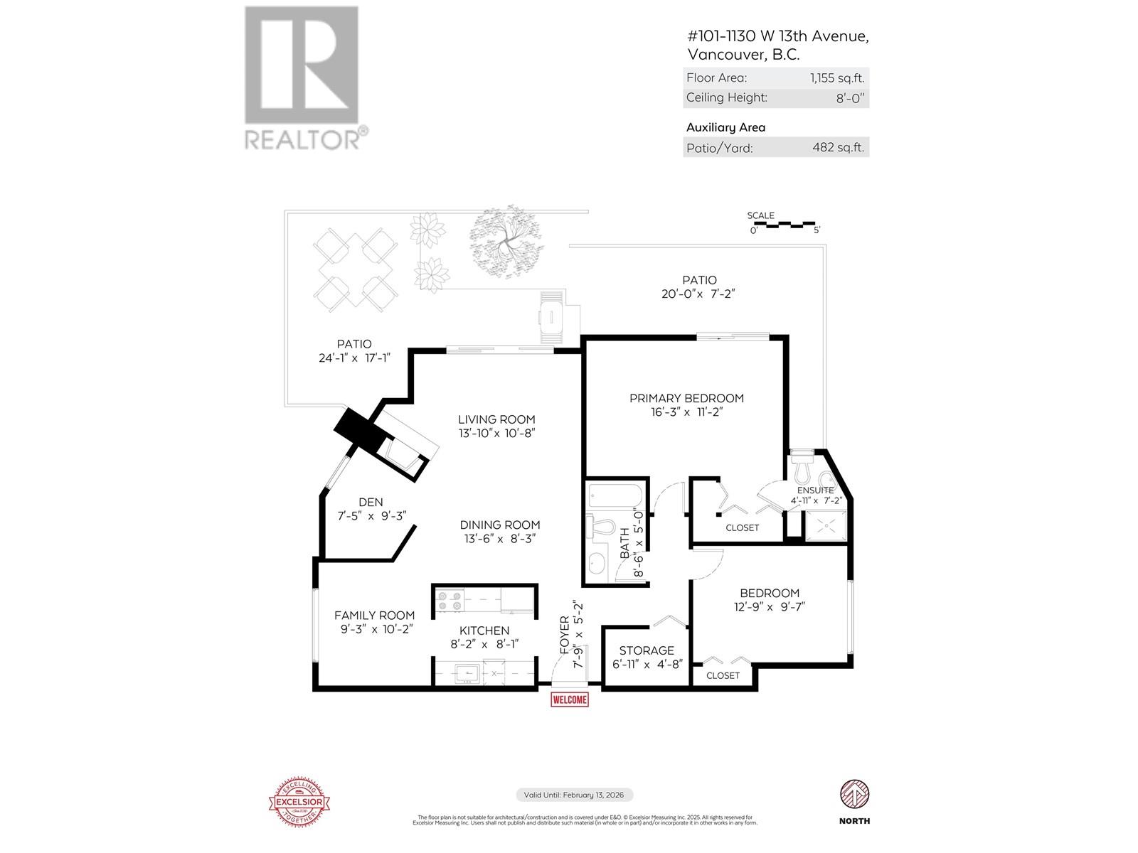 - Area 1155 sq ft