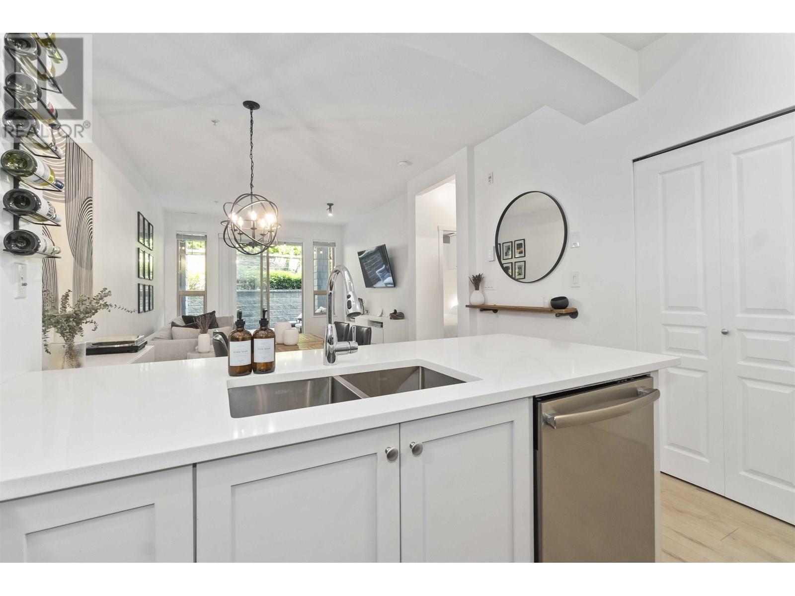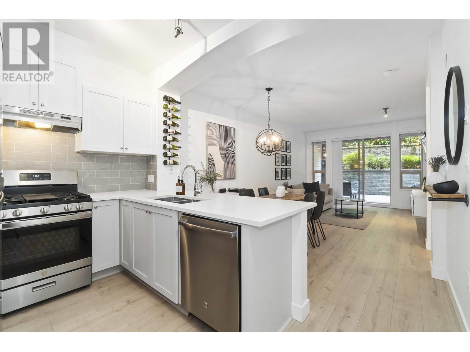 Welcome to Summerlin at Silver Springs! This beautiful 1 bed/1 bath FULLY RENOVATED, GROUND FLOOR condo features an open concept living space with 9FT CEILINGS, STAINLESS STEEL appliances, quartz counters, new light fixtures, shaker style cabinets, GAS RANGE, laminate flooring & designer paint. Spacious bedroom features a large WALK IN CLOSET and CUSTOM CABINETRY for extra storage space. Extra large PRIVATE PATIO, perfect for entertaining! LOW STRATA FEES and proactive strata make this an IDEAL INVESTMENT.1 parking & 1 storage included. Access to Cascade Club w/outdoor pool, exercise area, hot tub, theatre, BBQ & lounge areas. GREAT LOCATION minutes from Coquitlam Centre, Lafarge Lake, Douglas College, top ranked schools, rec centre and steps from EVERGREEN LINE skytrain. (id:48970) Show More