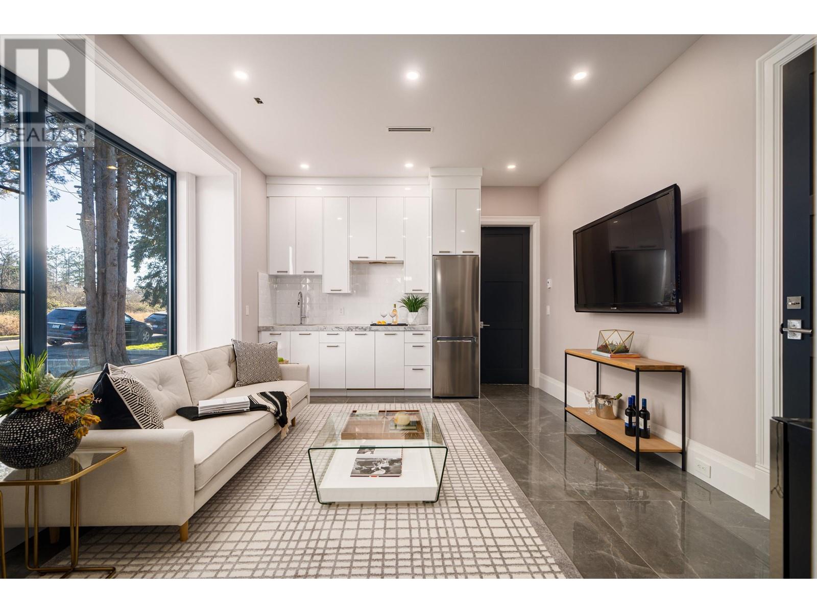 A stunning home located on a quieter side road. 69 frontage allows comfortable living space and lots of natural lights in from both front and back sides. Open Concept and Contemporary feeling throughout. Great workmanship and quality materials. Media room on ground level can easily be converted to addtional studio rental or extra in law suite on top of a one-bedroom legal suite. Both levels 10 feet high ceilings and big windows. A rarely found L-Shape three car garage (538 sqft). Ample outdoor parking spaces available ideal for social gatherings. Top line appliances including Fisher & Paykel and LG. (id:48970) Show More