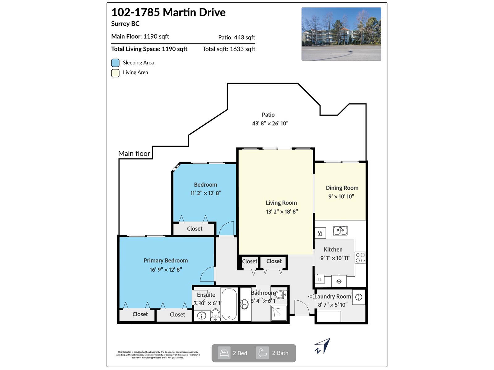 - Area 1190 sq ft