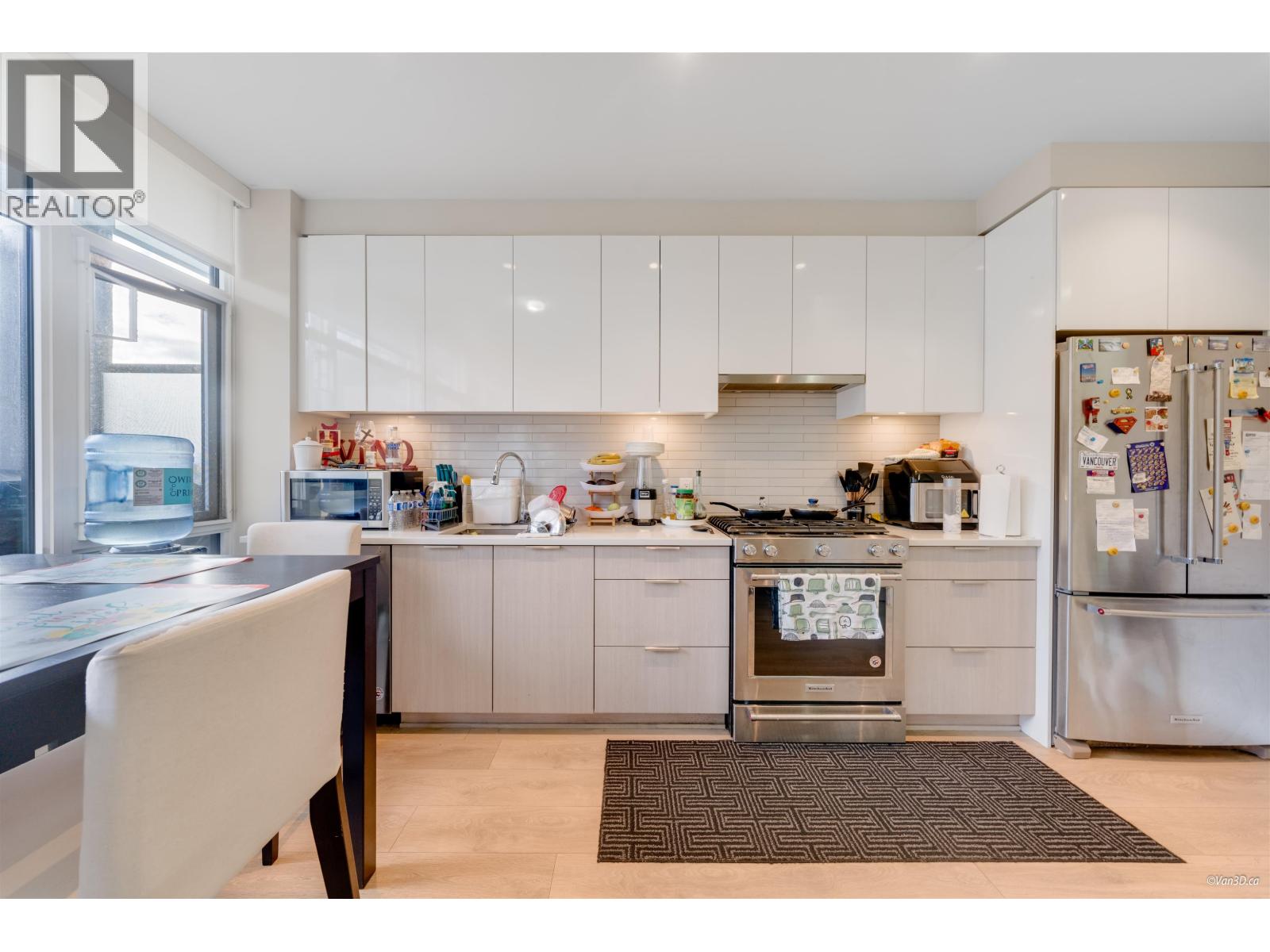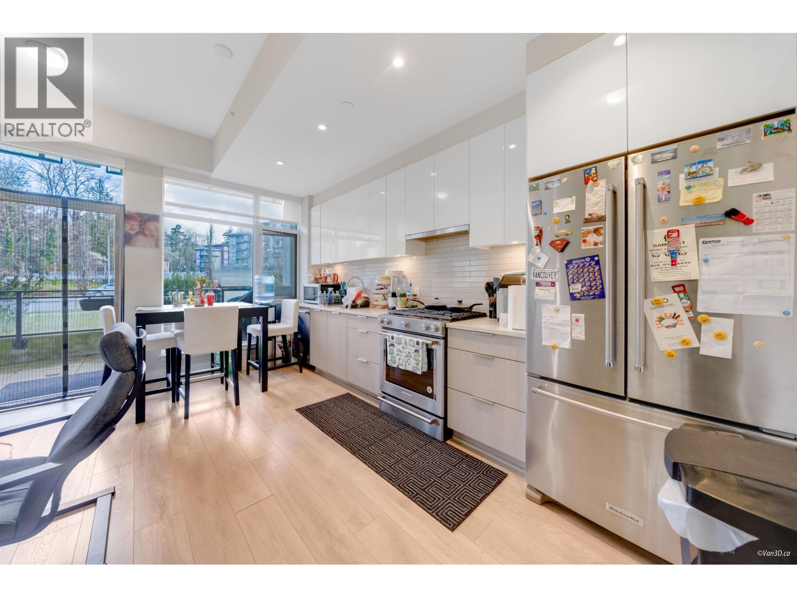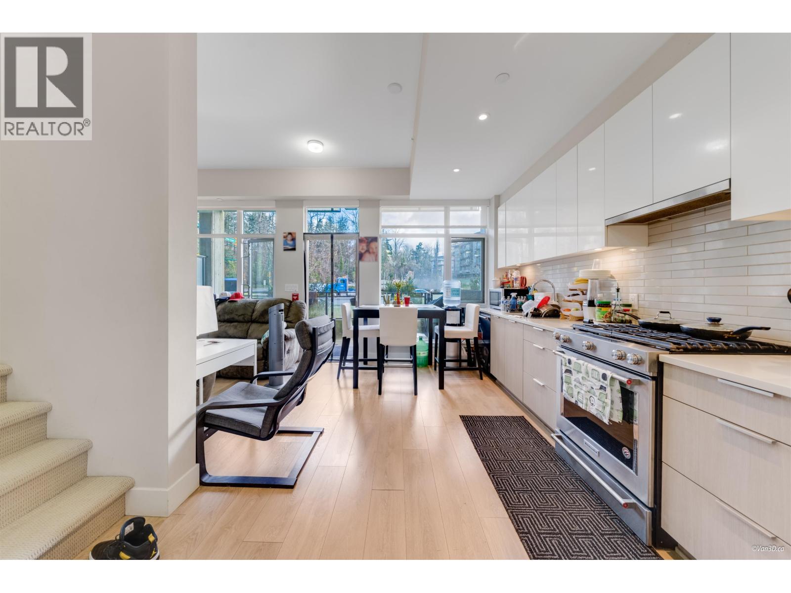 BEST PRICED TOWNHOUSE IN RIVERDISTRICT!! This 980 sf, 2 bed 2 bath Townhome Style Condo has been well-kept with an open floor plan and functional layout. Top of the line appliances, quartz countertops, radiant heating throughout & additionaal sound proofing in walls and windows!! Above has 2 bedrooms, a walk-in closet, 4pc bathroom, and a second patio! Private 161sf fenced patio with separate entrance & gas hook up. Great amenities with 3 recreational rooms, gym, indoor/outdoor kids play areas and more. Private facing townhouse just steps from the main road in River District. Steps from Save-on Foods, Bosley´s Pets, Banks, Restaurants, and more! Comes with 1 Parking & 1 Storage Locker! (id:48970) Show More