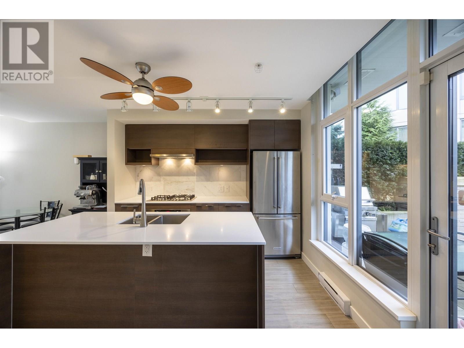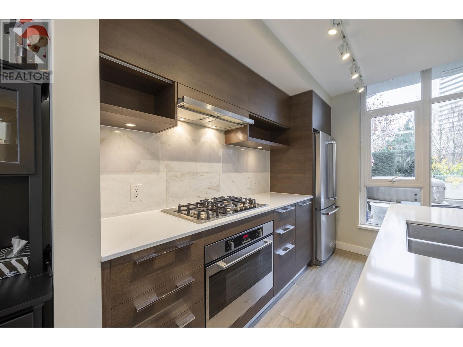 This CONTEMPORARY CONCRETE TH by BOSA, with private yard portable JACUZZI townhome on the QUIET SIDE. Main level has a step-free entry, making it very convenient for elderly access. Total 1285 sqft , 3 bedrooms, 4 bathrooms & 2 side by side parking with 1 locker. Highlighted features includes gourmet kitchen cabinetry, elongated stone kitchen island, S/S appliances, engineered floors and more. Spacious patio (345 sf) with an outdoor fireplace perfect for entertaining. Amenities on the same level comprise of gym, yoga studio, steam/sauna room, BBQ garden, fire pit, lounge & party rm. Central location of Lougheed Mall and steps to Burquitlam Skytrain, Safeway, shopping and restaurants. A short commute to Simon Fraser University, Mountain View Elementary & Port Moody Secondary. This is HOME! (id:48970) Show More