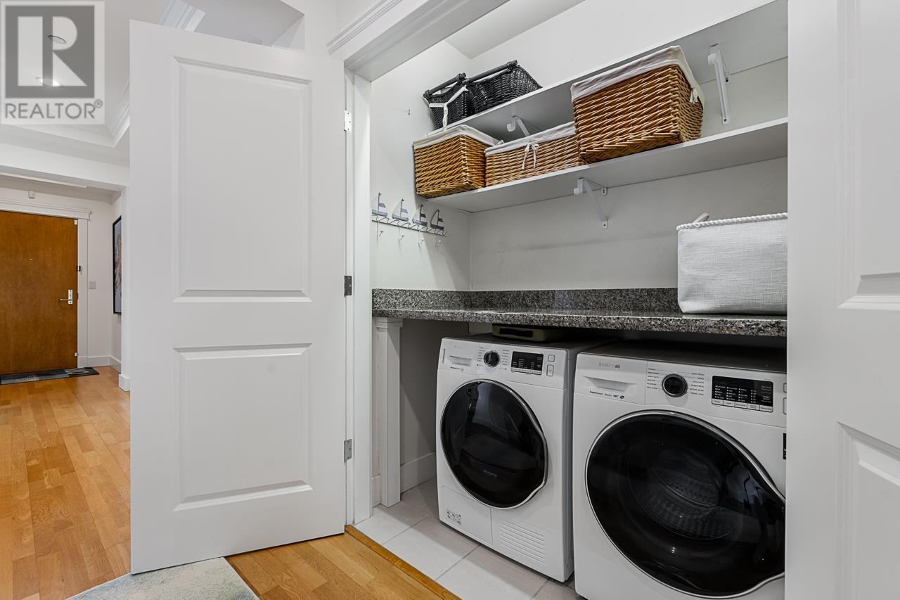 Welcome home to The Boulders! Unit 103 is a thoughtfully curated 2 bed & den, 3 bath home with stunning views of Vancouver, the ocean, and mountains including Mount Baker. This beautiful residence features a high-end kitchen equipped with a stainless steel Sub-Zero fridge and appliances, and granite countertops. The spacious, 600 sqft private patio and garden is a true showstopper, offering the feel of a house with none of the maintenance. Inside, enjoy floor-to-ceiling windows, custom primary closet, custom Hunter Douglas Blinds, and a floor plan made for functional living. Bonus features include radiant heating in the ensuite bathrooms, dedicated in-suite laundry area, 2 parking stalls (EV ready), and storage. Minutes to everything you may need, this is what you've been waiting for. (id:48970) Show More