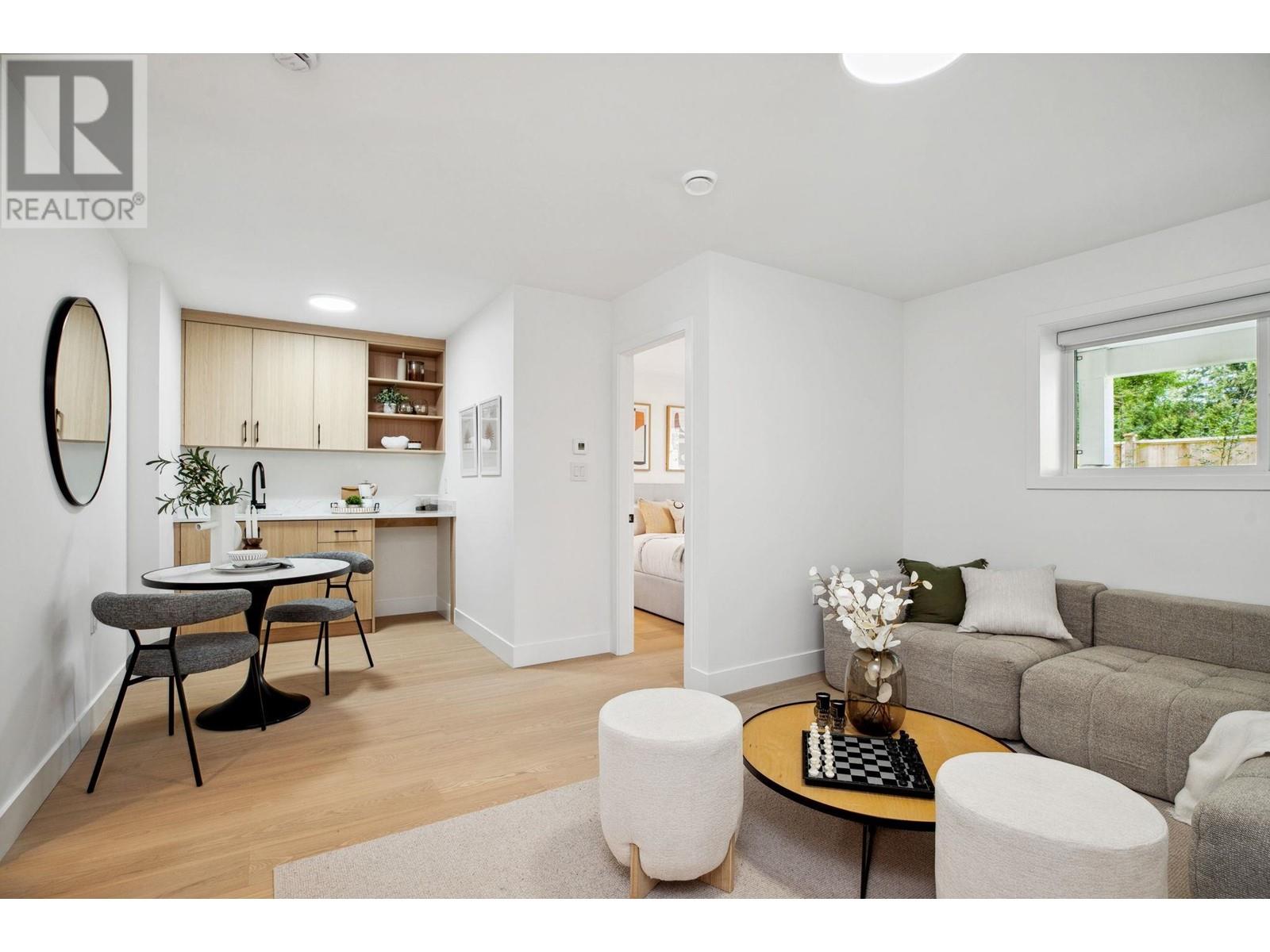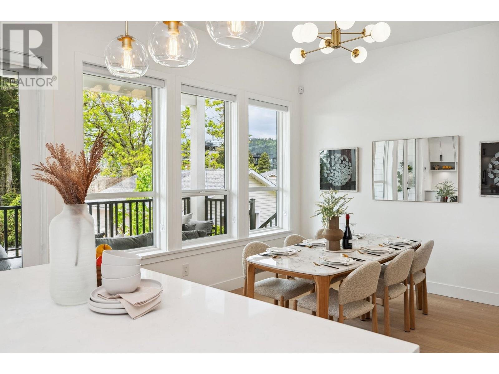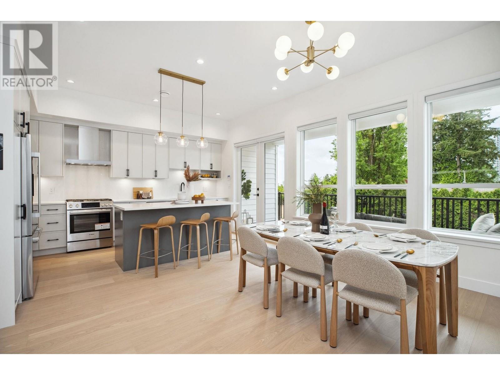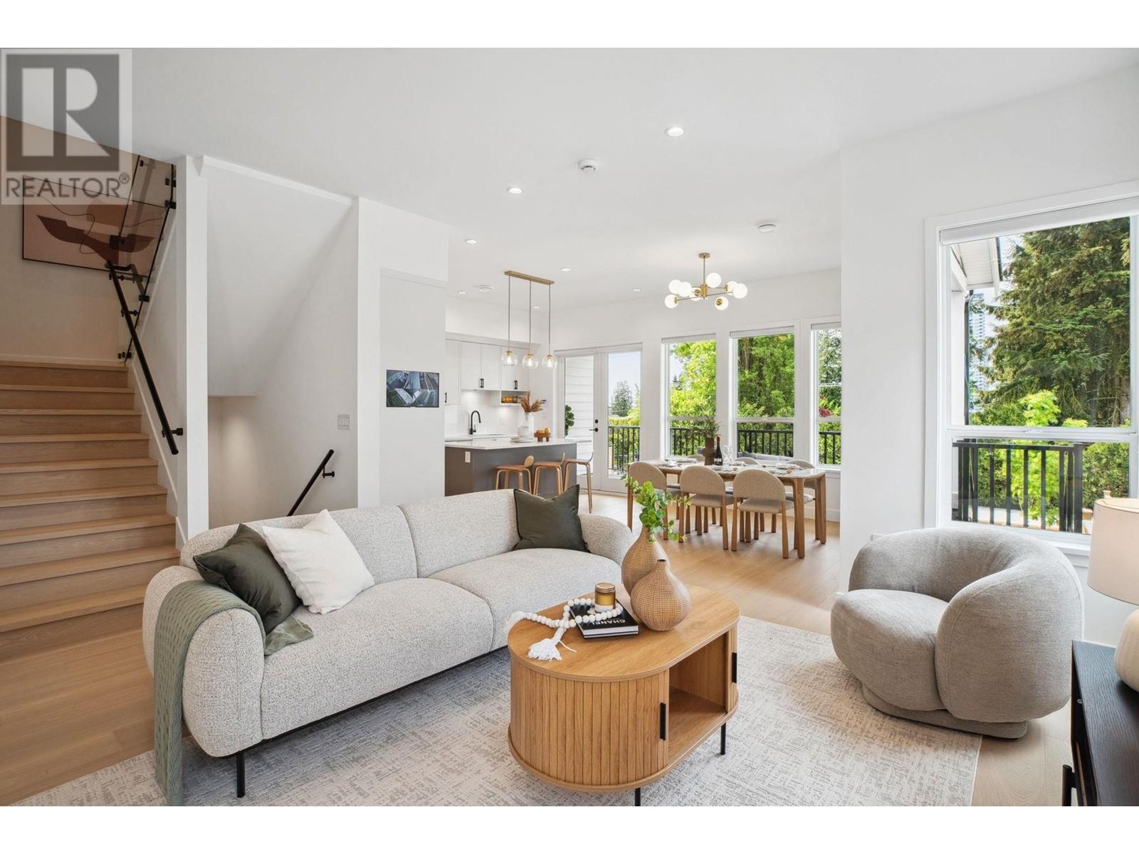 Standout 2,000+ SqFt 4-Bedroom Triplex at Florence. Offering the space and features of a detached home, this brand new, move-in-ready residence boasts an open-concept layout, soaring 10' ceilings, and oversized windows that fill the home with natural light. Enjoy a large, private fenced yard perfect for relaxing or entertaining. The flexible lower-level in-law suite suits guests or multi-generational living. Thoughtfully upgraded with radiant floor heating, central A/C, Bosch appliances, and 2 parking with EV outlet. Located on a quiet, tree-lined street just steps to Burquitlam SkyTrain. No strata fees. 2/5/10 warranty. Open House July 12 & 13 Sat & Sun 2-4pm! (id:48970) Show More