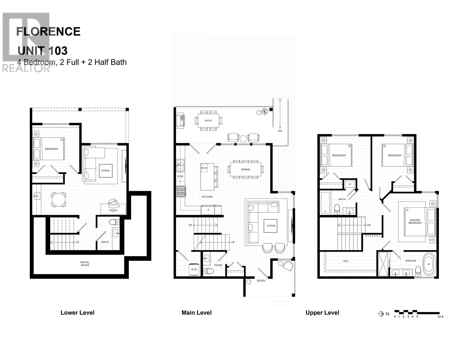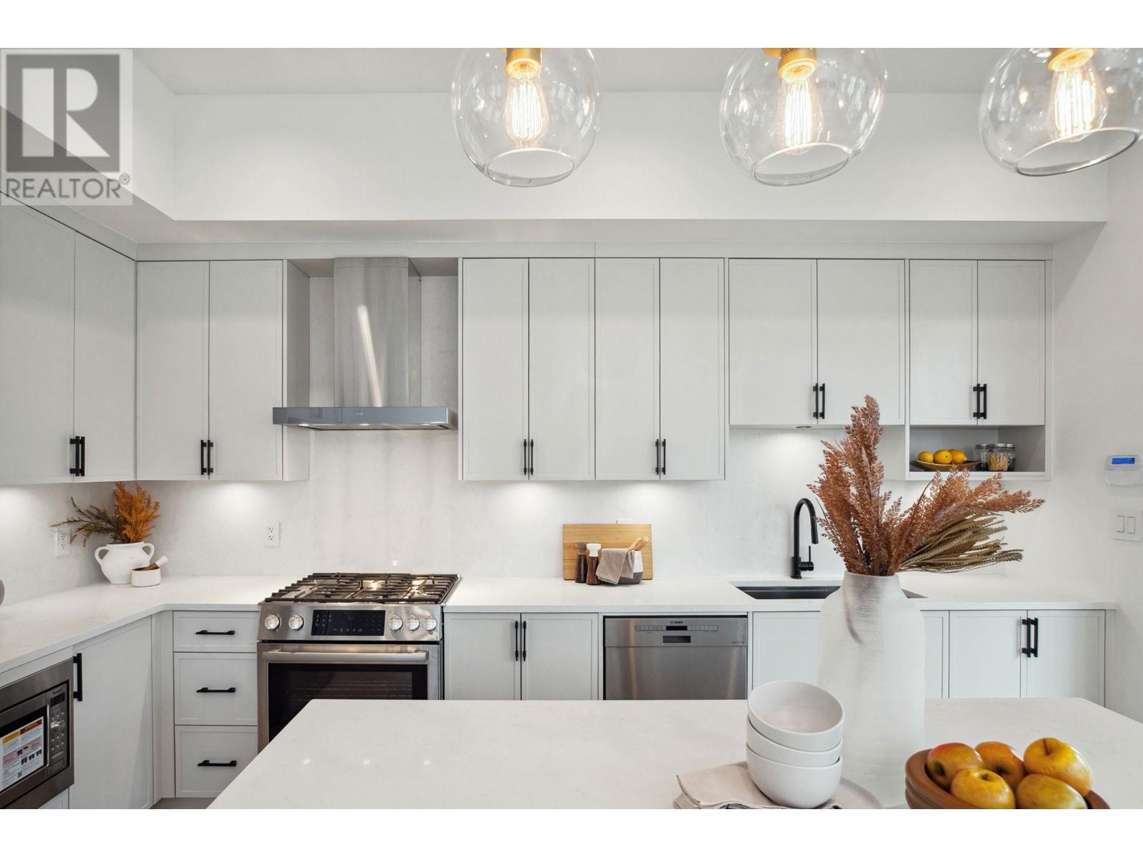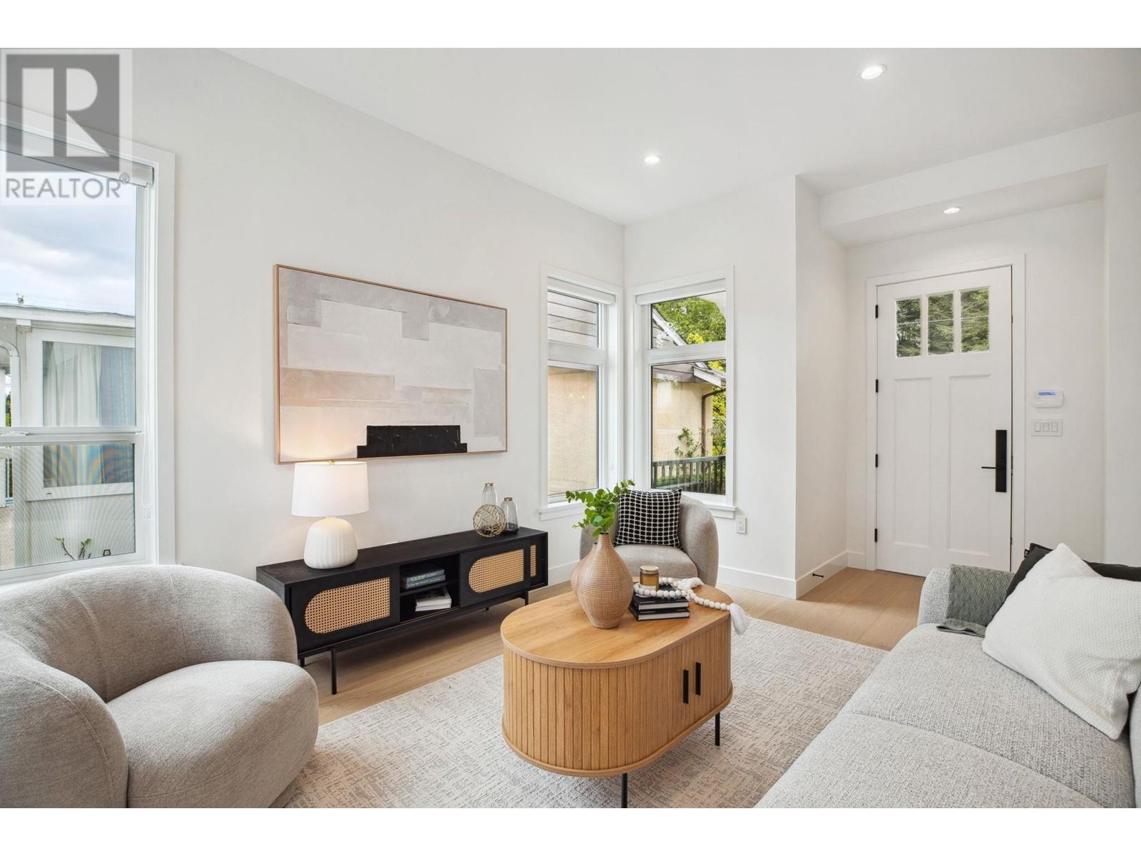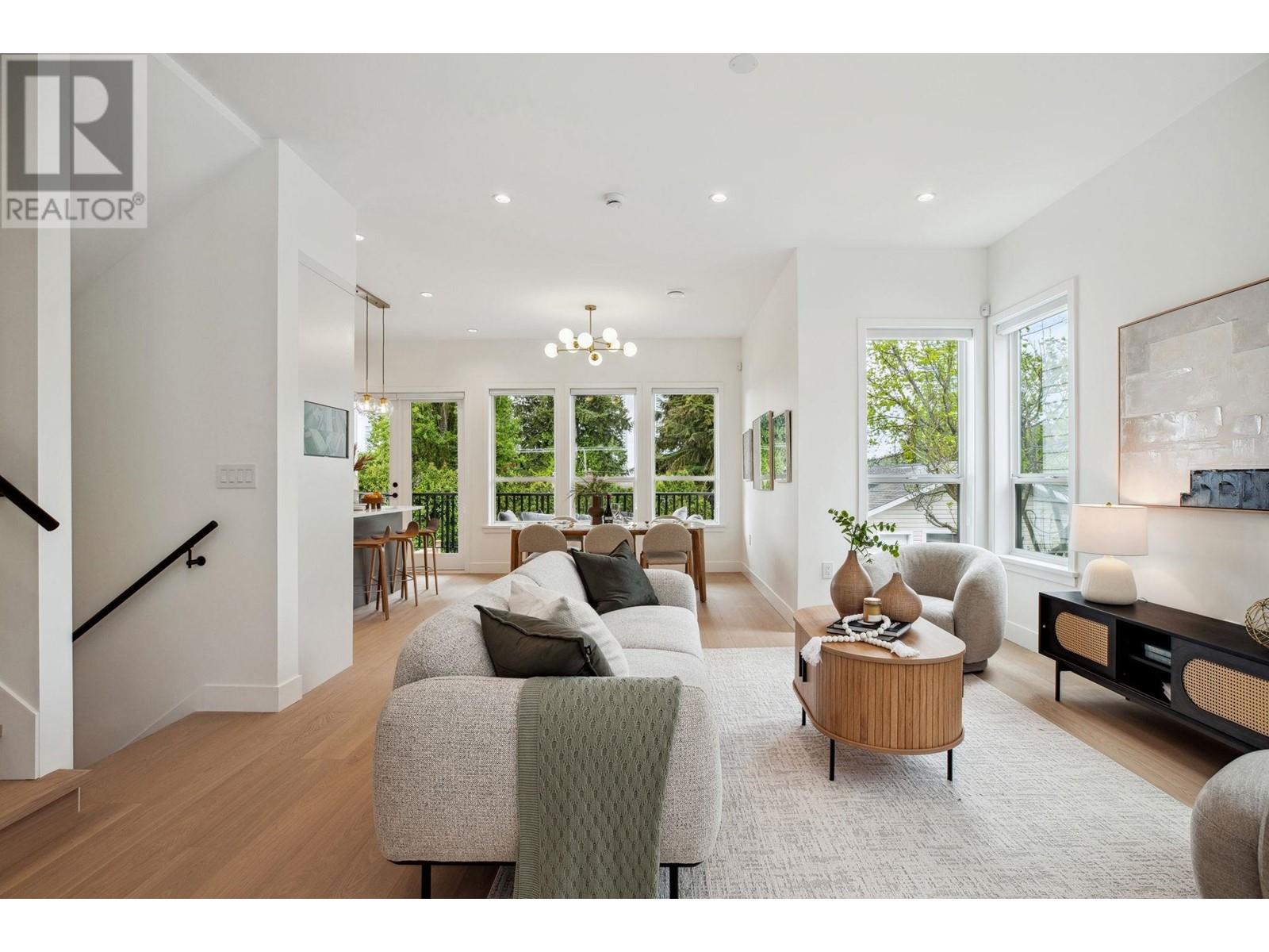 Standout 2,000+ SqFt 4-Bedroom Triplex at Florence. Offering the space and features of a detached home, this brand new, move-in-ready residence boasts an open-concept layout, soaring 10' ceilings, and oversized windows that fill the home with natural light. Enjoy a large, private fenced yard perfect for relaxing or entertaining. The flexible lower-level in-law suite suits guests or multi-generational living. Thoughtfully upgraded with radiant floor heating, central A/C, Bosch appliances, and 2 parking with EV outlet. Located on a quiet, tree-lined street just steps to Burquitlam SkyTrain. No strata fees. 2/5/10 warranty. Open House July 12 & 13 Sat & Sun 2-4pm! (id:48970) Show More