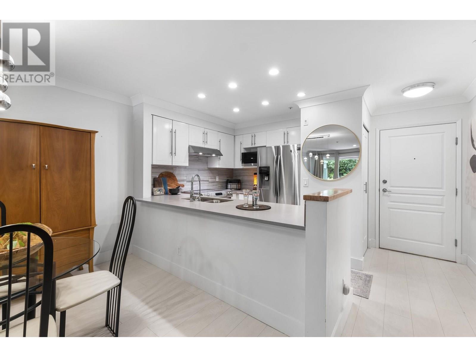 1 BED | 1 BATH | 651 SQ FT | GROUND LEVEL | RENOVATED | This beautifully updated 1 bed, 1 bath ground-level condo offers 651 square ft of thoughtfully designed living space, backing onto a lush greenbelt for added privacy and serenity. Enjoy a modern kitchen with upgraded counters and stainless steel appliances, a spacious open-concept layout, and stylish wide-plank flooring throughout. The bathroom features HEATED tile floors and a sleek, contemporary finish. In-suite laundry, ample storage, and a cozy patio complete the package. Nestled in a quiet, tree-lined community just minutes from SkyTrain, West Coast Express, shops, restaurants, schools, and nature trails-this location offers the perfect blend of tranquility and convenience. A must-see for first-time buyers or investors! PRIVACY - DO NOT SOLICIT. All information and measurements are approximate - please verify if deemed important. Measurements by listing agent. (id:48970) Show More