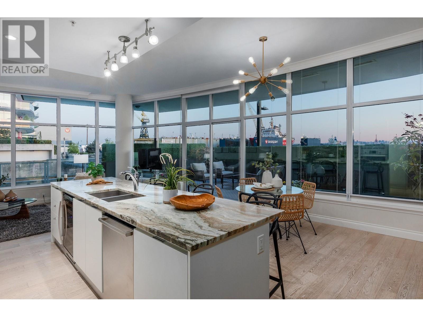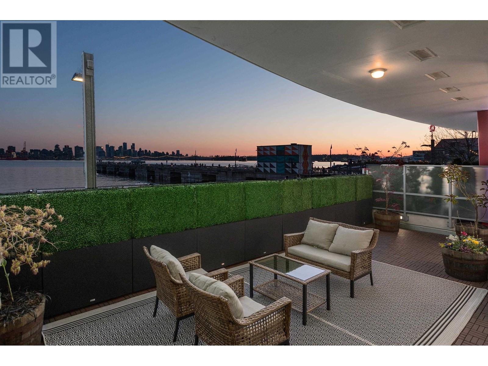 Imagine waking up to sweeping head-on views of the city skyline and harbour from your private waterfront retreat. This southeast corner condo redefines sophistication with its panoramic vistas, featuring a massive 622 sq. ft. patio including gas hook-up for BBQ and custom hedging for privacy. Highlights include soaring 10 ft ceilings, expansive windows, hrdwd floors, 3 full baths, heat pump with A/C, & ample wall space for your art. Each bdrm boasts an en-suite, including a lavish, oversized primary suite that was originally 2 bdrms (can easily be changed to 3rd bdrm). Amenities include 2 side-by-side parking stalls & storage locker. This exceptional condo is perfect for those who love to entertain & appreciate a refined lifestyle. This is the best value in the Shipyards! A must-see! (id:48970) Show More