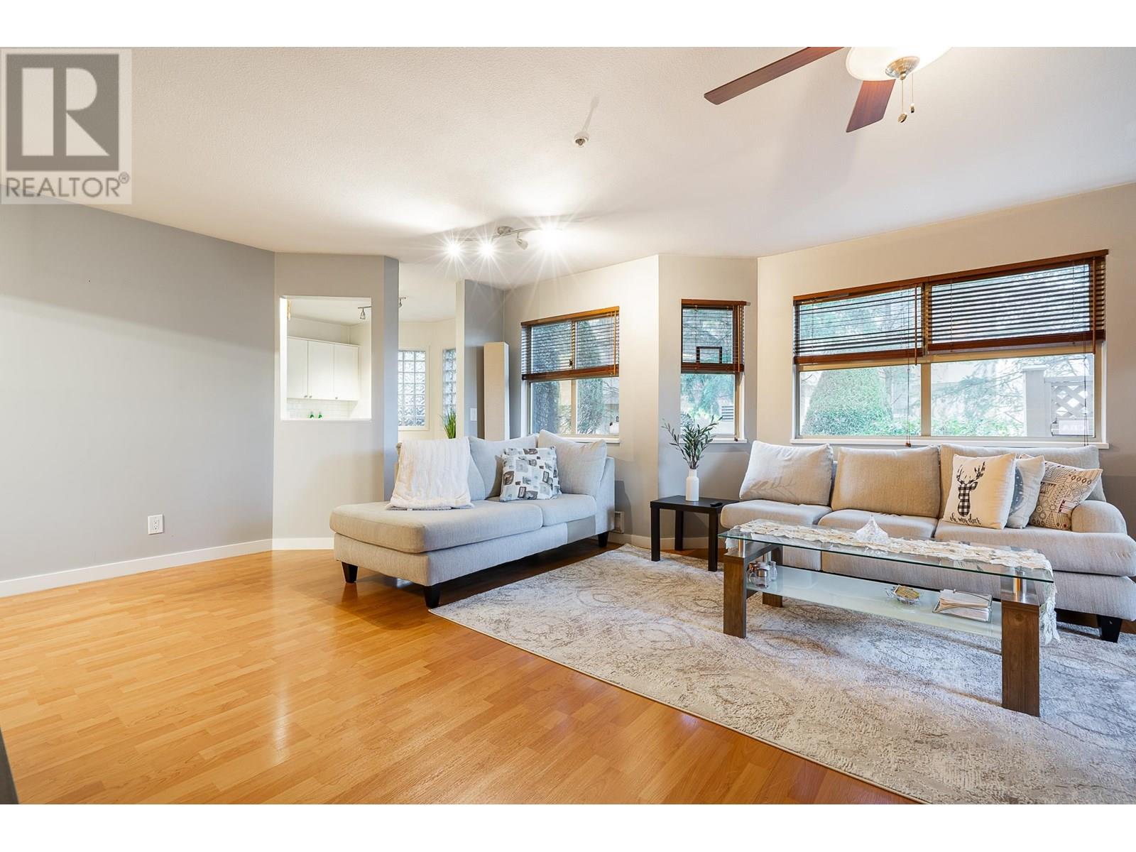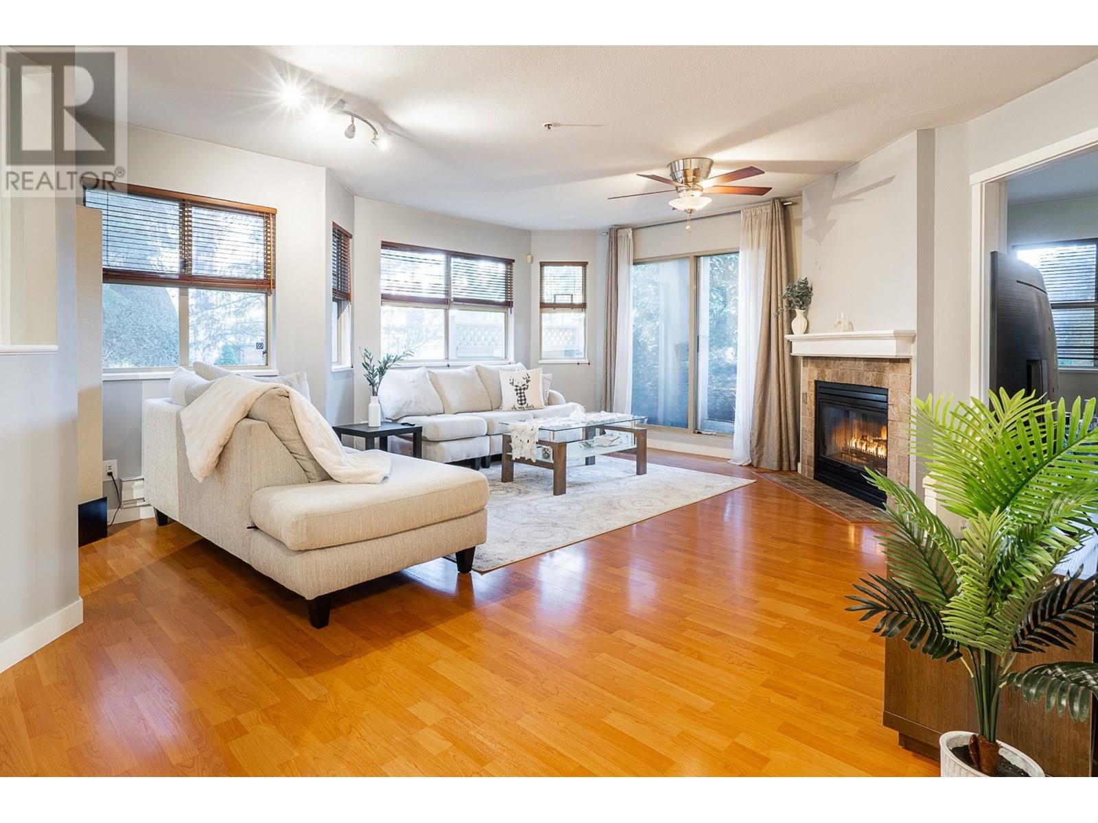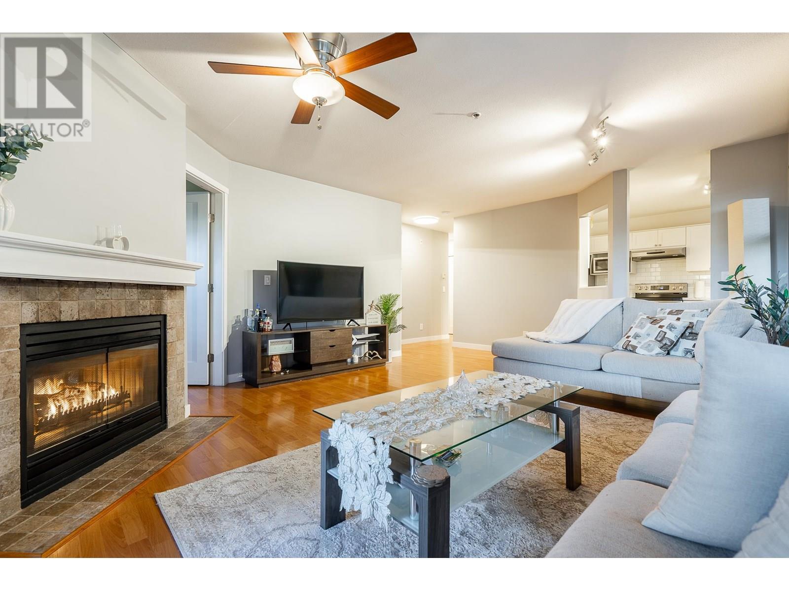 Incredibly spacious ground-level home at Port Coquitlam´s Burleigh Green, located in the heart of Poco. This extra large 1 bed + den, 1 bath home offers a functional open layout, with 879 square feet of living space. Updates in kitchen include the SS appliances, backsplash, cabinets and countertops. Formal living and dining rooms, with a cozy double-sided gas fireplace in the living room and den. Large bedroom with access to the full bath, plus several windows in the home offer plenty of natural light. The large private patio is perfect for year round enjoyment. In-suite laundry, 1 underground parking+ 1 storage locker. Prime location, close to transit, shopping, recreation, Traboulay PoCo Trail and more. (id:48970) Show More
