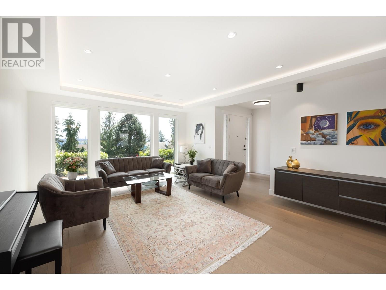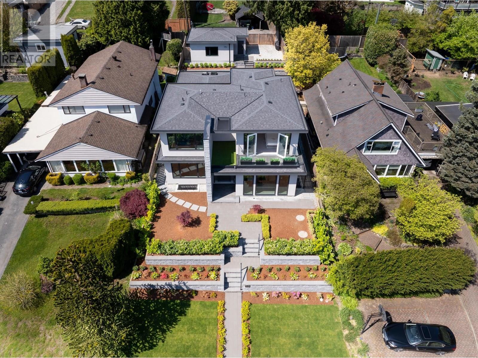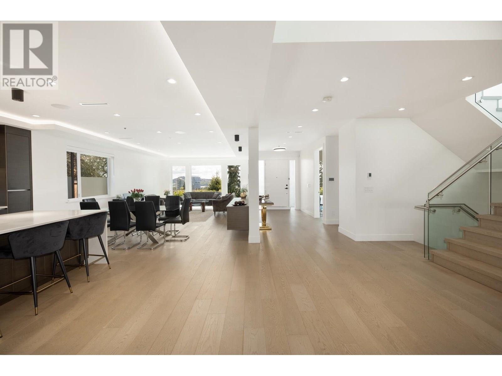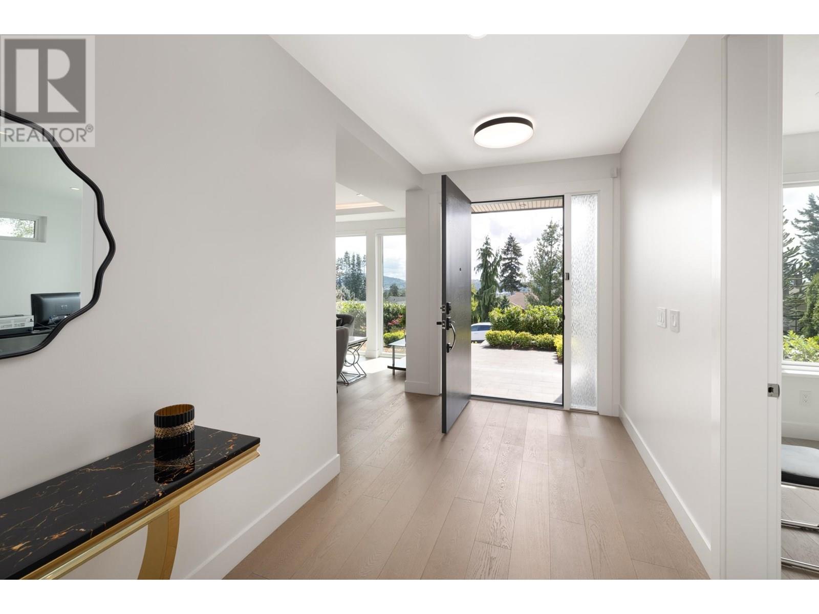 Custom built by award winning Marble Construction, this 2023 home is located on the best side of Calverhall, quietly tucked in a cul de sac with stunning city and Second Narrows views. Offering approximately 4,500 SQF of sun filled living, it features an open concept layout with an oversized kitchen island, custom millwork, and a 12´ ceiling family room. Upstairs includes 3 generously sized bedrooms, each with its own ensuite, plus a full laundry room. The main floor offers a spacious office, and also a detached garage with storage space, and a 2 bedroom legal suite. The modern granite blade wall welcomes you into this thoughtfully designed home. A rare opportunity in one of North Vancouver´s most desirable locations. NO GST! Showings by appointment only. (id:48970) Show More