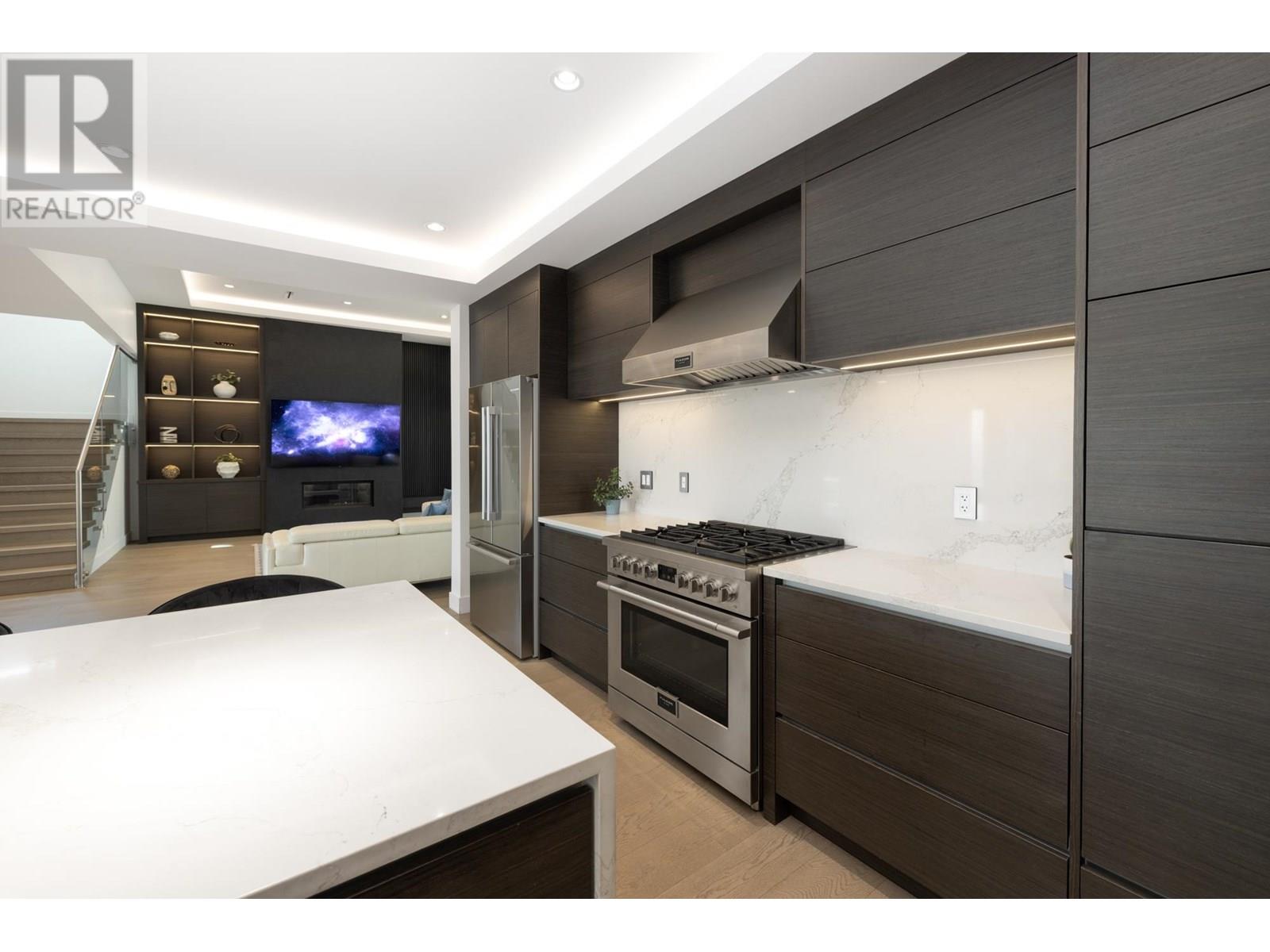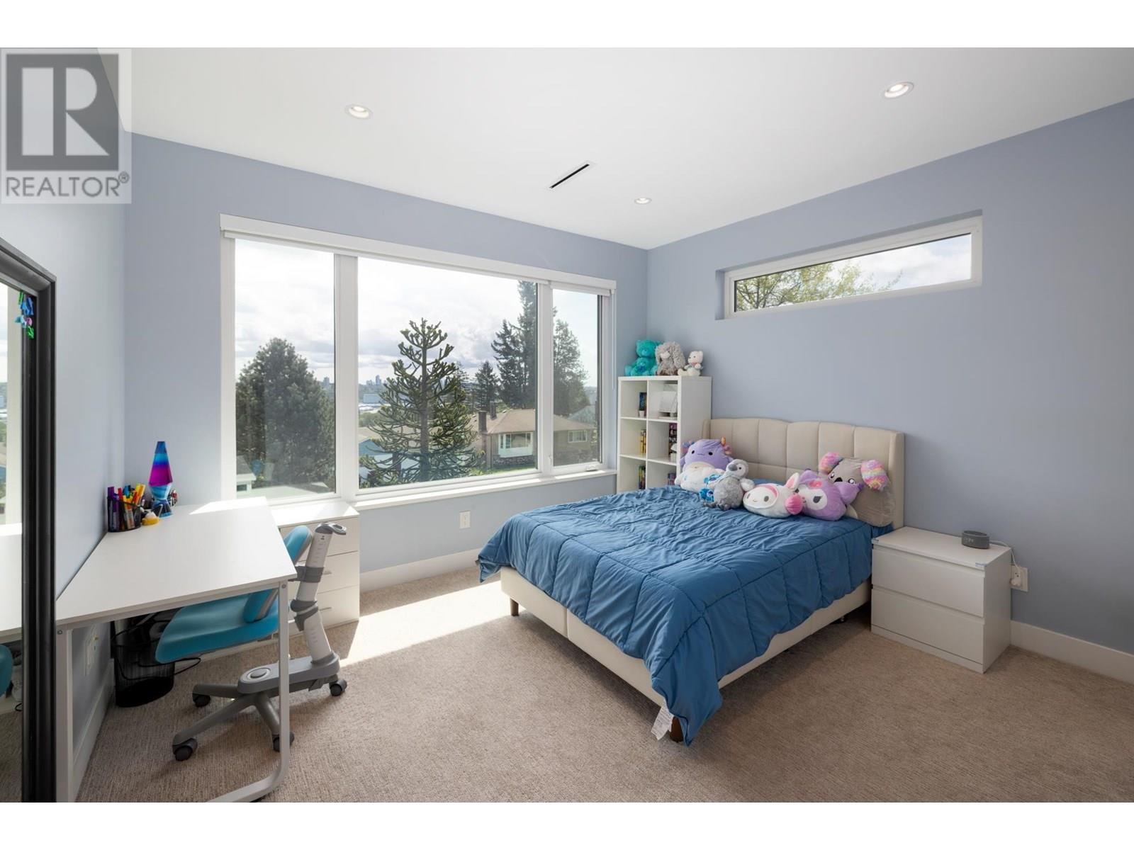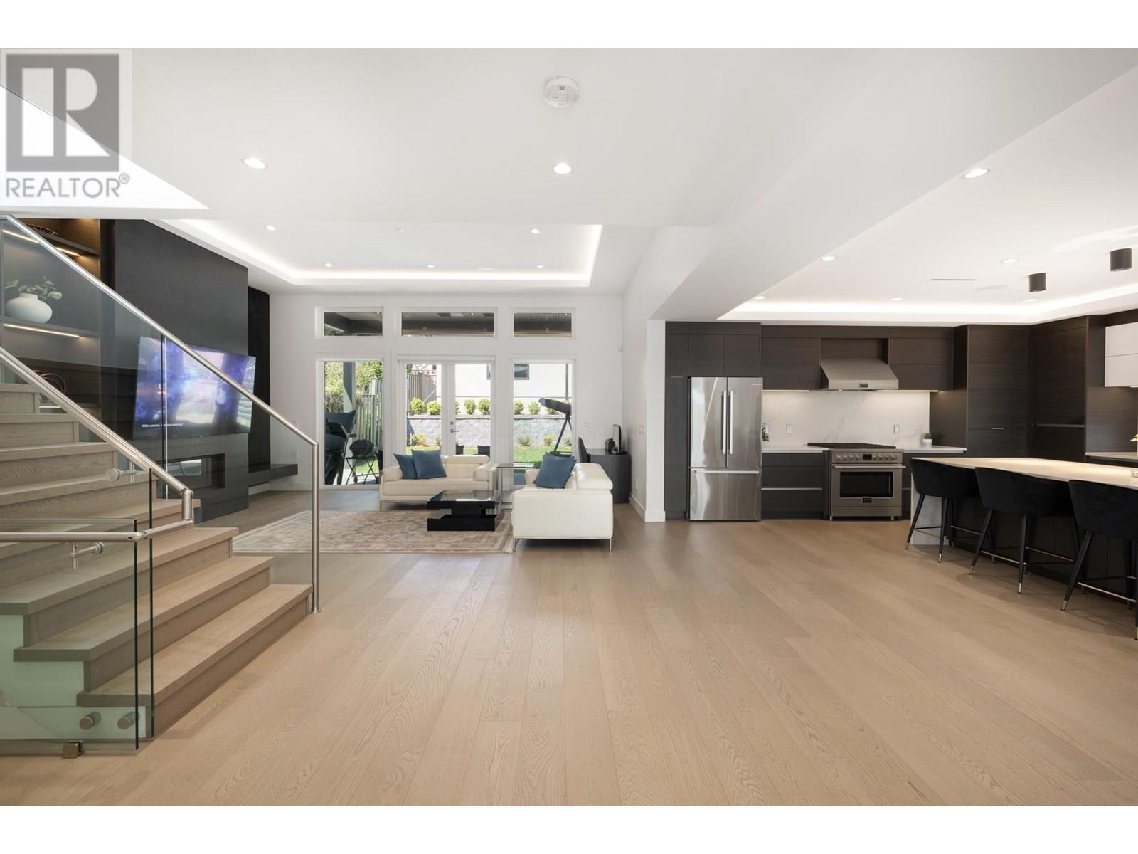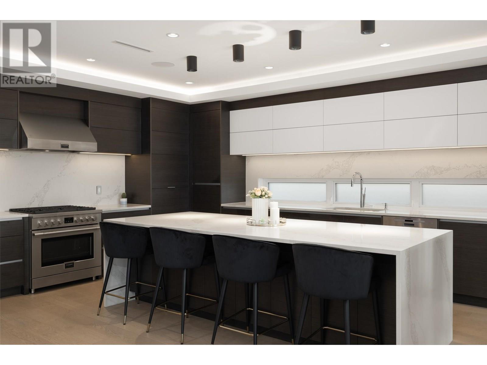 Custom built by award winning Marble Construction, this 2023 home is located on the best side of Calverhall, quietly tucked in a cul de sac with stunning city and Second Narrows views. Offering approximately 4,500 SQF of sun filled living, it features an open concept layout with an oversized kitchen island, custom millwork, and a 12´ ceiling family room. Upstairs includes 3 generously sized bedrooms, each with its own ensuite, plus a full laundry room. The main floor offers a spacious office, and also a detached garage with storage space, and a 2 bedroom legal suite. The modern granite blade wall welcomes you into this thoughtfully designed home. A rare opportunity in one of North Vancouver´s most desirable locations. NO GST! Showings by appointment only. (id:48970) Show More