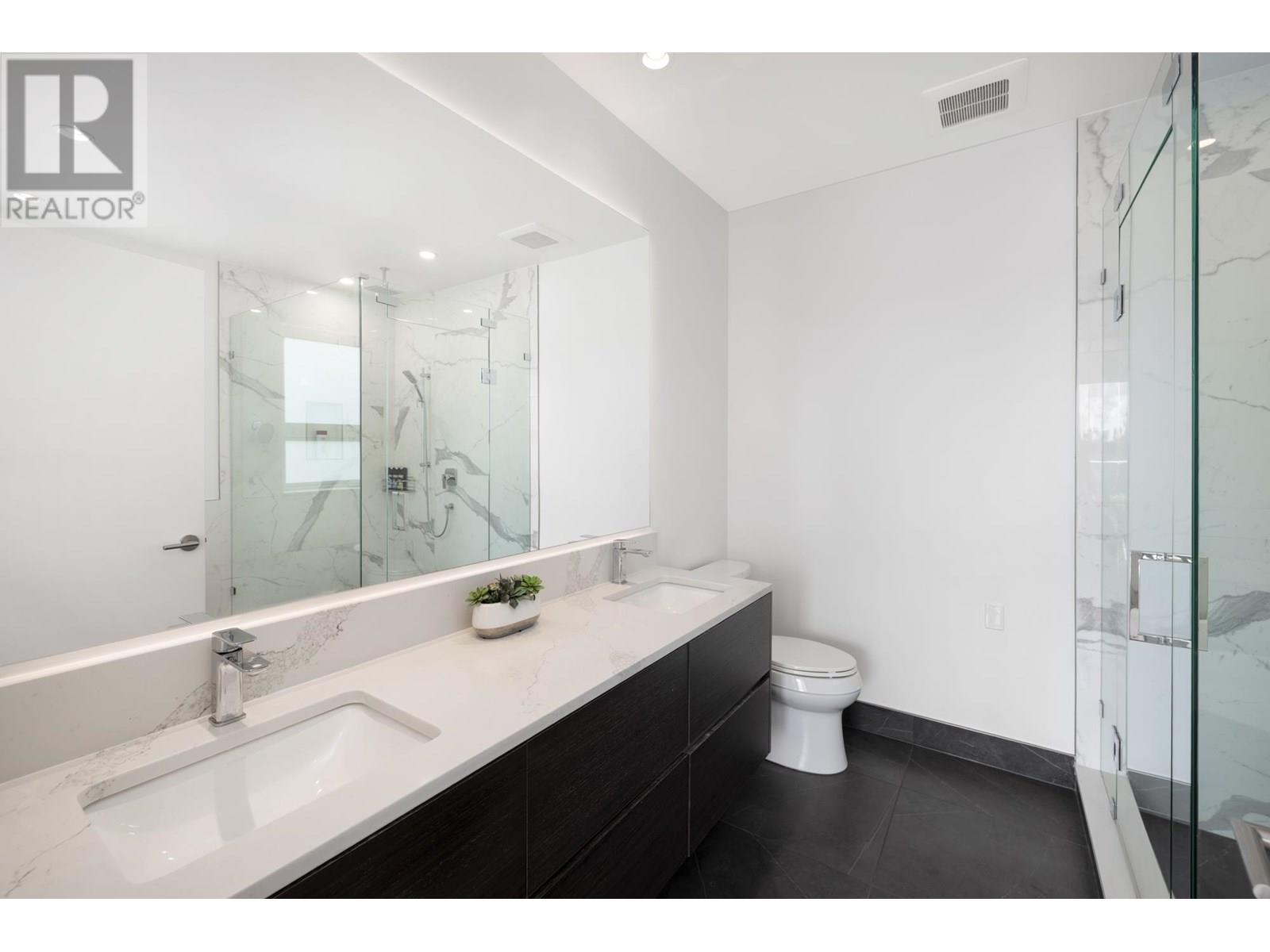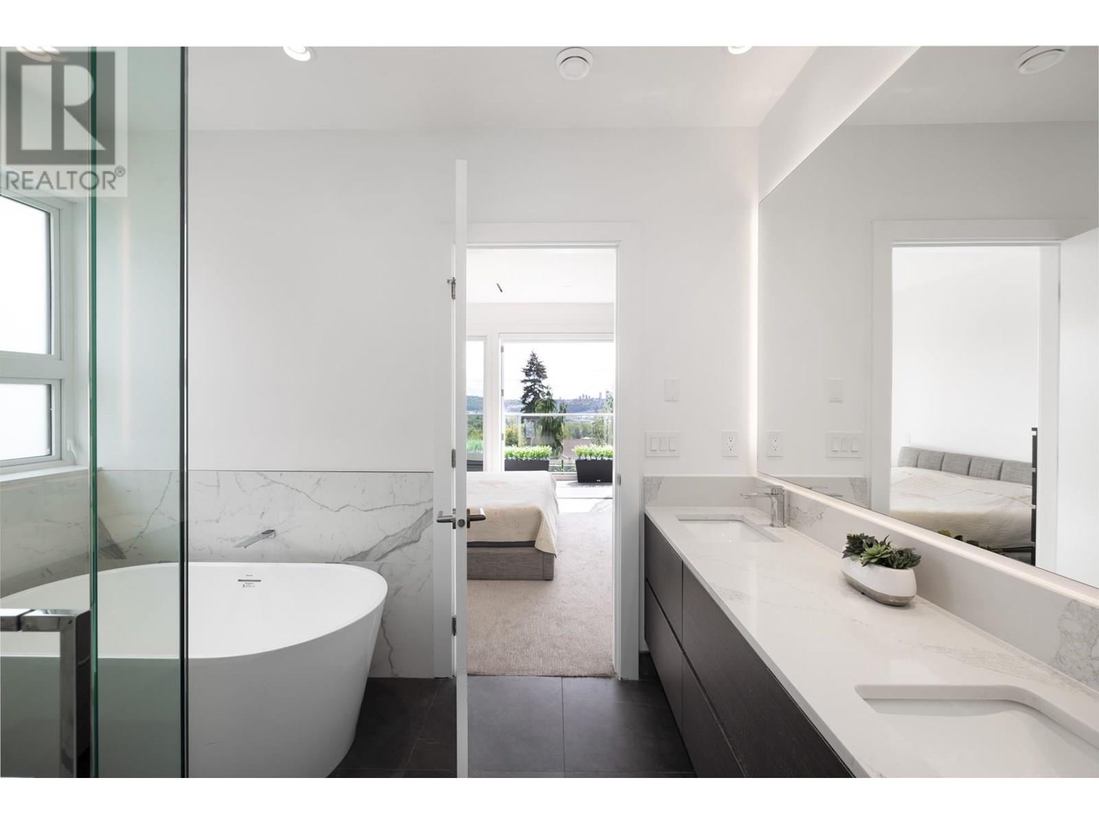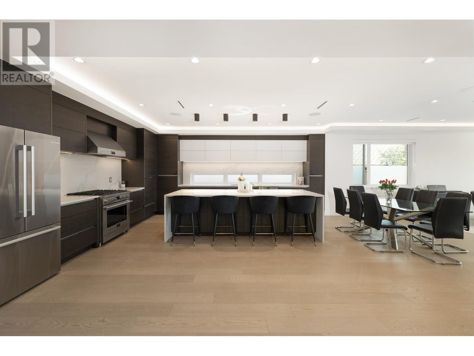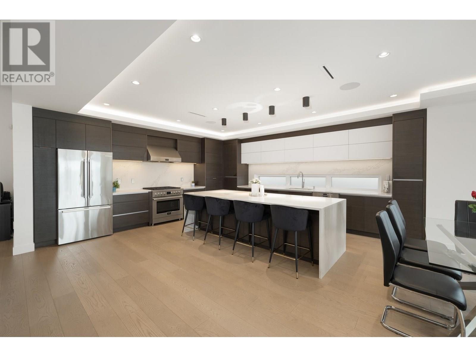 Custom built by award winning Marble Construction, this 2023 home is located on the best side of Calverhall, quietly tucked in a cul de sac with stunning city and Second Narrows views. Offering approximately 4,500 SQF of sun filled living, it features an open concept layout with an oversized kitchen island, custom millwork, and a 12´ ceiling family room. Upstairs includes 3 generously sized bedrooms, each with its own ensuite, plus a full laundry room. The main floor offers a spacious office, and also a detached garage with storage space, and a 2 bedroom legal suite. The modern granite blade wall welcomes you into this thoughtfully designed home. A rare opportunity in one of North Vancouver´s most desirable locations. NO GST! Showings by appointment only. (id:48970) Show More
