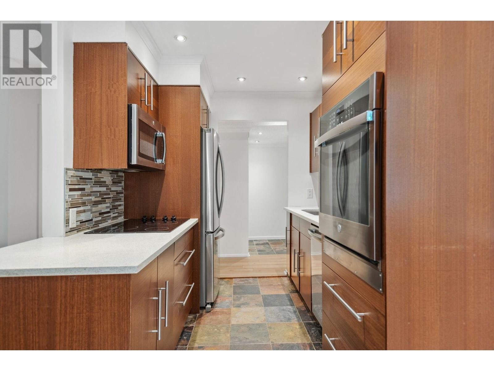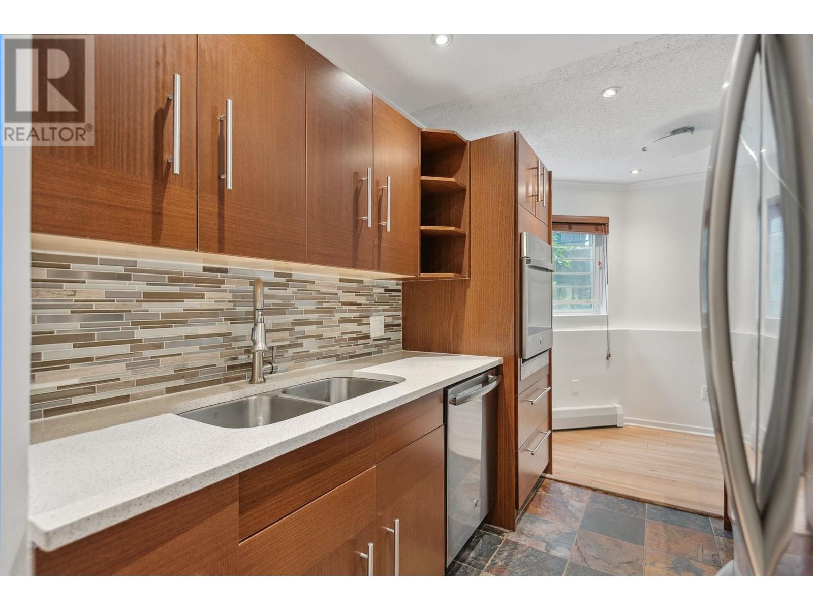Welcome to Greehorne in the heart of the West End. This 2 bedroom, 1 bathroom ground floor, corner condo is just under 800 sqft. The thoughtfully designed layout features separated bedrooms for optimal privacy-perfect for roommates, guests, or a home office. The kitchen, bathroom and flooring has been modernized. The expansive patio faces towards the building courtyard providing a little nature in urban living. Walking distance from Sunset beach, the seawall, Davie Village, and Robson Street. This location offers ideal walkability to some of Vancouver´s best dining, shopping, and outdoor activities. Includes parking and storage. Please contact your realtor for showing. (id:48970) Show More