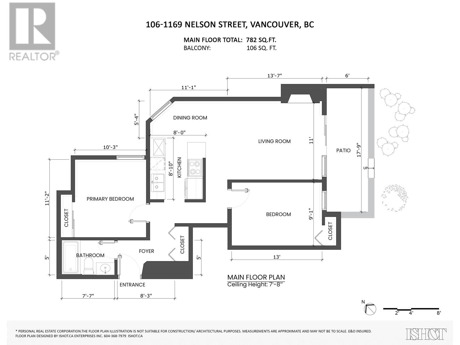 - Area 782 sq ft
