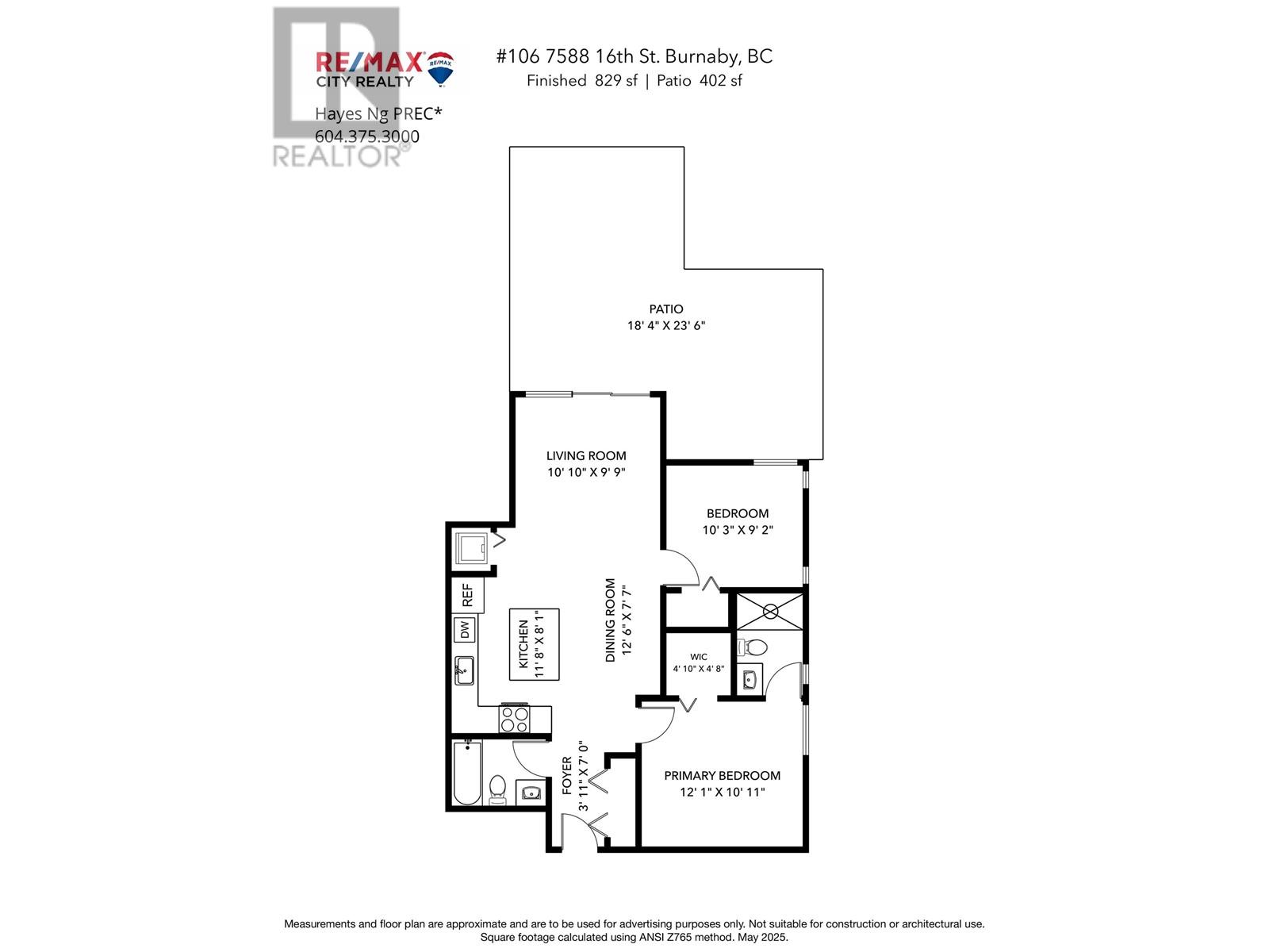 - Area 829 sq ft