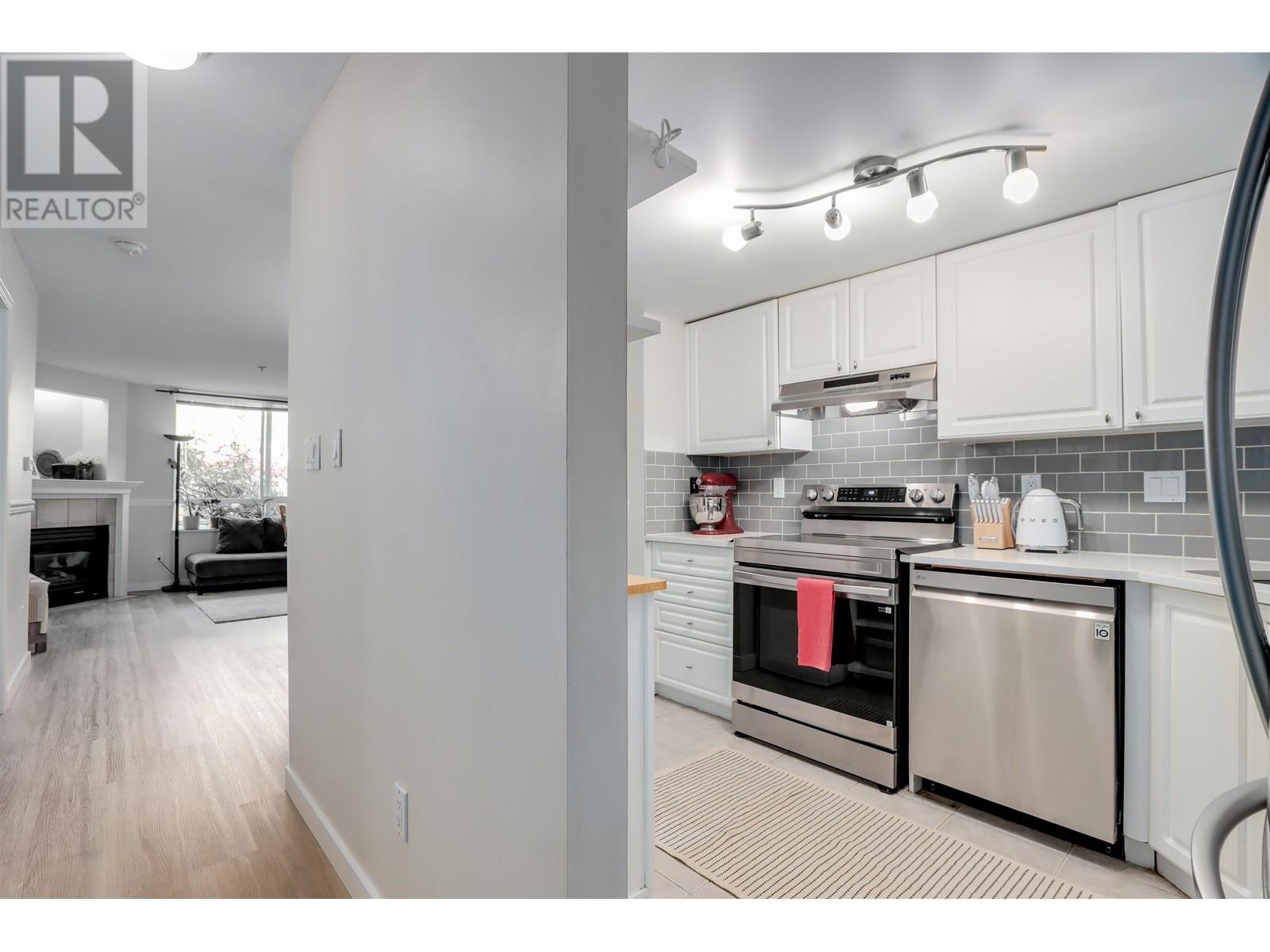 Feels like a townhouse! Immaculate Garden Suite in a Quiet Cul-De-Sac This beautifully cared-for home showcases true pride of ownership throughout. Nestled in a peaceful cul-de-sac, it features a spacious, partially covered patio with your own private gate leading to lush green space-perfect for relaxing or entertaining. Inside, you'll find a stylish kitchen and bathroom with quartz countertops, stainless steel appliances, and a cozy gas fireplace. The open, functional layout includes ample storage, a generous walk-in closet, and a full in-suite laundry room. Located in a well-managed building just steps from Gates Park, trails, sports fields, schools, shopping, dining, and the West Coast Express. Includes one secure underground parking stall and storage . Open House Sun. June 22, 1-3 pm. (id:48970) Show More