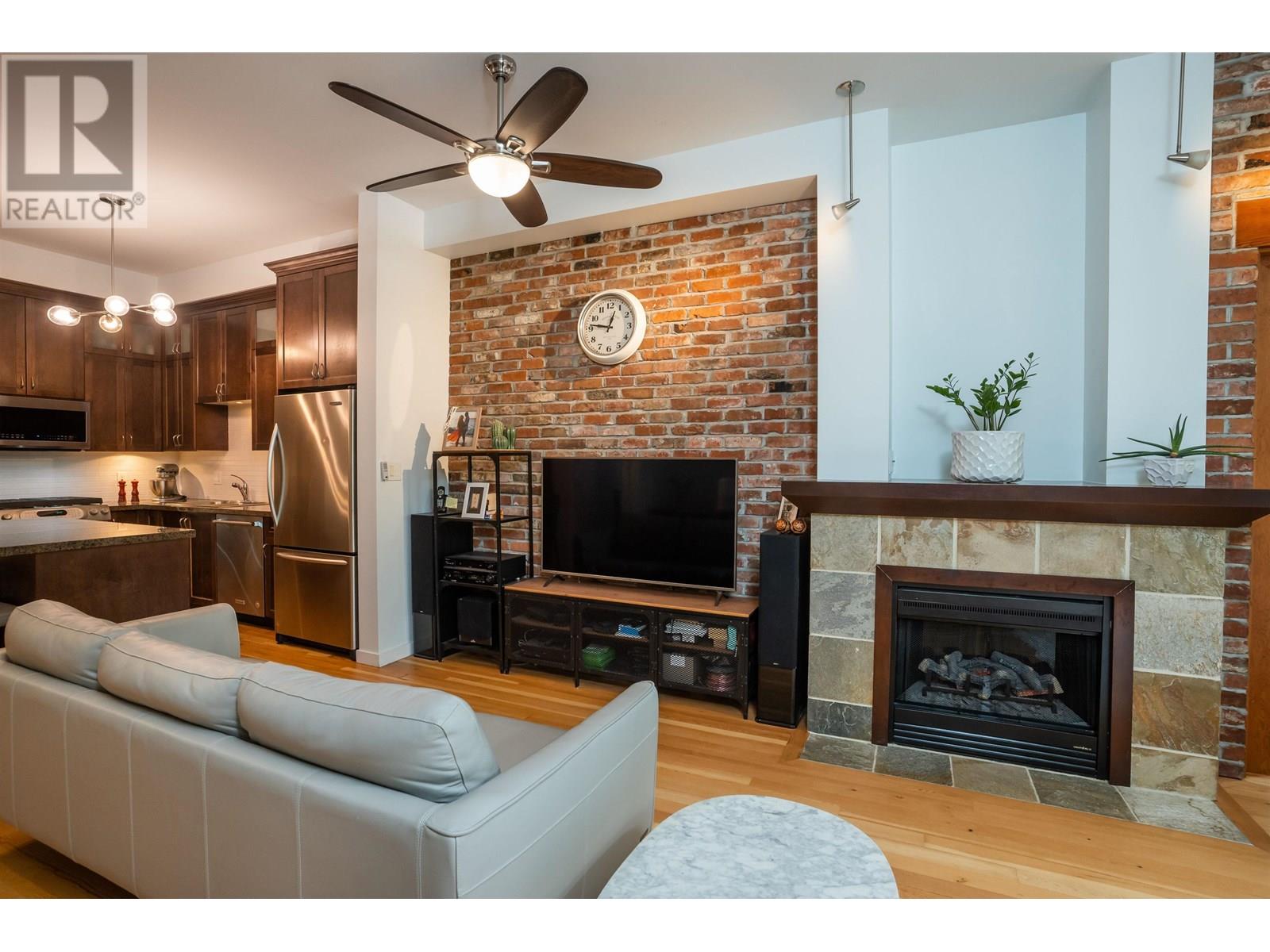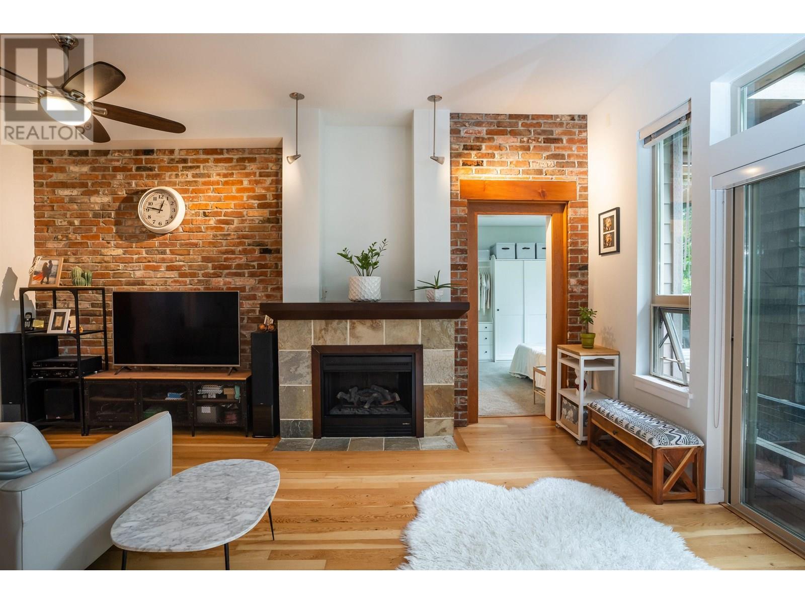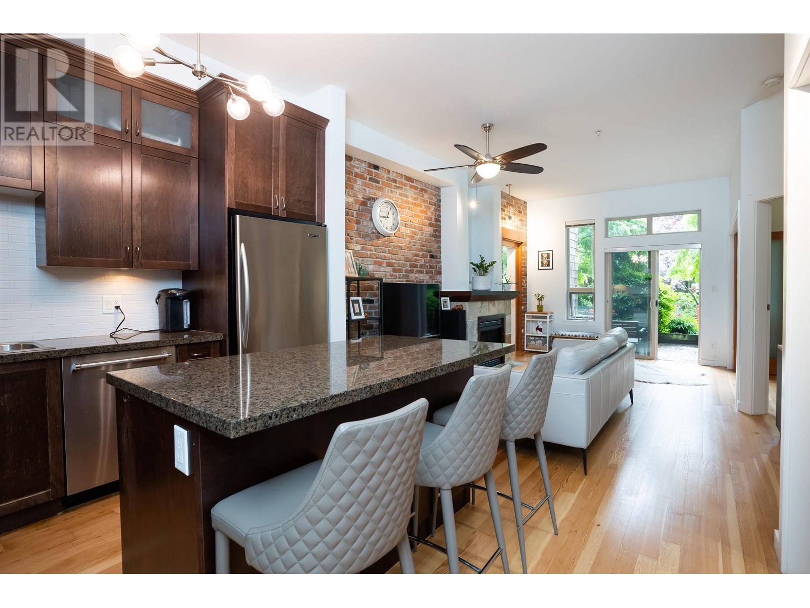 GROUND-FLOOR riverfront living at Paddler´s Landing! This 955 square ft 2-bed/2-bath home blends heritage charm with modern comfort: soaring 10' ceilings, reclaimed fir floors & doors, an exposed brick feature wall, and a chef-ready kitchen with granite countertops. Patio doors open to your private 145 sqft patio great for BBQs-with direct access to Port Royal´s 1.7 km riverfront boardwalk, parks and Port Royal beach. Bedrooms are well-separated for privacy; the spacious primary features a walk-in closet and spa-style ensuite. Cozy fireplace, large. flex-space and secure parking. Recent updates: new stove, gas cooktop, microwave, washer/dryer (2023), and fridge (2023); dishwasher and flooring refinished approx 5years old. Call your trusted Realtor Dont miss out! July 13 2-4 (id:48970) Show More