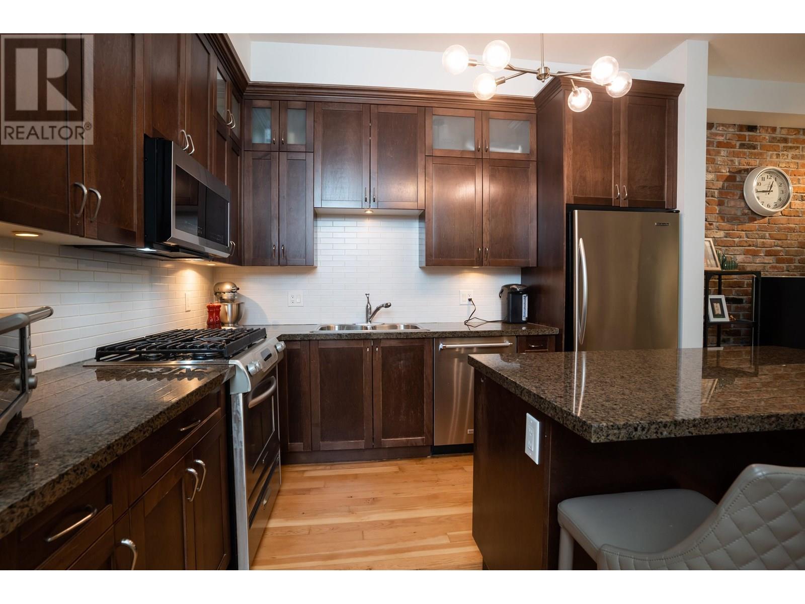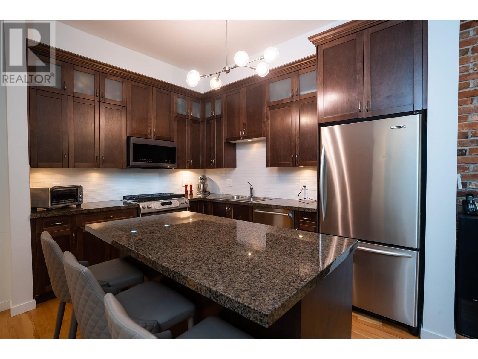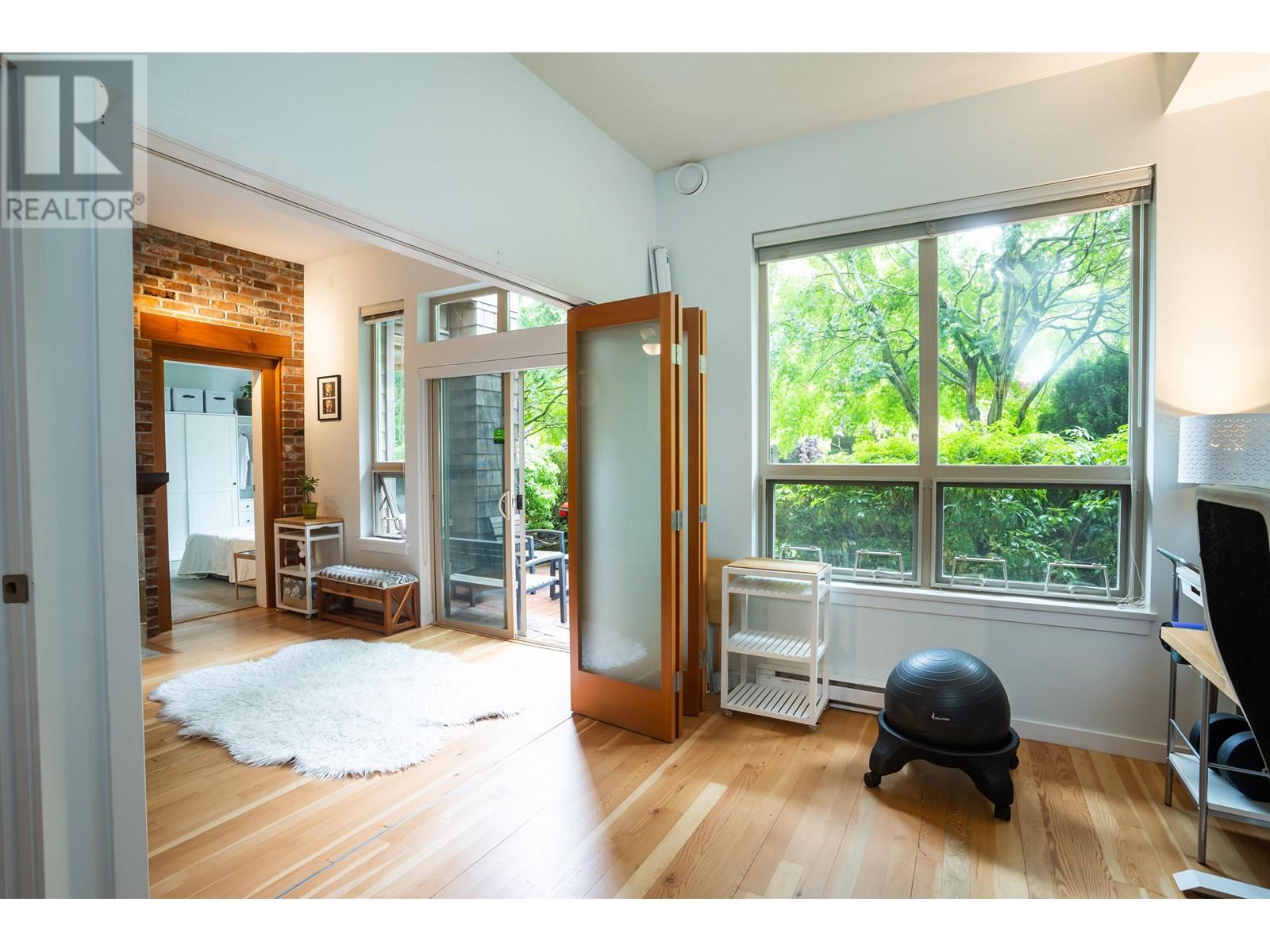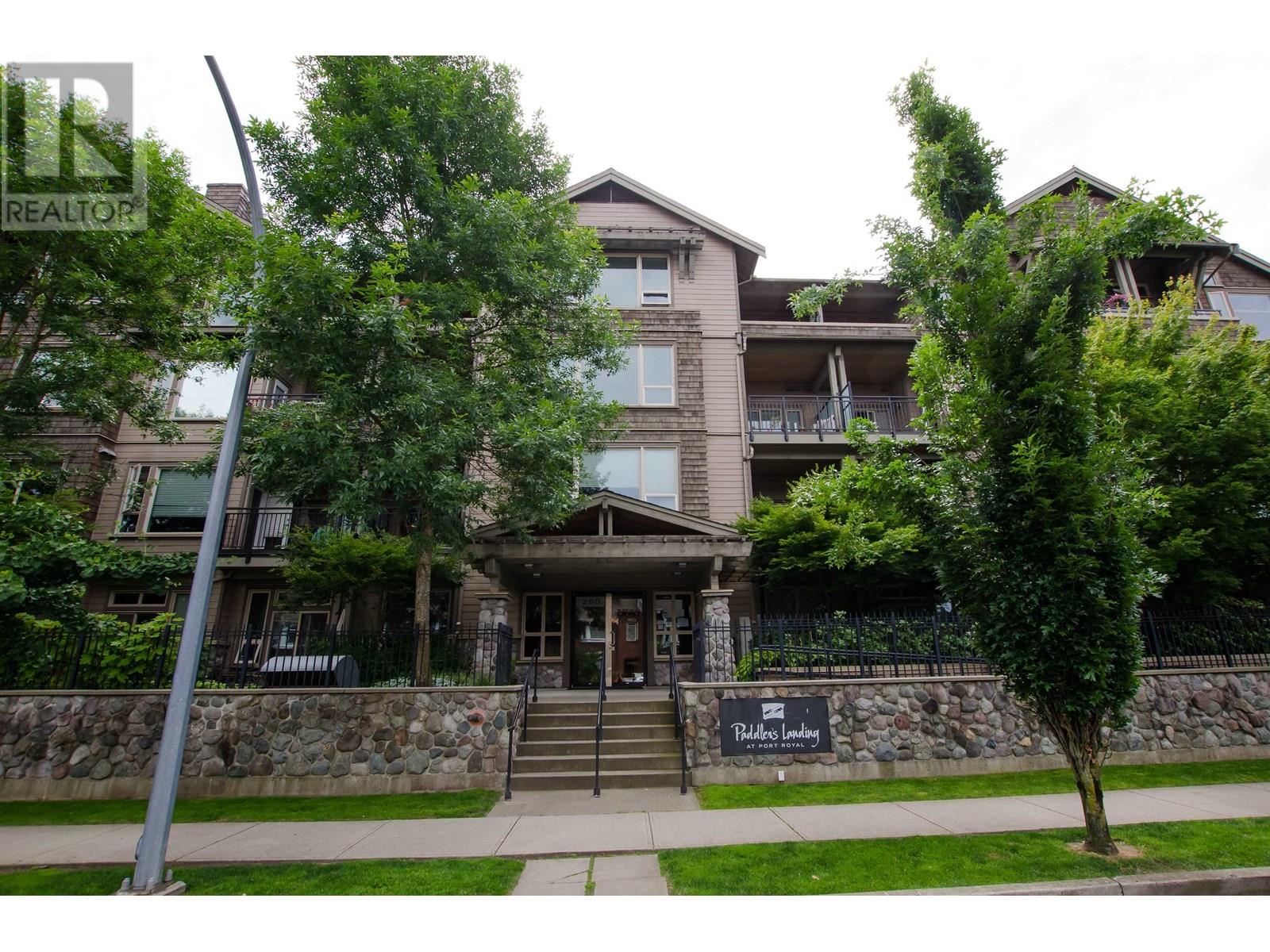 GROUND-FLOOR riverfront living at Paddler´s Landing! This 955 square ft 2-bed/2-bath home blends heritage charm with modern comfort: soaring 10' ceilings, reclaimed fir floors & doors, an exposed brick feature wall, and a chef-ready kitchen with granite countertops. Patio doors open to your private 145 sqft patio great for BBQs-with direct access to Port Royal´s 1.7 km riverfront boardwalk, parks and Port Royal beach. Bedrooms are well-separated for privacy; the spacious primary features a walk-in closet and spa-style ensuite. Cozy fireplace, large. flex-space and secure parking. Recent updates: new stove, gas cooktop, microwave, washer/dryer (2023), and fridge (2023); dishwasher and flooring refinished approx 5years old. Call your trusted Realtor Dont miss out! July 13 2-4 (id:48970) Show More