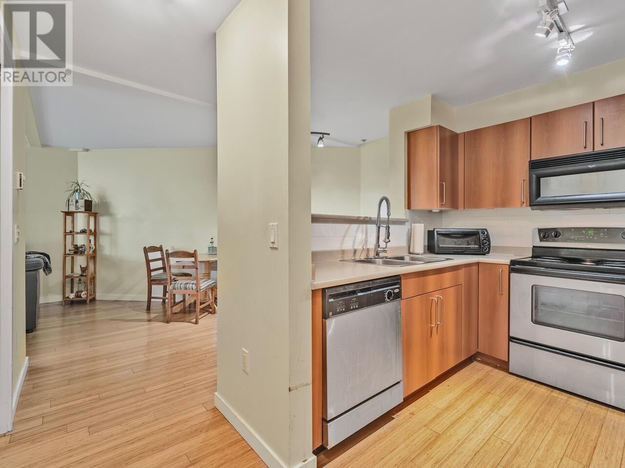 Come see this fabulous GROUND FLOOR condo with a HUGE park-facing patio! This one bed/1 bath unit has a flexible layout that can accomodate a small work space in addition to the dining and generously sized living area, with a fabulous entertaining space outside. Enjoy a morning coffee on your private 230 sq/foot patio, or a glass of wine after work. Situated within walking distance to shops, parks, transit and skytrain, on a quiet and peaceful tree-lined street. Pet friendly building with 1 dog or 1 cat permitted and one secure underground parking and storage locker. Call your realtor to set up a private showing today! (id:48970) Show More