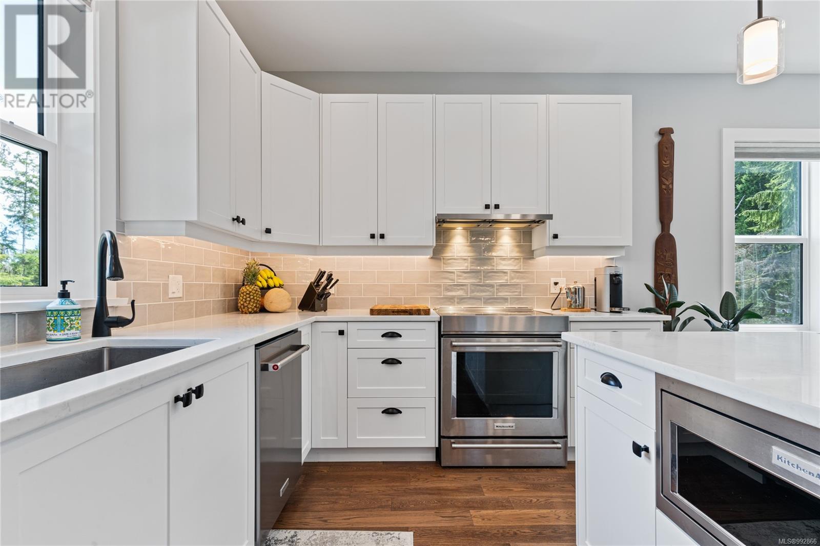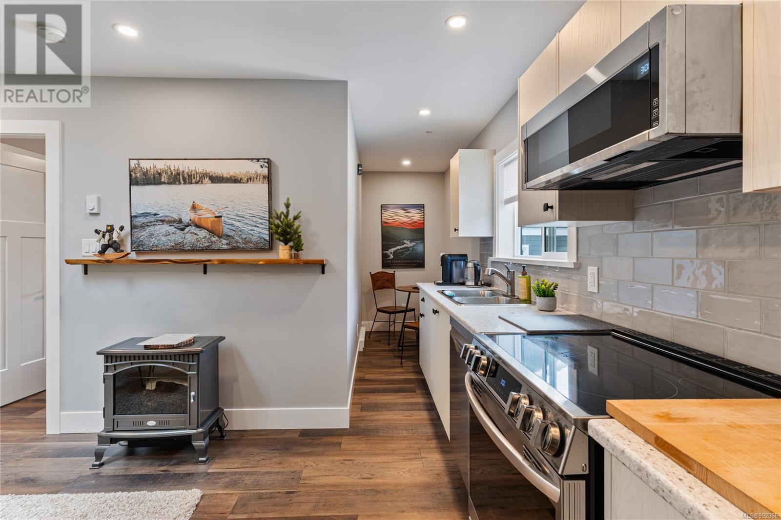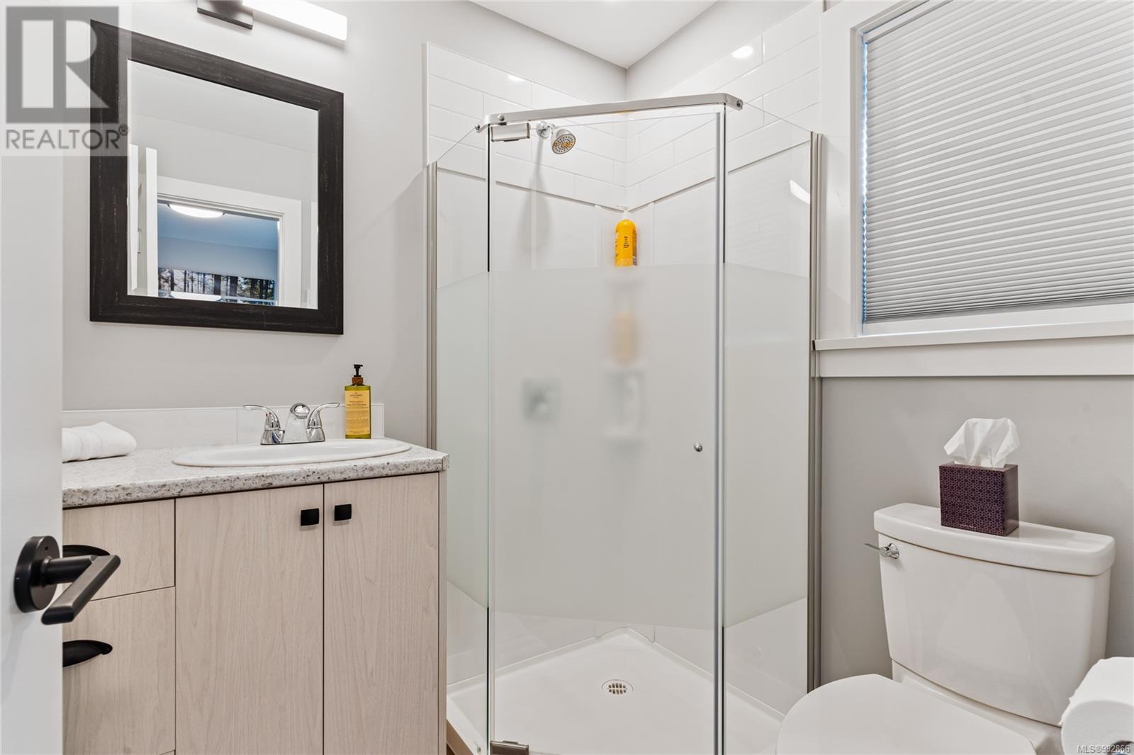 Experience modern comfort and natural beauty in this stunning custom home, built in 2022. Nestled in a serene location, this property offers a tranquil lifestyle. The home features high ceilings and large windows and includes 2 spacious bedrooms, 3 bathrooms, a 1-bedroom mortgage helper, and a spacious crawlspace. Inside, you'll find a bright and welcoming living space with wood floors and a fireplace, adding warmth and ambiance. The open kitchen boasts quartz countertops and stainless steel appliances, perfect for gatherings. Practical amenities include a generous laundry room and a large double-car garage. Enjoy the expansive 0.269 acre property surrounded by pristine forests, short drive to Downtown Victoria, Langford and Mill Bay. The property also offers close proximity to parks, trails, and Shawnigan Lake. (id:48970) Show More