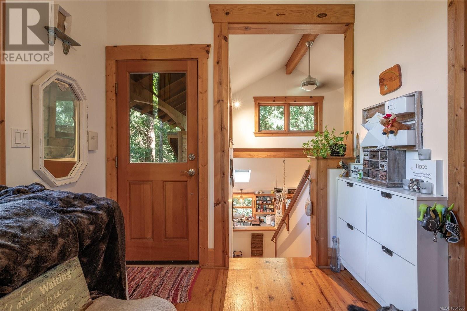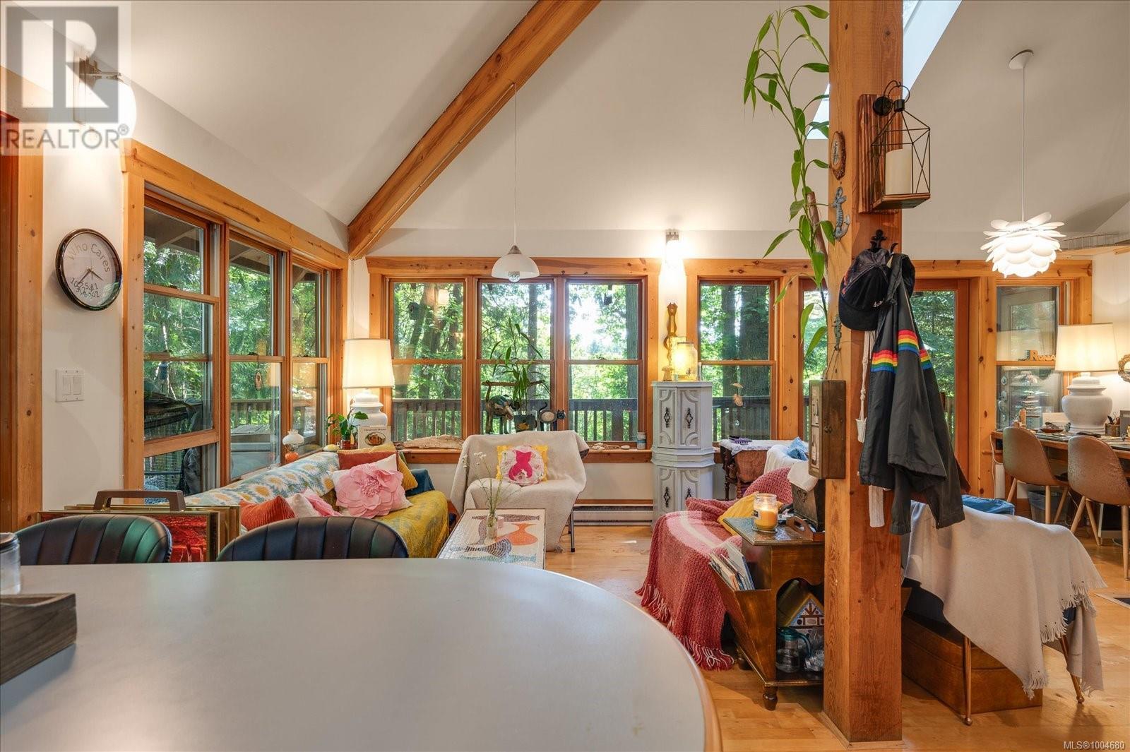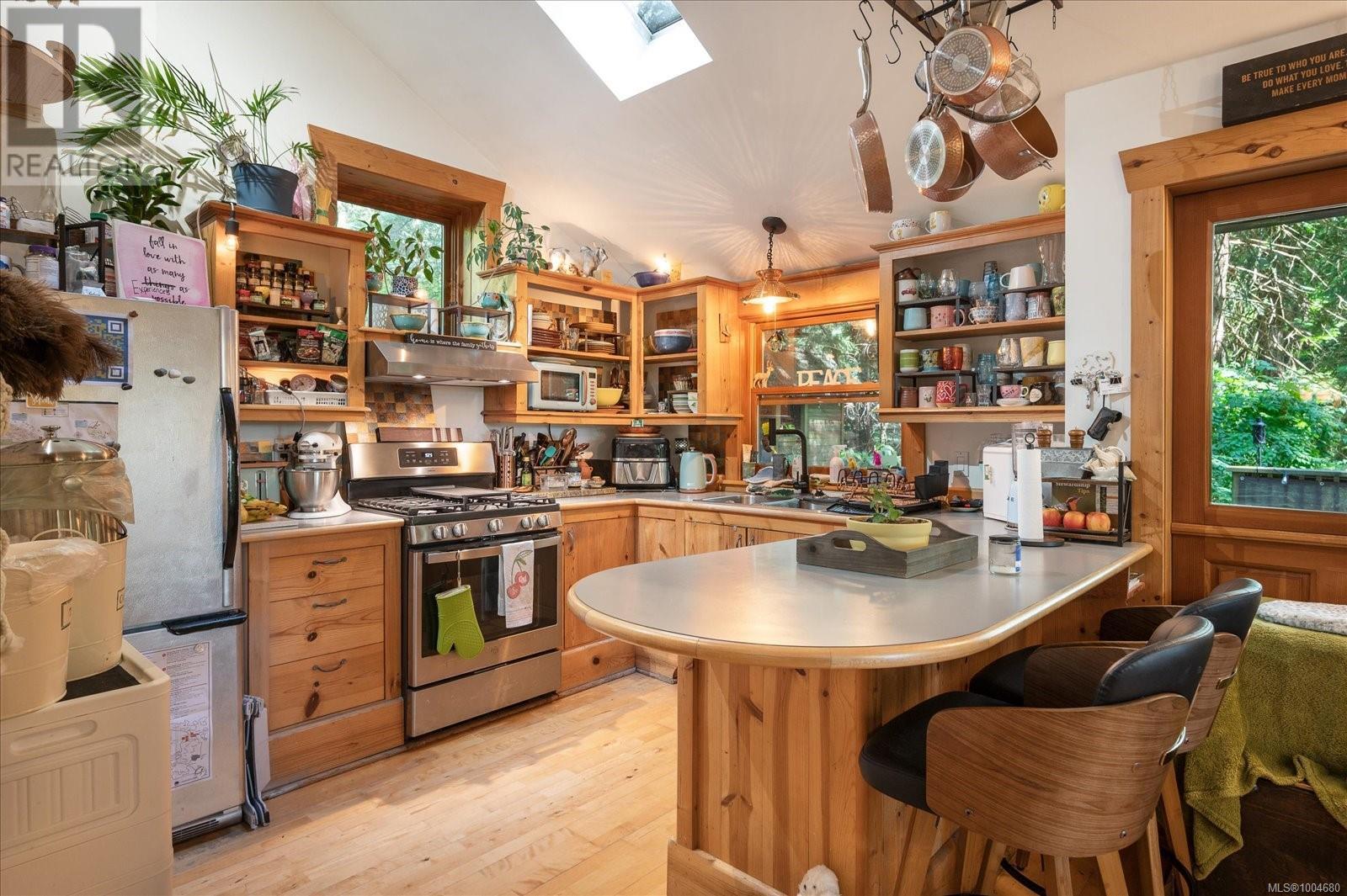 Rustic charm with architectural style and modern comfort are defining characteristics of this wonderful home. This is a custom built home on just under half an acre of wooded land with a creek running along the base of the lot. Wood exterior siding and wood trim inside accentuate the rustic elegance of the architect designed building. The main floor features open space living and dining. A broad wrap around wooden deck has space for relaxing and dining outdoors. The kitchen opens to the living/dining area with bar seating. A large skylight makes the kitchen space bright. Appliances include a refrigerator and gas range and oven. The main bedroom is accessed from a entry space off of the living room. A full glass paneled door leads out to the deck. Upstairs is a second bedroom and a 3 piece bath. Steps away is an auxiliary building with a 3rd bedroom and 3 piece bath and kitchenette. (id:48970) Show More