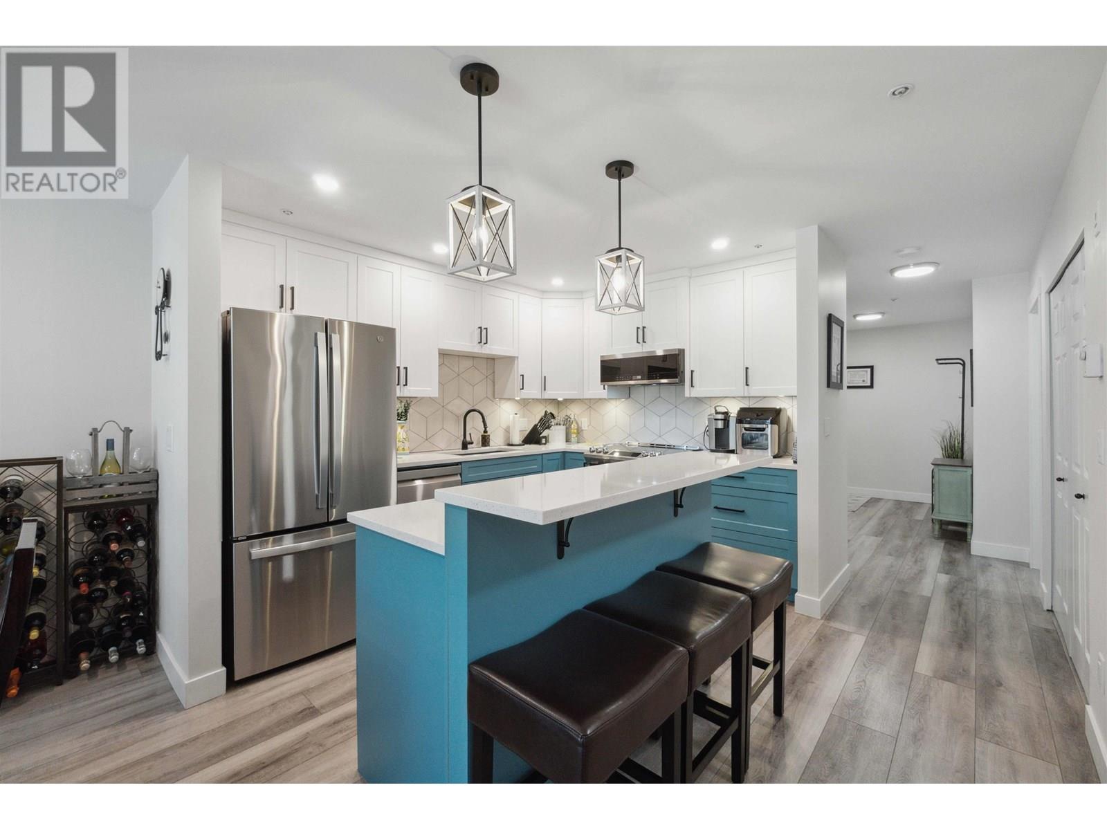 Fall in love with this rarely available, beautifully renovated 2-bedroom + den, 1,238 square ft ground-floor corner unit in the heart of Pitt Meadows. Redesigned with modern finishes, this bright, open-concept home features a stunning kitchen and a private patio with a peaceful, country-like feel. The spacious primary suite includes a luxurious en-suite with a soaker tub, glass shower, bidet, double sinks, and heated floors. Building upgrades include a new roof, gutters, downspouts, elevator, and refreshed lobby. Two side-by-side parking stalls, a storage locker, and maintenance fees covering hot water and heat complete this perfect package. Don´t miss the opportunity to own this exceptional home in desirable Woodford Manor! **Pet Restrictions - No Pets** Open house July 12 and July 13 @ 1-3pm (id:48970) Show More
