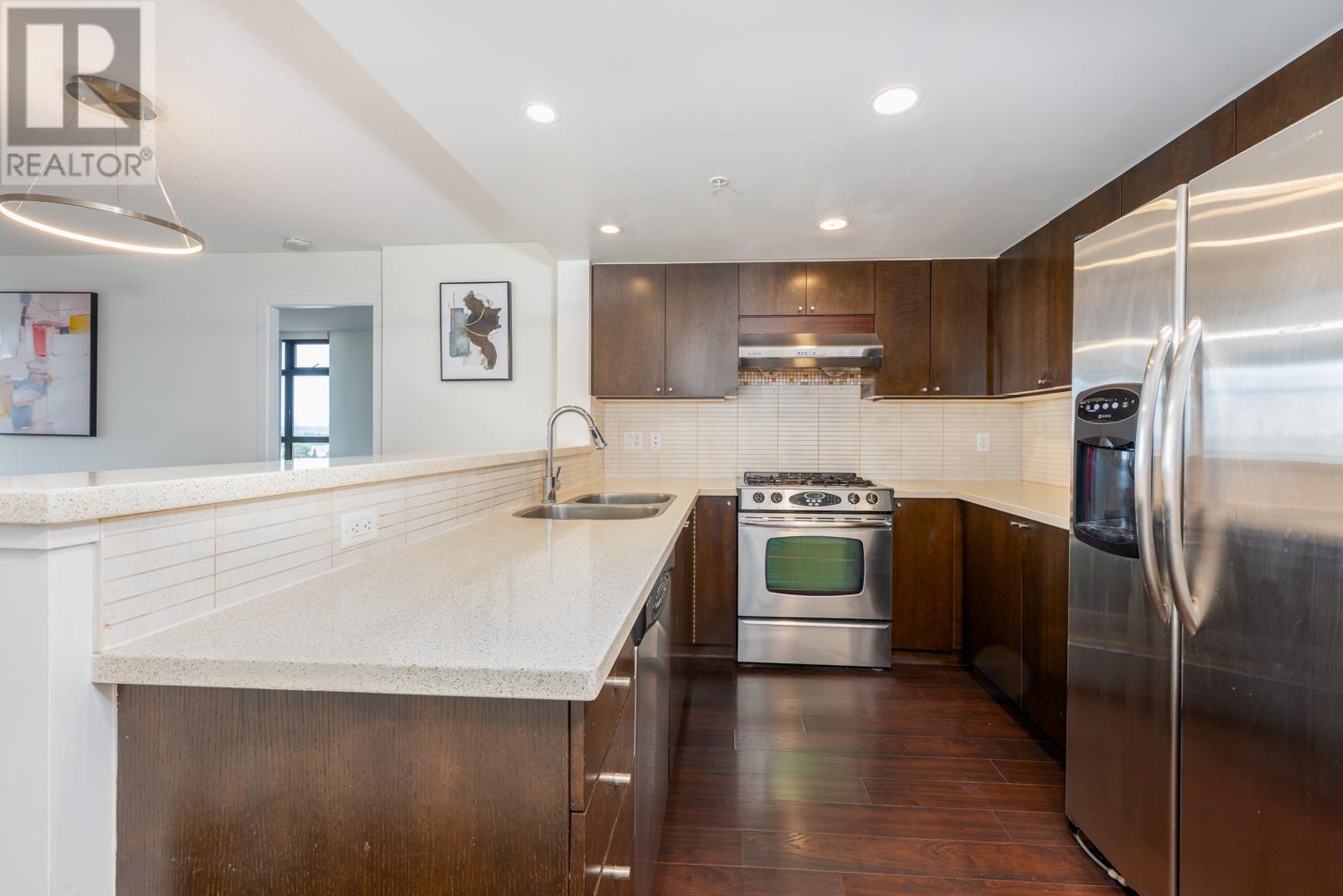Bright and Spacious Northwest Corner Suite with Mountain Views at PRADO Welcome to this beautifully appointed former show suite at PRADO, featuring a desirable Northwest corner location with stunning mountain views. This well-designed home offers a spacious layout with two generously sized bedrooms, two full bathrooms, and an open-concept kitchen-ideal for both comfortable living and entertaining. Centrally located just steps from the Canada Line, Kwantlen Polytechnic University, T&T Supermarket, and a wide array of shops and restaurants. The building is well-managed and offers excellent amenities including a fitness centre, meeting room, concierge service, and guest parking. Rentals are permitted (no short-term rentals). Includes one parking stall and a storage locker. (id:48970) Show More