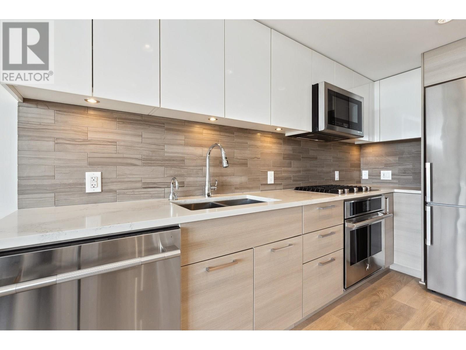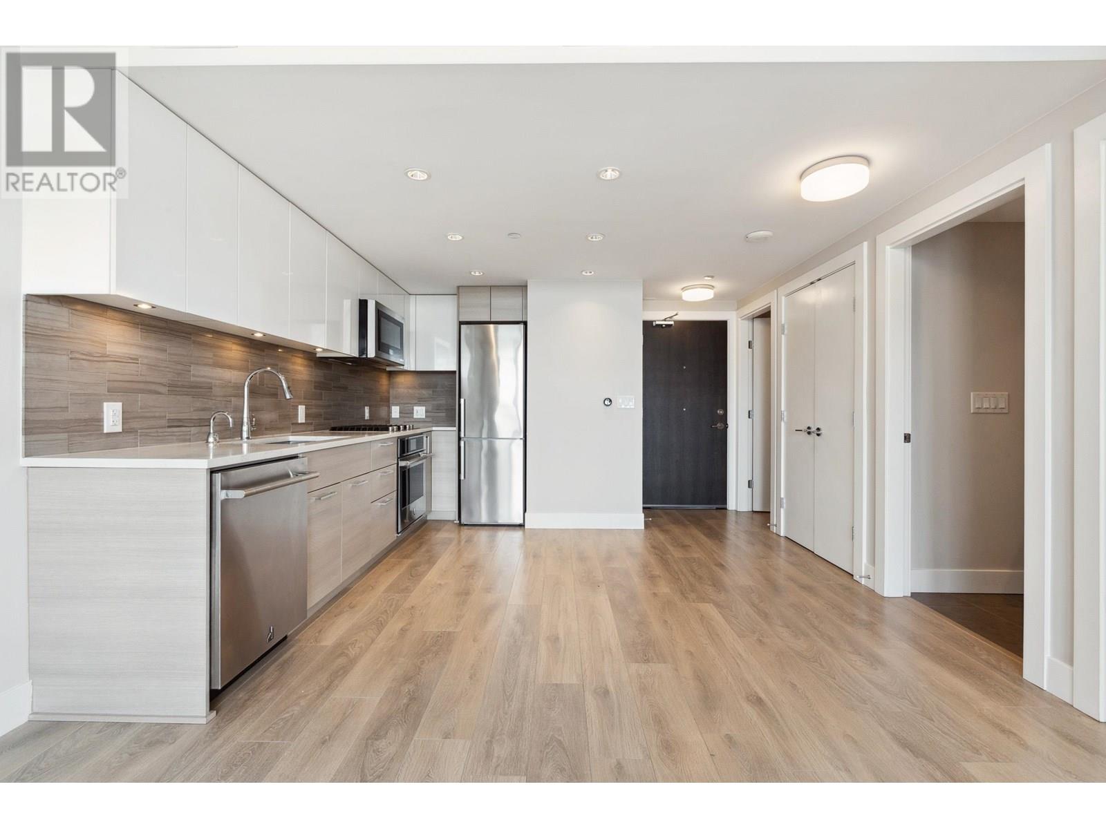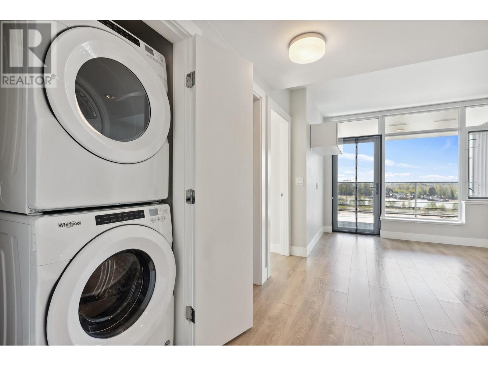 Check out this South facing 1 Bdrm + Den with water VIEW & a large 149sqft covered balcony for bonus outdoor living space at ENCORE in River District by Wesgroup. Huge perks are 2 side-by-side regular parking stalls & 2 X-large storage lockers ( 4'x8' & 7'x12')!! Cozy open floor plan with full size S/S appliances including gas range, microwave, dishwasher & fridge, tiled backsplash with quartz countertop, lots of built-in wall units for storage, laminate floors, Nest thermostat for heating/cooling by heat pump & Nuheat in-floor healing in bathroom. Bldg's own 2nd flr amenities offers a large lounge/kitchen, 2 guest suites + access to Club Central - 14,000sf of indoor pool, gym, squash courts, sauna, steam room, children's play room, party room & garden. Daycare, Save-On, Everything Wine, Sushi Mura, Bufala, banks, cafes, Shoppers & dining all mere steps away. 2 min walk to the bus stop for easy transit, with a direct bus #80 bus to Canada Line at Marine Gateway Skytrain & bus #31 to Metrotown Skytrain. (id:48970) Show More