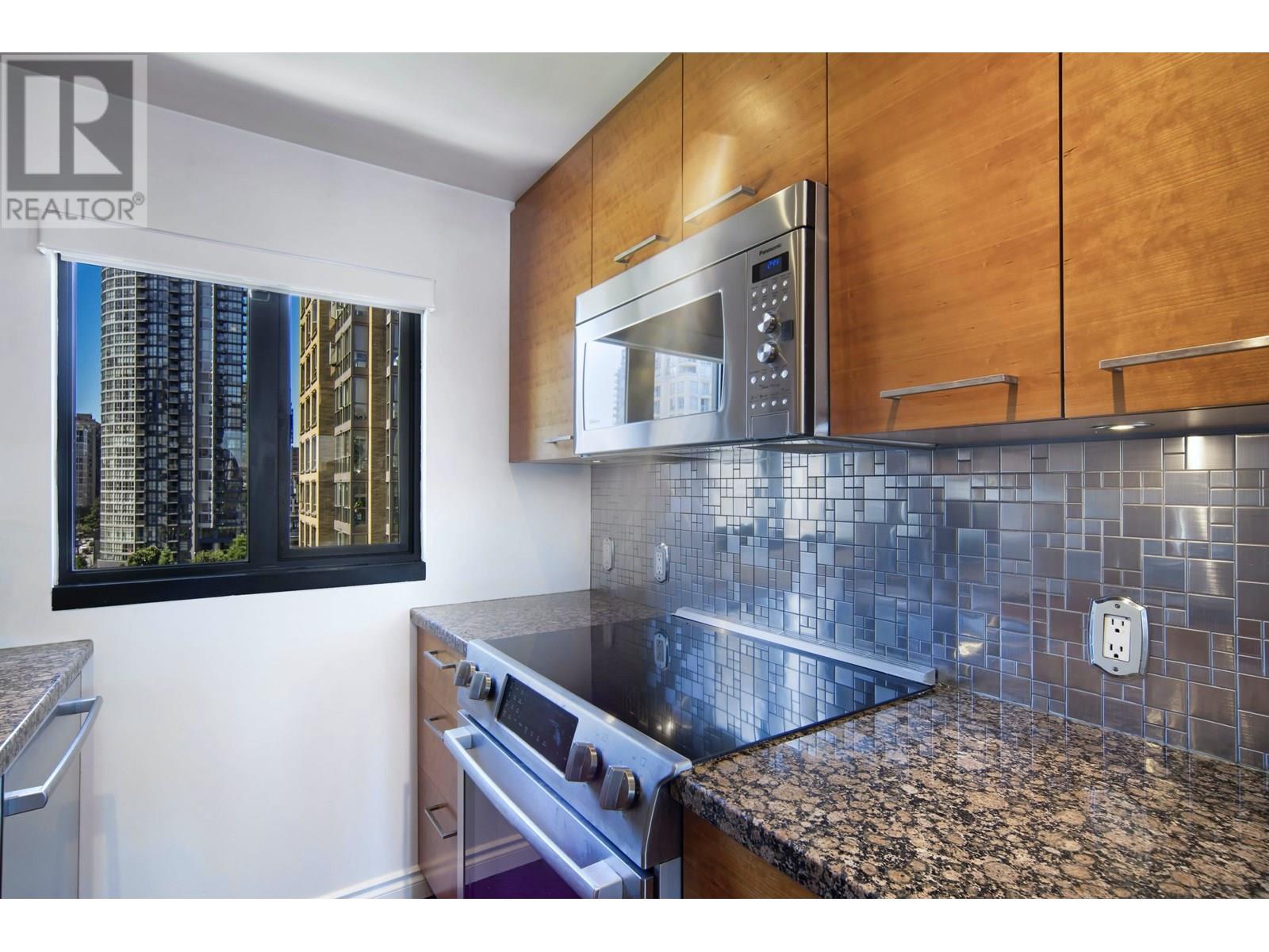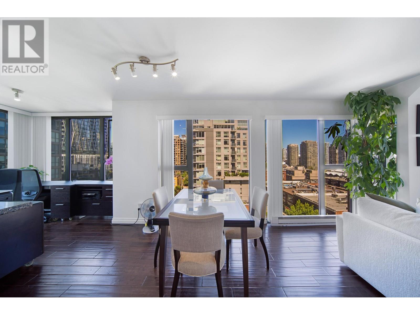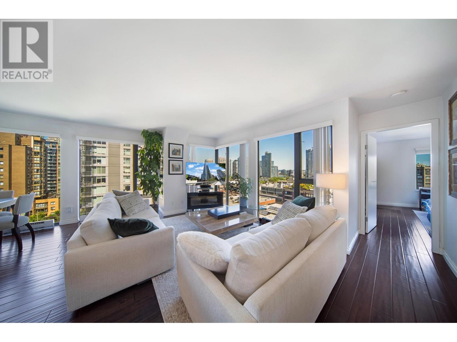 1105-1155 Homer Street, Vancouver, BC V6B 5T5 - Welcome to City Crest by Golden City Homes Ltd., in the heart of Yaletown. This bright 2 bed + den corner unit offers 1,007 SF of thoughtfully updated living with floor-to-ceiling windows and park views. Over $70K spent on upgrades including a birch kitchen with granite counters, stainless appliances, undermount sink, and designer backsplash. Engineered hardwood floors, updated vanities, new toilet, vertical blinds, and sleek electric fireplace add style. Includes $5K self-venting washer/ dryer, no popcorn ceilings, 1 parking & 1 locker (#63 for both) parking P1, Storage P2. Pet-friendly, rentals allowed. Building features gym, meeting room, party room/ library, and garden patio with BBQ. Steps to seawall, transit, shops & restaurants. (id:48970) Show More
