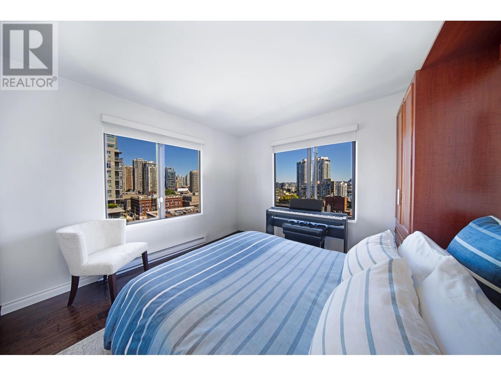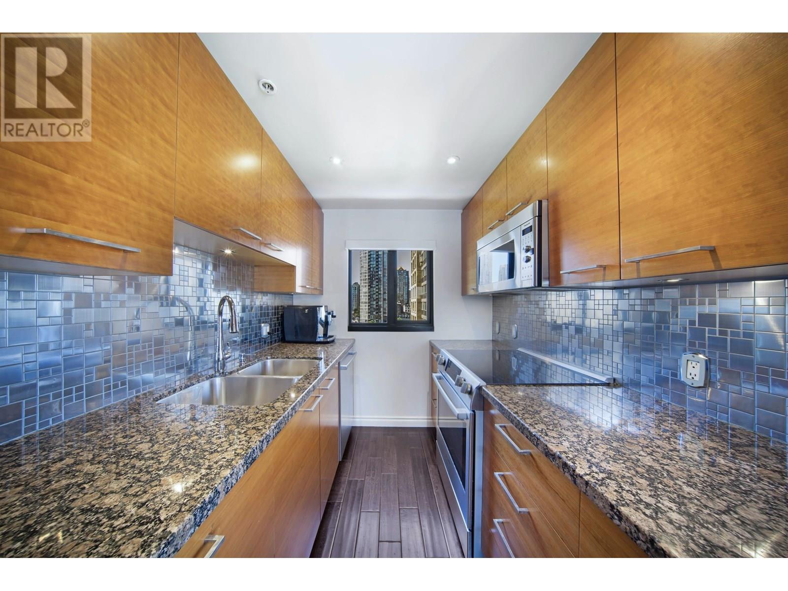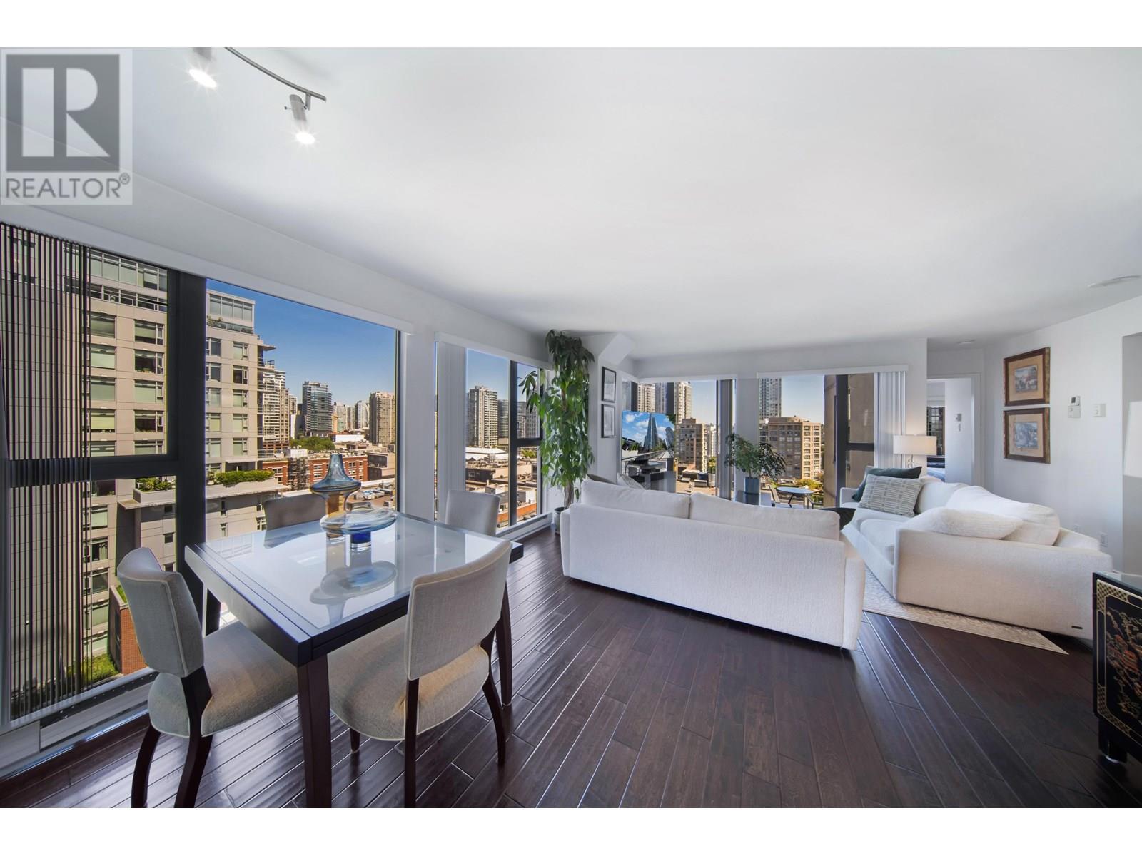 1105-1155 Homer Street, Vancouver, BC V6B 5T5 - Welcome to City Crest by Golden City Homes Ltd., in the heart of Yaletown. This bright 2 bed + den corner unit offers 1,007 SF of thoughtfully updated living with floor-to-ceiling windows and park views. Over $70K spent on upgrades including a birch kitchen with granite counters, stainless appliances, undermount sink, and designer backsplash. Engineered hardwood floors, updated vanities, new toilet, vertical blinds, and sleek electric fireplace add style. Includes $5K self-venting washer/ dryer, no popcorn ceilings, 1 parking & 1 locker (#63 for both) parking P1, Storage P2. Pet-friendly, rentals allowed. Building features gym, meeting room, party room/ library, and garden patio with BBQ. Steps to seawall, transit, shops & restaurants. (id:48970) Show More