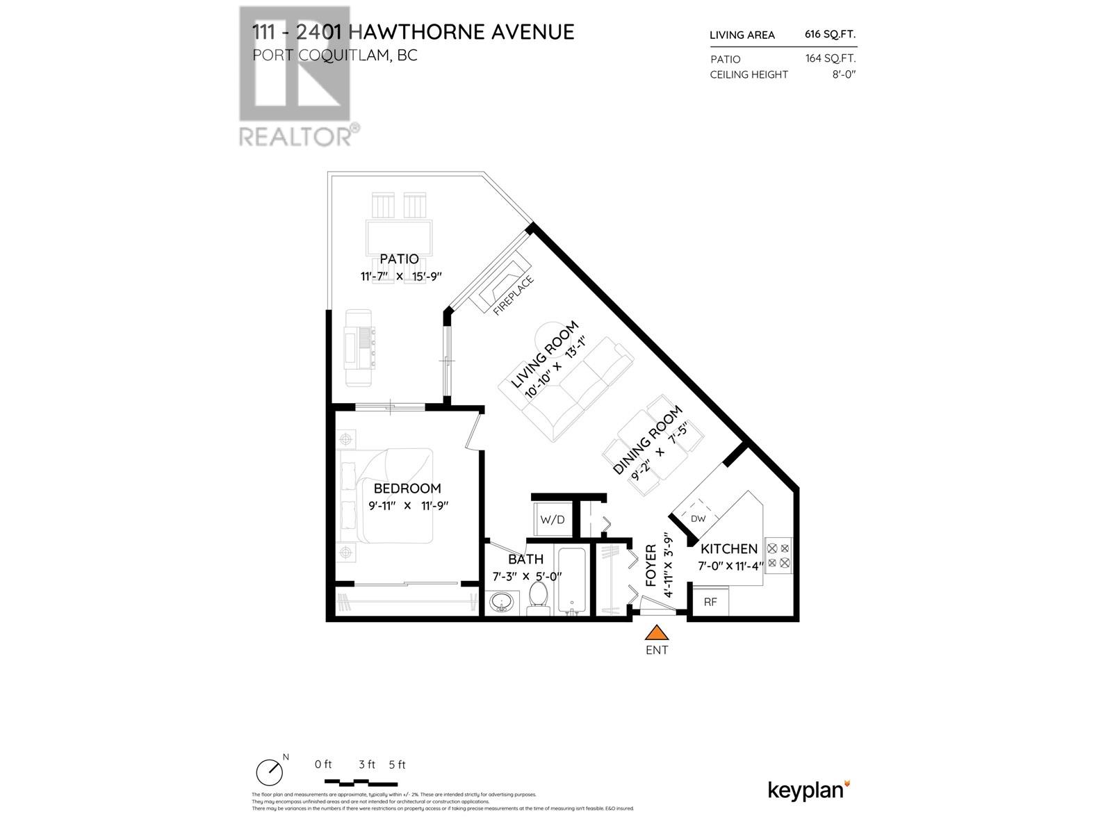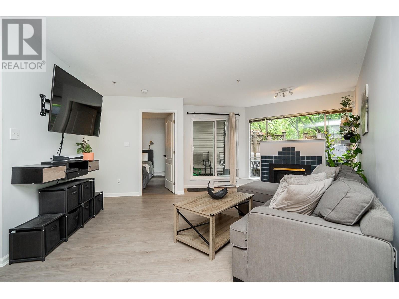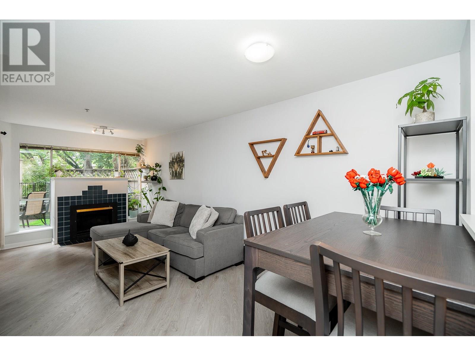 Welcome to Stonebrook in the heart of Port Coquitlam! This ground-floor unit offers 1 bed, 1 bath with 616 square ft of private, living space! Generous living has a cozy gas fireplace, oversized windows that look out to established greenery. Off the living is a large, private, fenced, partially covered patio - perfect for year round use and entertaining! Functional kitchen with lots of storage that looks out to the dining and living. The bedroom is large enough to accommodate a king and has access to the patio. Laminate floors throughout the main and bedroom. Insuite laundry, storage locker and pet friendly building! Steps away from Gates Park, Coquitlam River trails, shops, restaurants, cafés, Community Centre and the West Coast Express. A perfect home for first-time buyers and investors! (id:48970) Show More