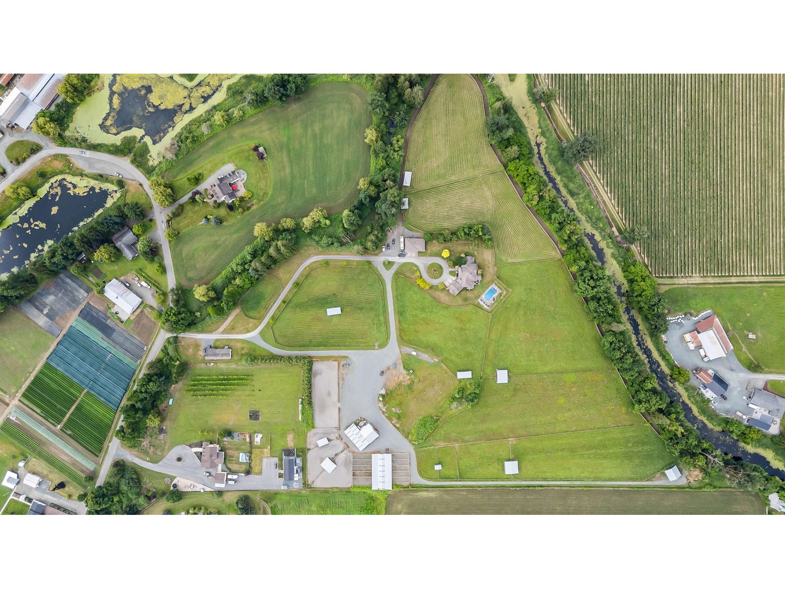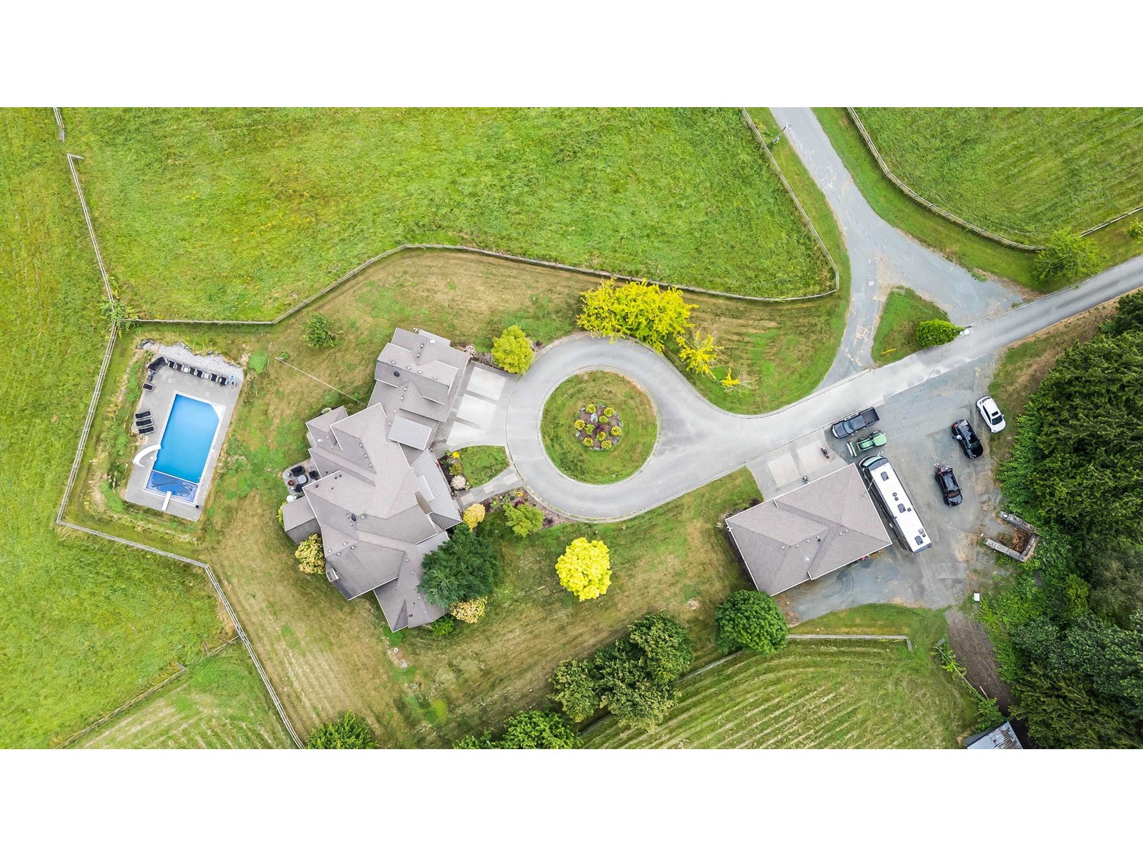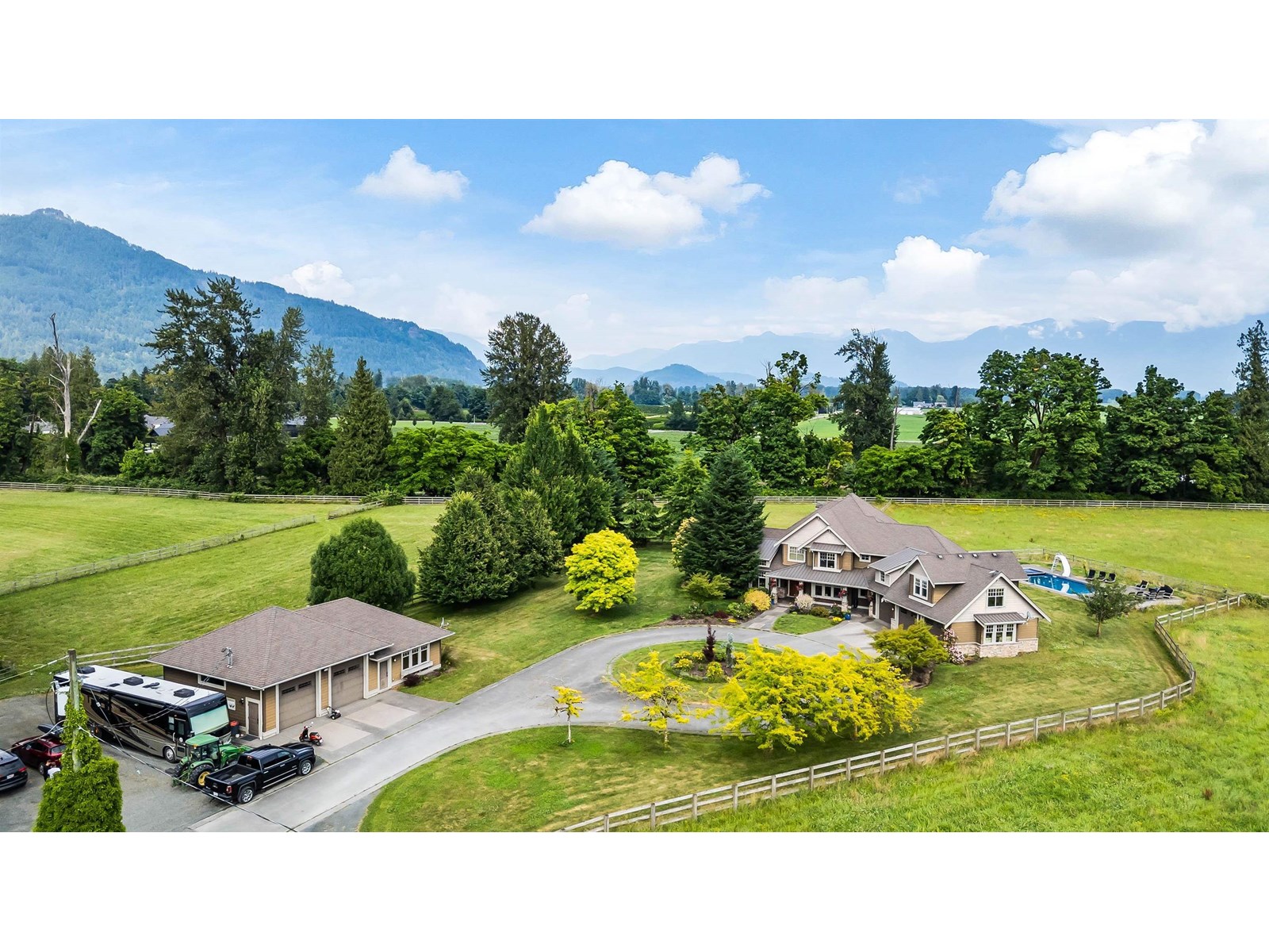 Welcome to your private 20+ acre estate"”an ideal blend of luxury & agricultural opportunity. This gated property features 2 barns, 4 wells, a detached workshop, triple garage, Smart Home security, & a pool w/ a new liner, cover, & pump"”all framed by panoramic views. The 5-bdrm main home has been thoughtfully designed with no expense spared, boasting soaring 14' ceilings, an inviting great room, a gourmet kitchen w/ an oversized pantry, & a spacious main-floor primary suite. Relax in the sunroom & admire the sweeping views of your property. With barns ready for livestock, stables w/ paddocks, fertile land, & abundant water, this property is primed for farming, equestrian use, or agri-business. The renovated mobile home offers space for family or rental income. Endless potential awaits! * PREC - Personal Real Estate Corporation (id:48970) Show More