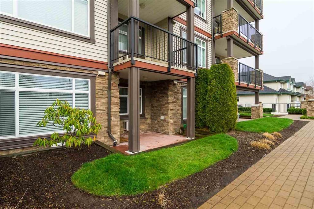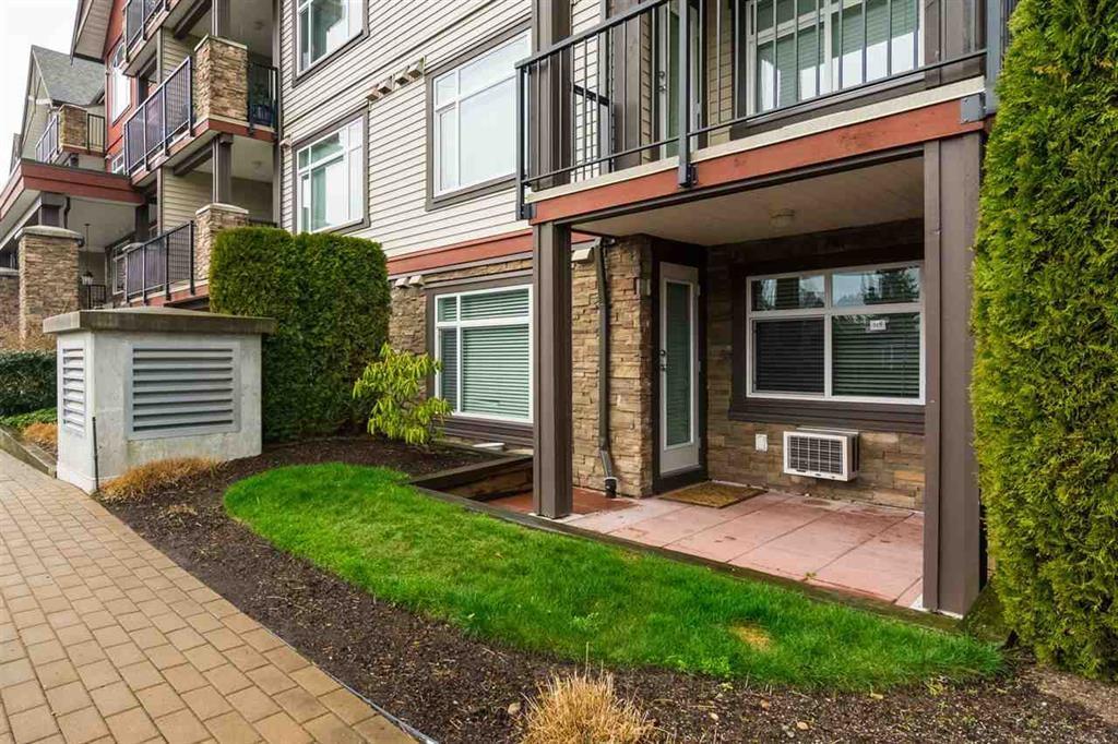 Quick possession possible! Welcome to Madison Crossing by Quadra Homes! This beautiful 1 bedroom + Den ground floor unit has bright southern exposure with lots of windows and your own private entrance! Open concept kitchen with cherry cabinets, stainless steel appliances, granite countertops & a large island. Perfect for entertaining! Master bedroom with ensuite. Use the den as an office or 2nd room! Large outdoor patio, great for those with kids or pets! In-well air conditioning included. Located on a quiet street and near Willowbrook Mall, schools (Nicomekl Elementary & Global Montessori), transit, near future Skytrain Station, restaurants, and parks. Rentals allowed, no restrictions. Perfect for first time buyers or investors. (id:48970) Show More
