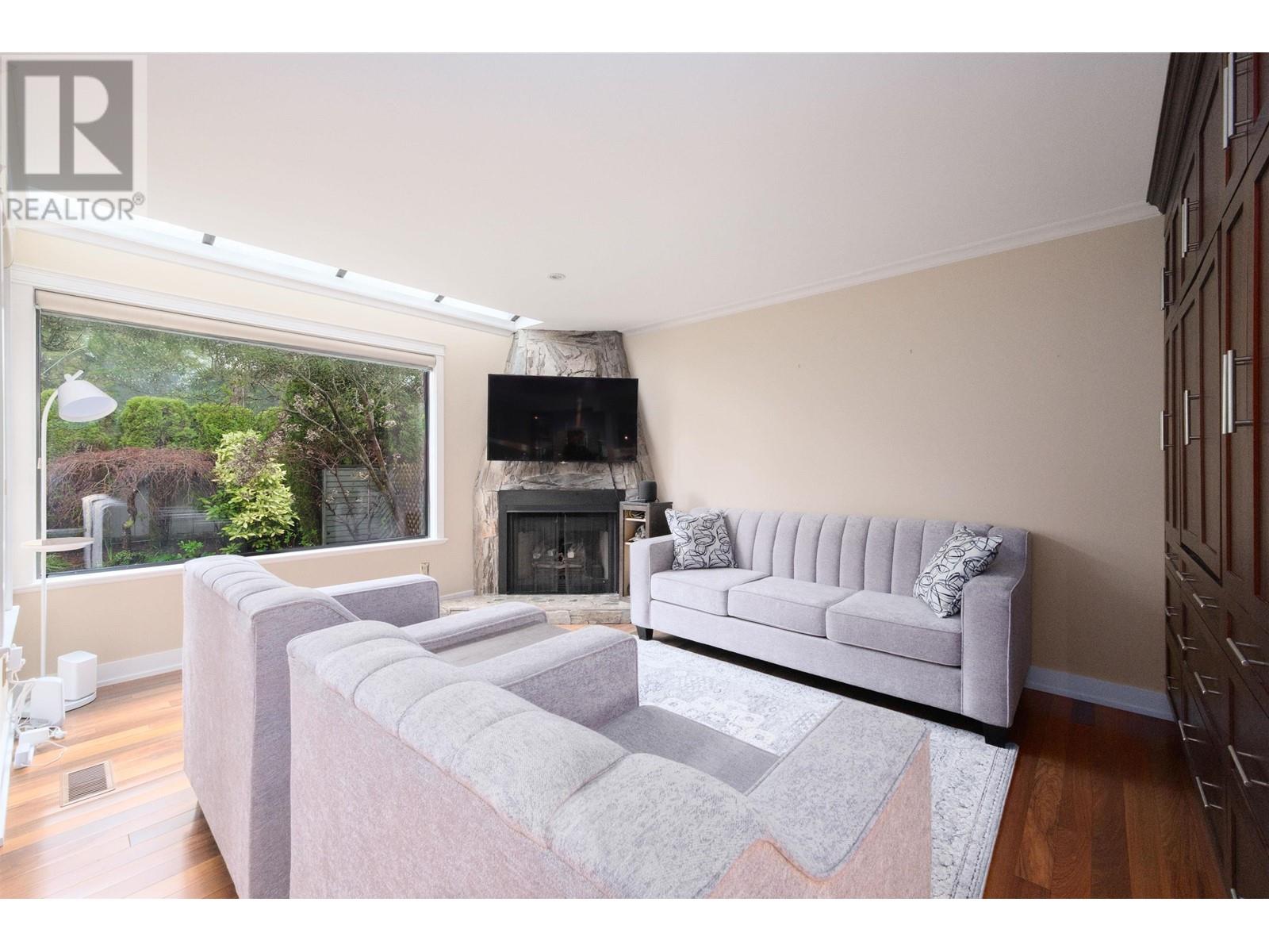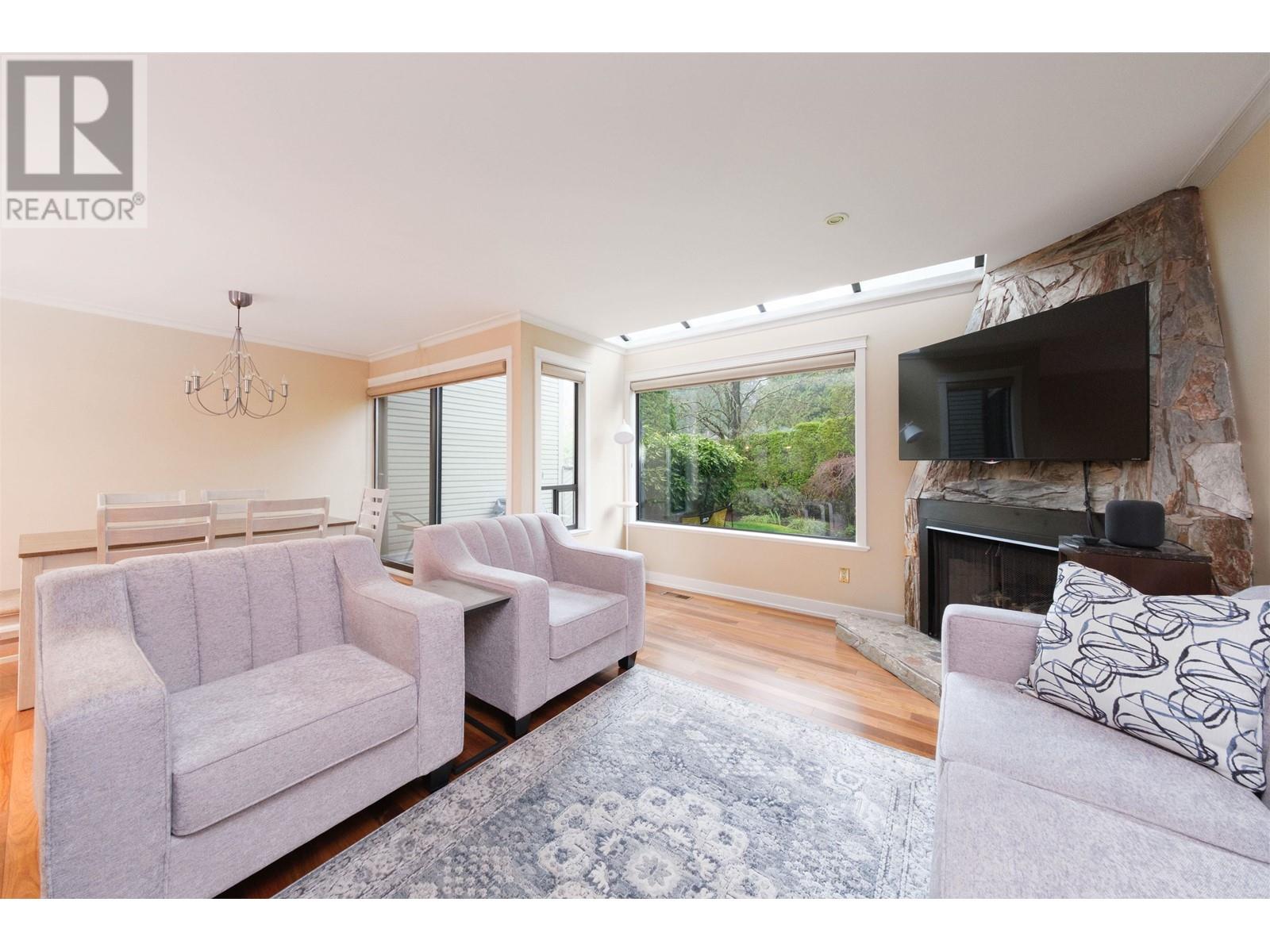 Welcome to Montroyal Village! Family friendly townhome in desirable Canyon Heights neighbourhood. Minutes to Edgemont Village, parks, trails, Grouse Mtn & more! Lots of light. Newer floorings. Living/dining opens onto patio/green space. Updated kitchen. Spacious primary bdrm & ensuite w/vaulted ceilings. Rec room downstairs. 1 parking in garage (w/storage). School catchments: Canyon Heights Elem and Handsworth Secondary. (id:48970) Show More