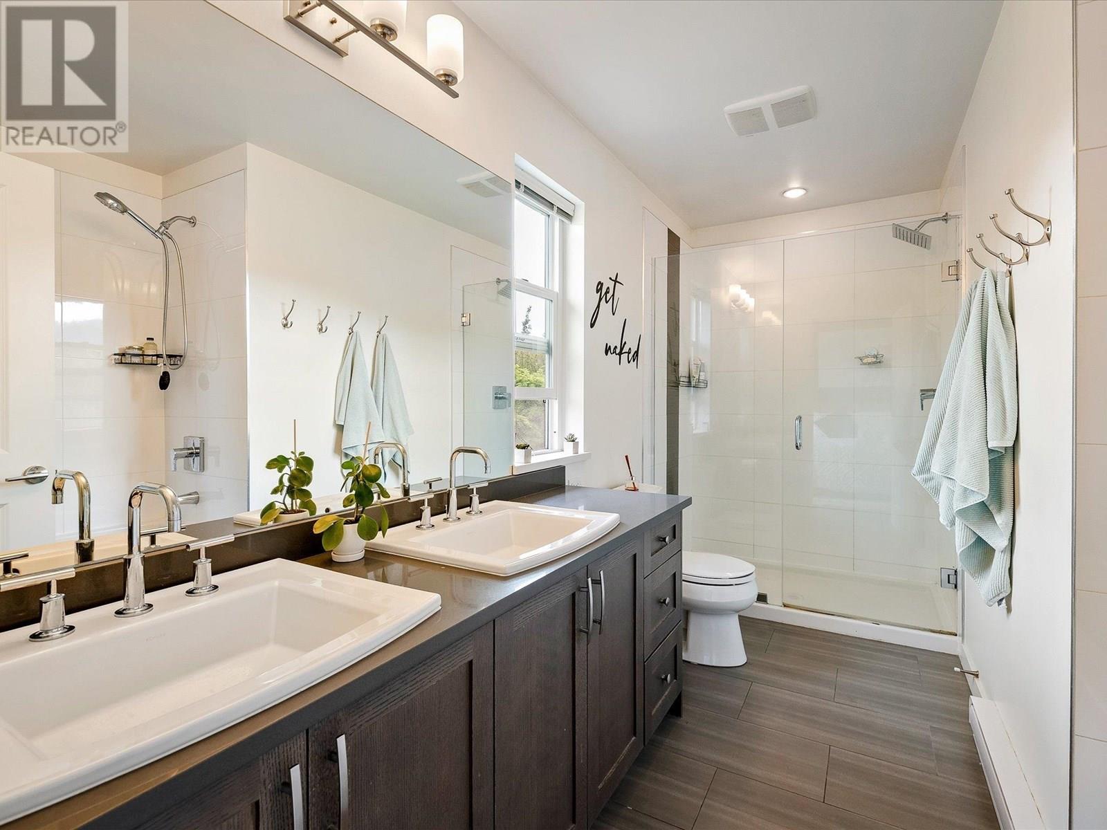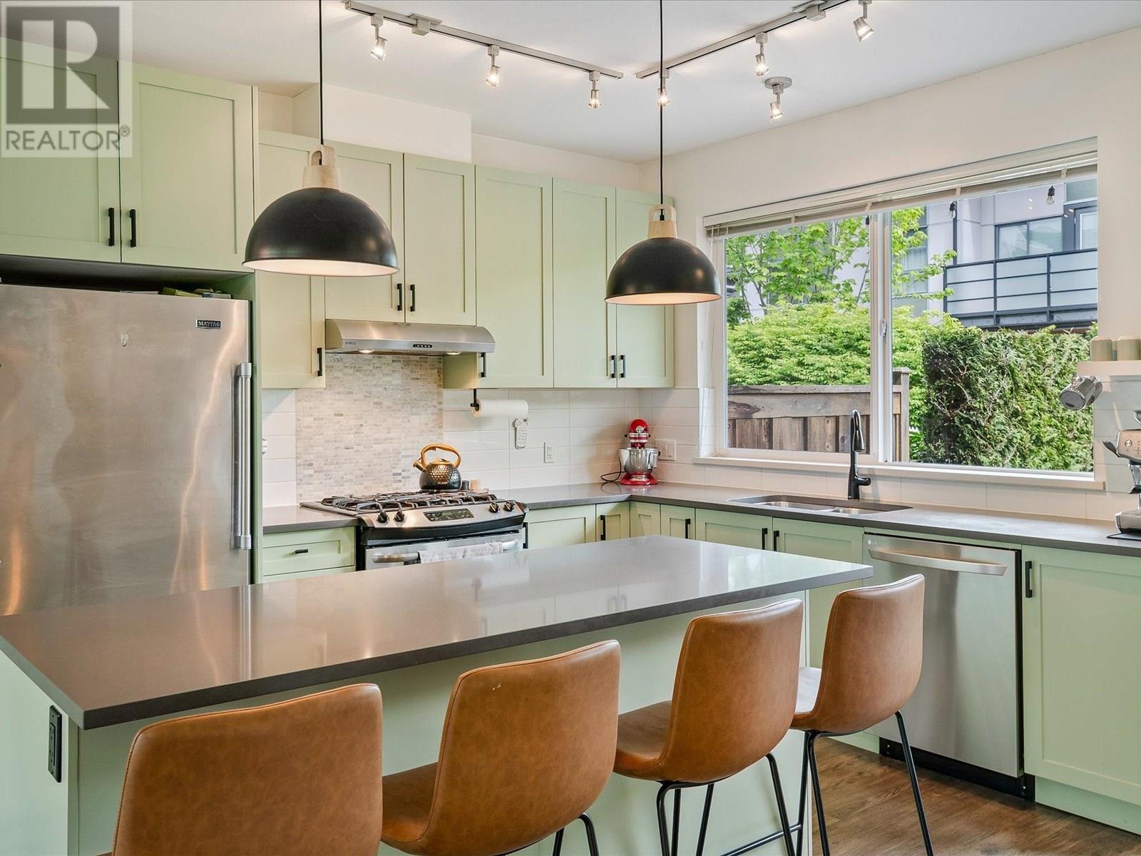 Spacious double garage + 2-car driveway- from this end unit townhome, a rarity for a downtown townhome. Property features an expansive wide floor plan with 3 bedrooms and 2.5 bathrooms, modern lighting, and an upgraded kitchen with stone counters, gas stove, stainless steel appliances, and a custom pantry. The bright interior features laminate flooring and large windows, while a fenced backyard provides the perfect outdoor space for entertaining or your pets. The primary bedroom includes a private balcony with mountain views, a large walk-in closet, and a 4-piece ensuite . Nestled beside the estuary and stunning hiking trails, yet just steps from downtown shops, restaurants, and the Oceanfront park, this home offers the perfect blend of urban convenience and natural beauty. (id:48970) Show More