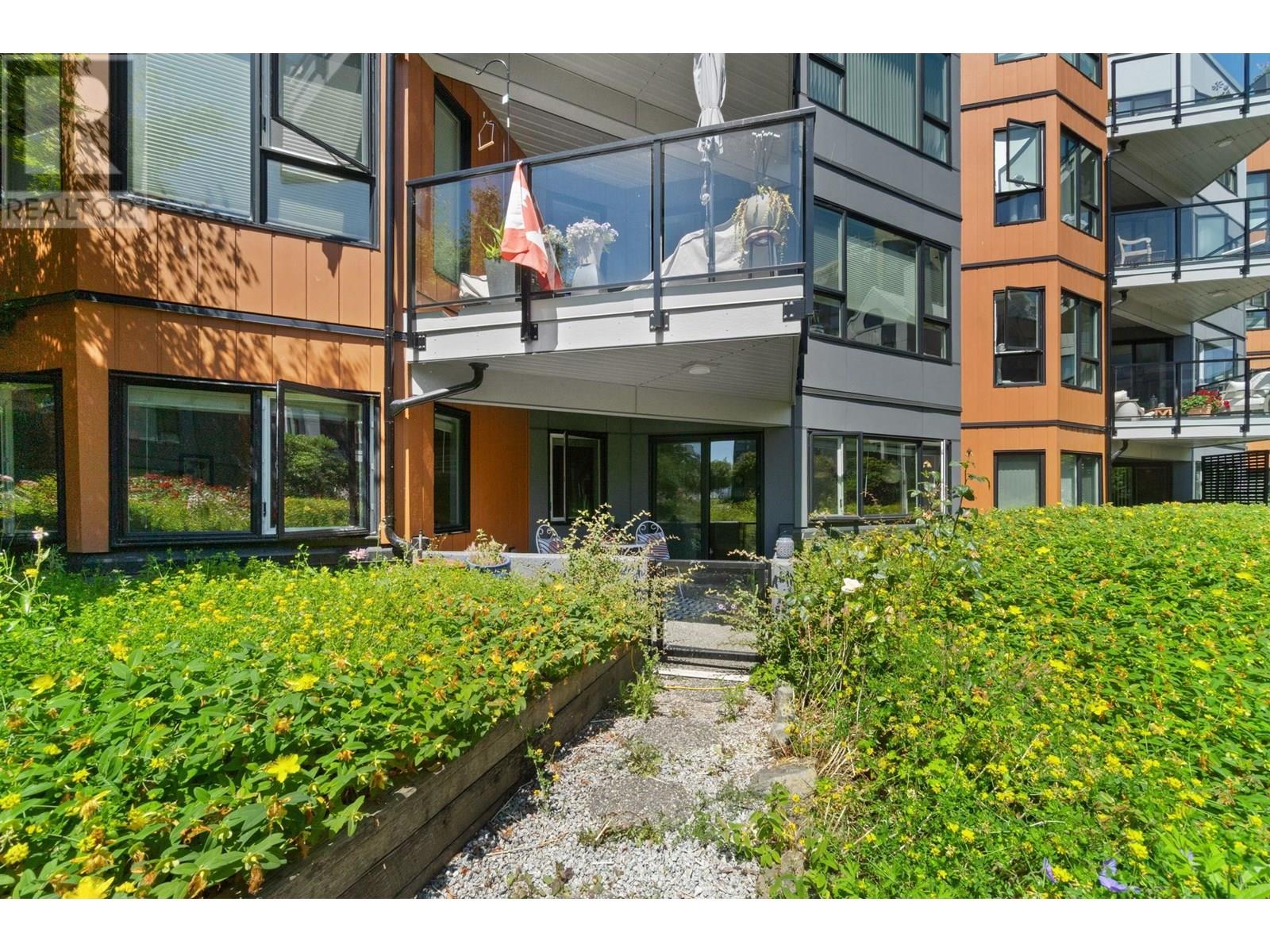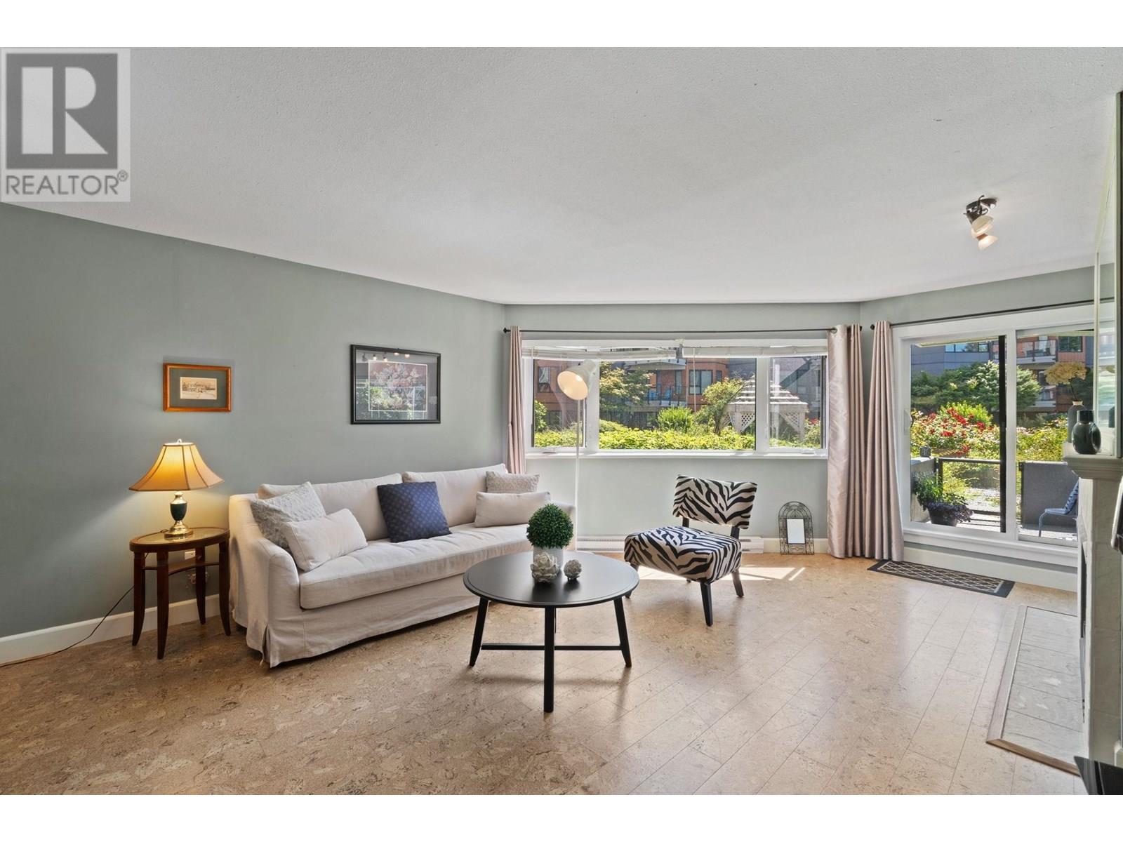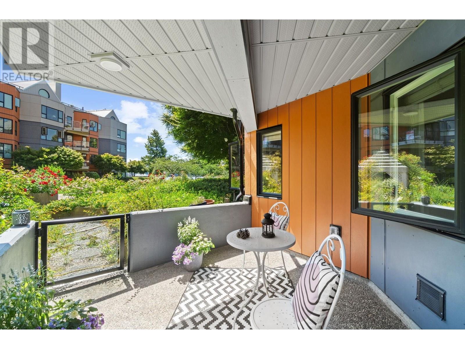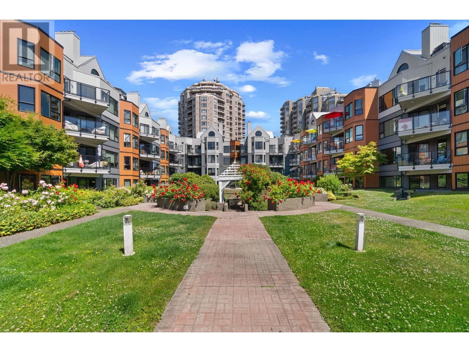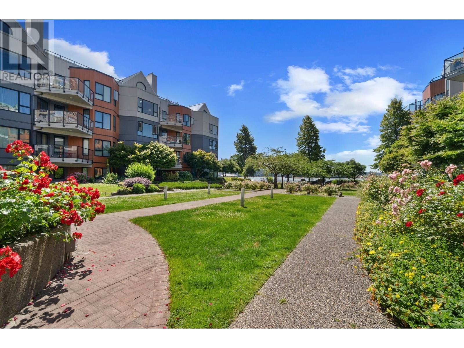 Welcome to Westport at the Quay! This beautifully updated 2-bed, 1-bath garden-level home blends comfort with waterfront charm. Enjoy views of the inner courtyard and Fraser River from every room, plus direct access to a serene covered patio-perfect for morning coffee or evening relaxation. Features include polished cork floors, custom cabinetry, granite counters, stainless and slate grey appliances, a wine fridge, and a spa-like bathroom with heated floors and a 6' Jacuzzi tub. The spacious layout fits full-sized furniture and includes in-suite laundry. The building is fully rainscreened, with a new roof, windows, and replumbed. Steps to the scenic boardwalk, River Market, shops, parks, and SkyTrain in one of New West´s most walkable neighbourhoods. Pet-friendly! Open House Sat & Sun 11-1pm. (id:48970) Show More