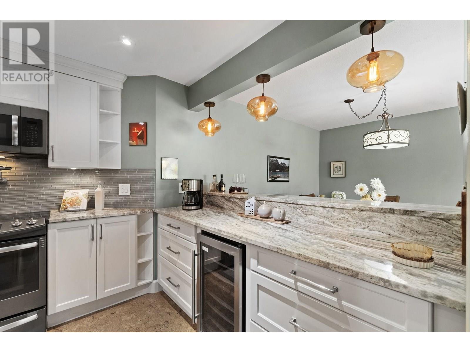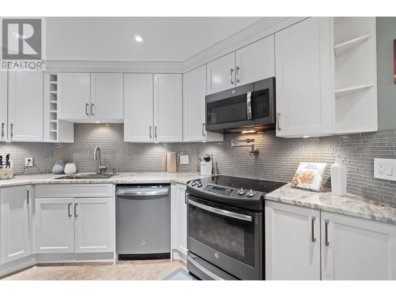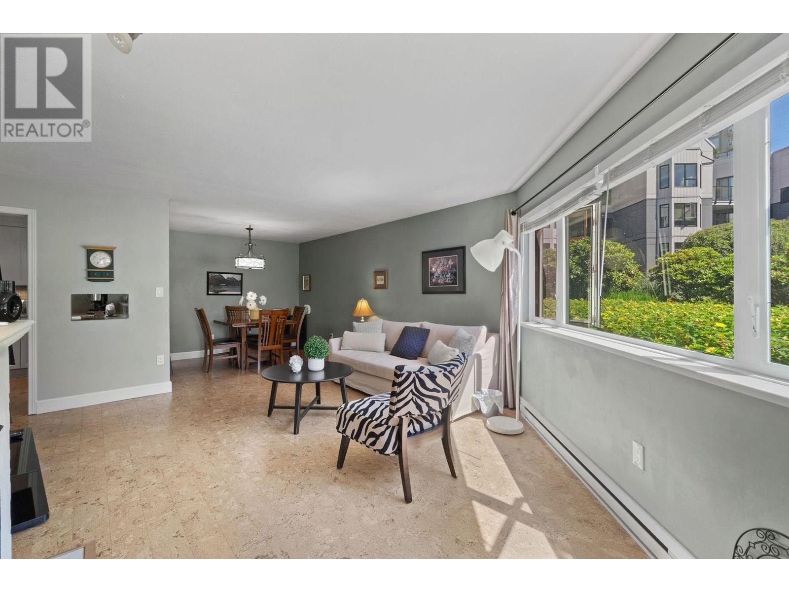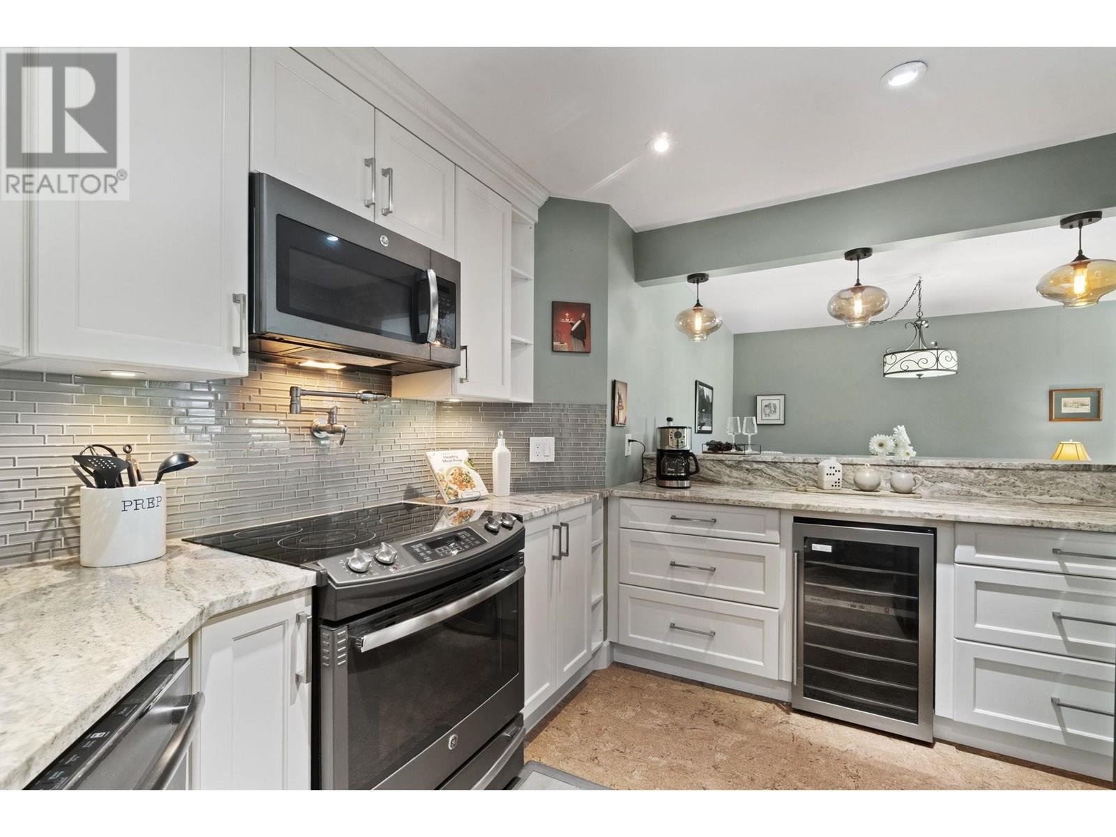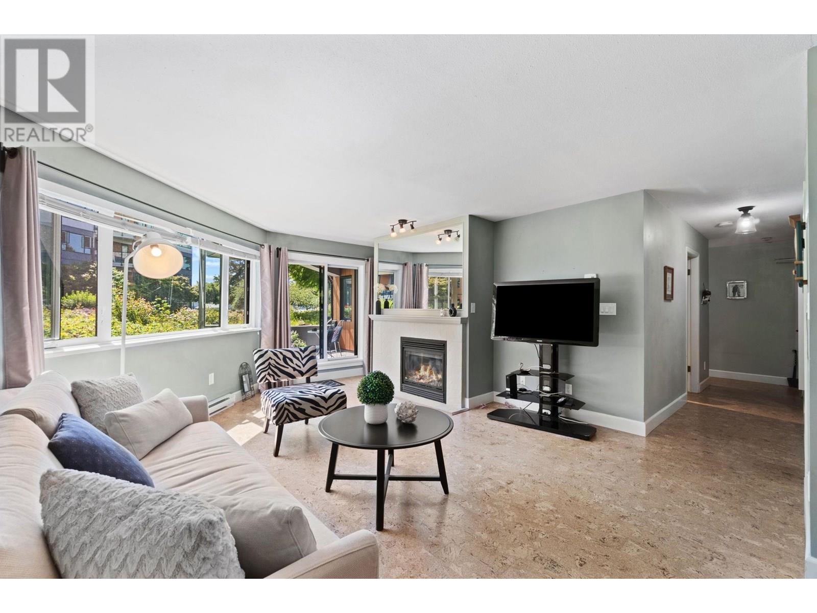 Welcome to Westport at the Quay! This beautifully updated 2-bed, 1-bath garden-level home blends comfort with waterfront charm. Enjoy views of the inner courtyard and Fraser River from every room, plus direct access to a serene covered patio-perfect for morning coffee or evening relaxation. Features include polished cork floors, custom cabinetry, granite counters, stainless and slate grey appliances, a wine fridge, and a spa-like bathroom with heated floors and a 6' Jacuzzi tub. The spacious layout fits full-sized furniture and includes in-suite laundry. The building is fully rainscreened, with a new roof, windows, and replumbed. Steps to the scenic boardwalk, River Market, shops, parks, and SkyTrain in one of New West´s most walkable neighbourhoods. Pet-friendly! Open House Sat & Sun 11-1pm. (id:48970) Show More