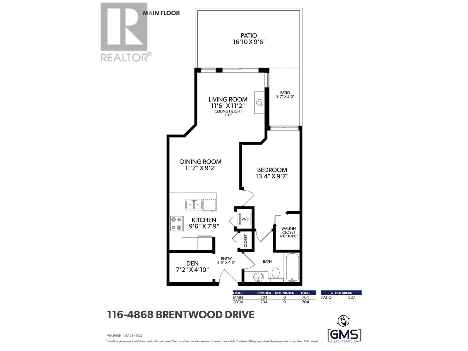 - Area 704 sq ft