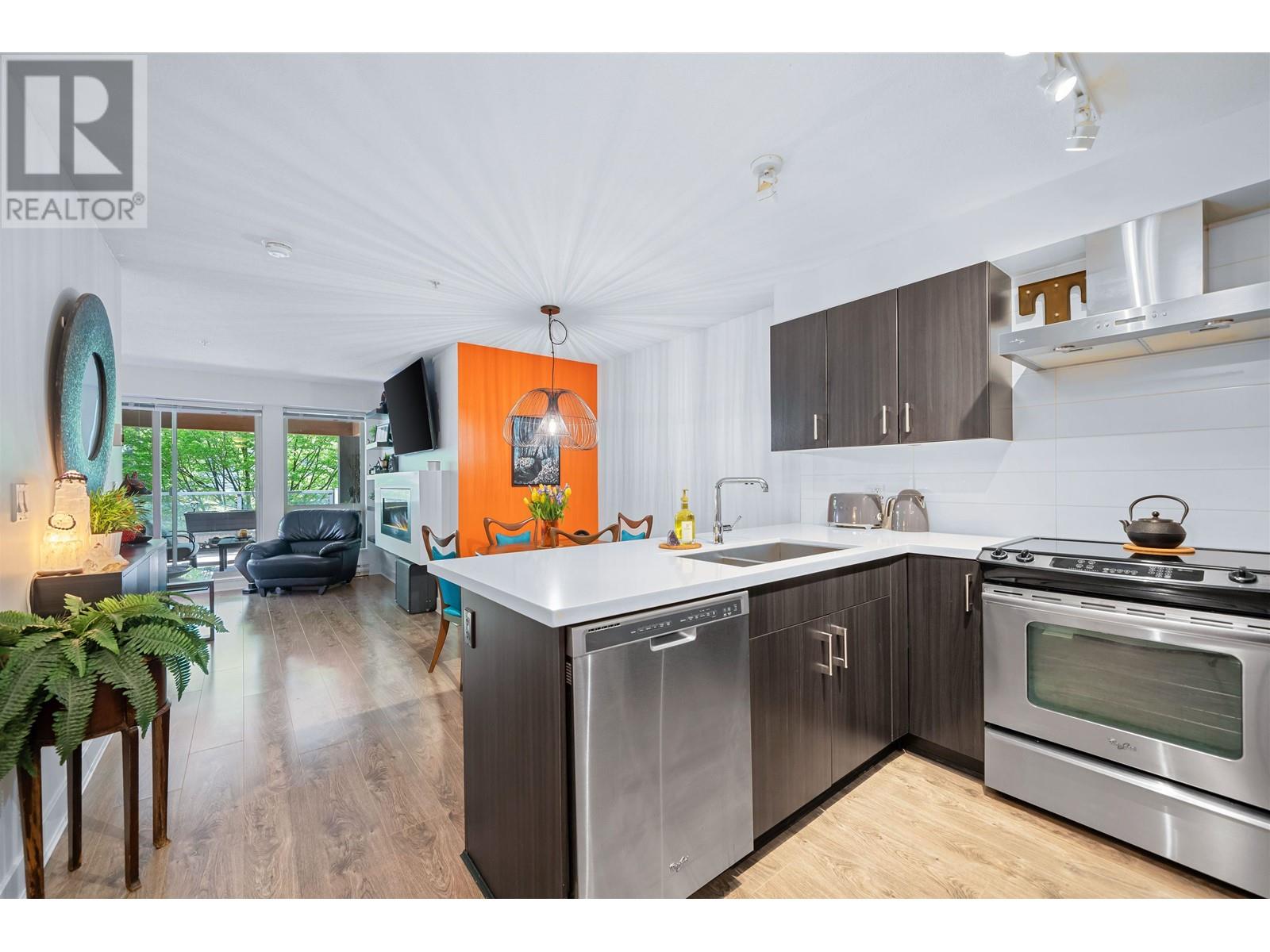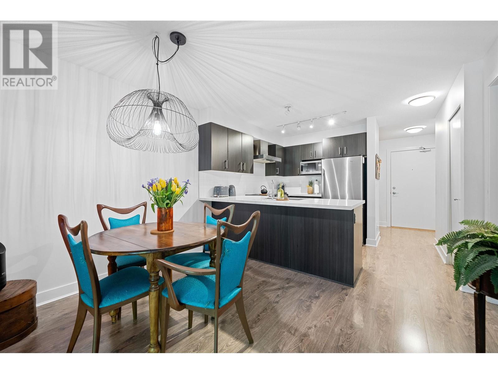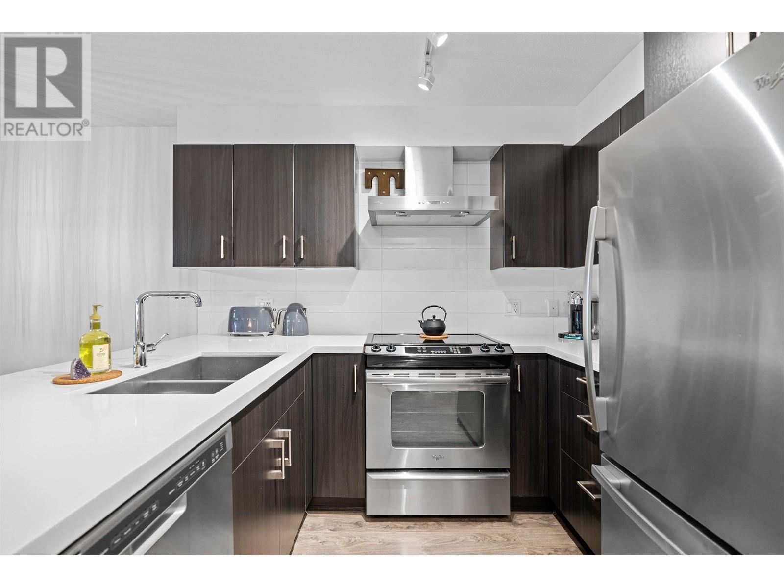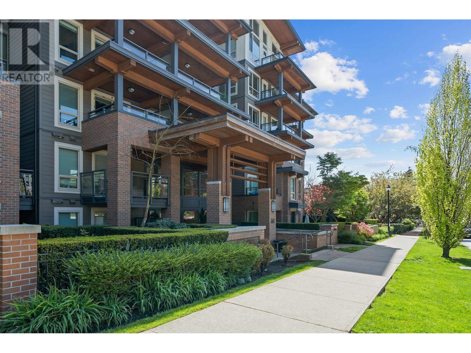 The Dominion Bldg - Experience the exceptional charm of this remarkable project, featuring outstanding architectural design & premium construction. One Bdrm unit complete with a flex area, is sure to impress. The open layout boasts high-end finishes throughout, including s/s appliances, quartz countertops, & porcelain tiling in the bathroom, complimented by laminate flooring throughout. Situated at the back of the building, this unit offers a quieter living experience. Enjoy the expansive south-facing outdoor covered deck, surrounded by lovely trees that provide both privacy & an extended living space-perfect for BBQ´s & rainy day.The location is incredibly convenient with easy access to SkyTrain, bus, downtown, shopping, parks & River Walk along the Fraser River. Move-In & ENJOY! (id:48970) Show More