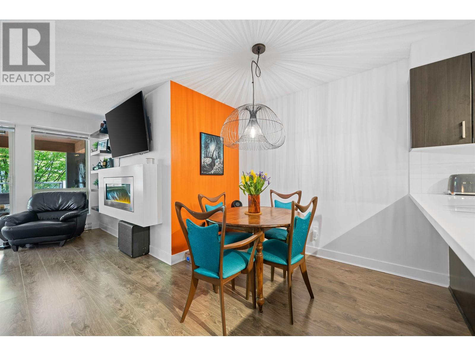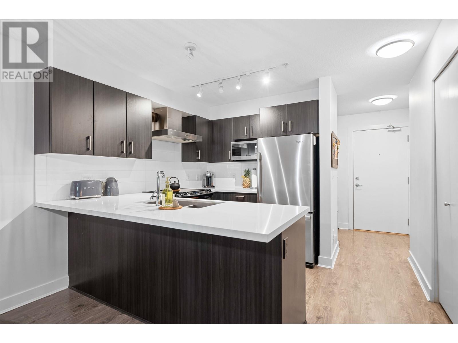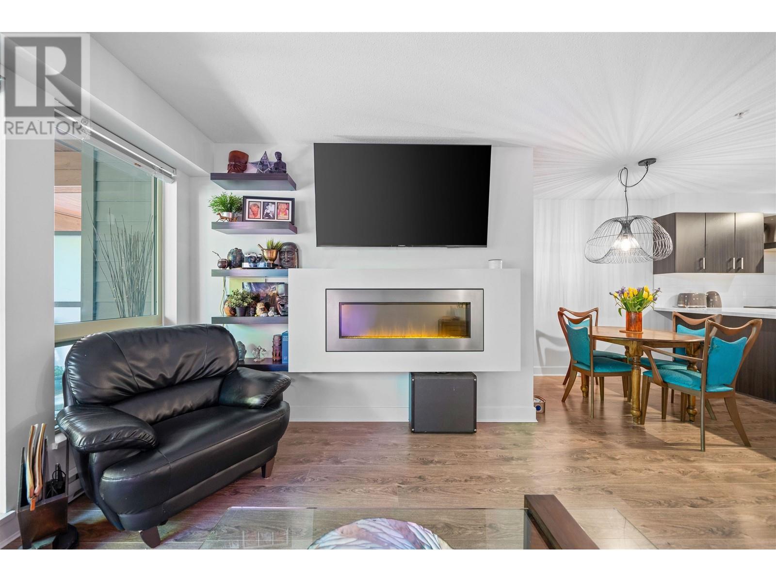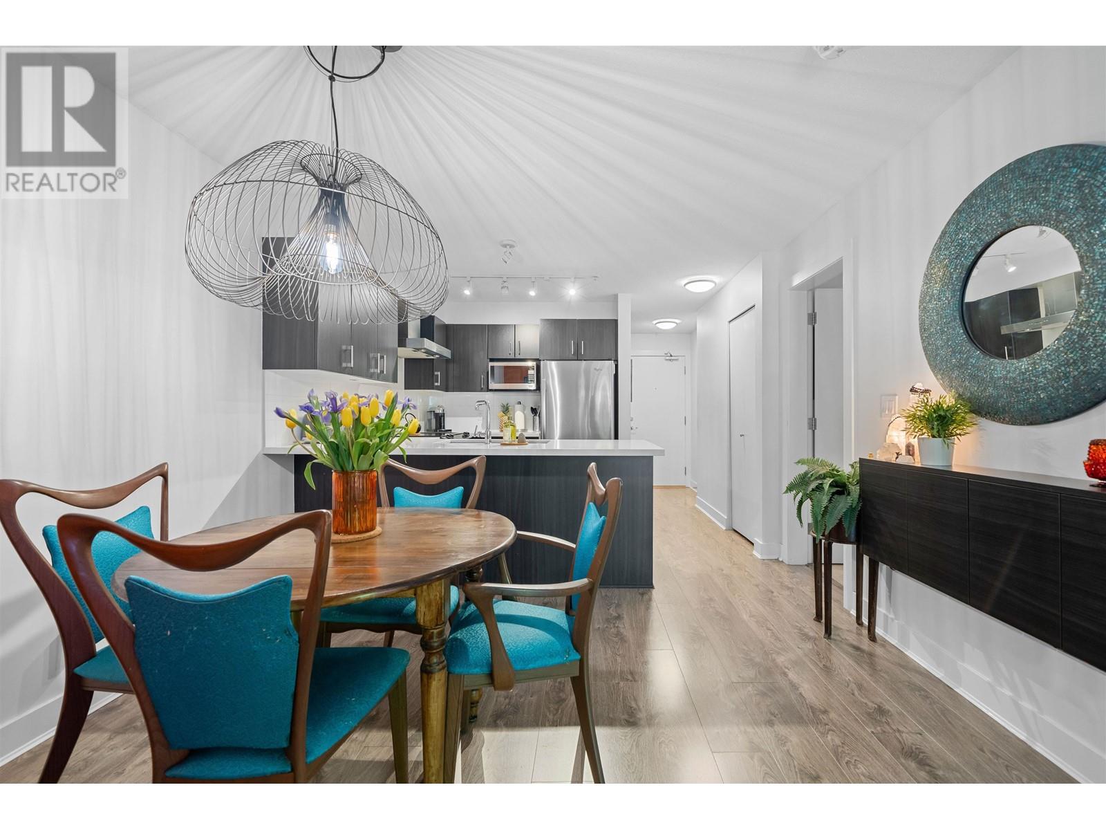 The Dominion Bldg - Experience the exceptional charm of this remarkable project, featuring outstanding architectural design & premium construction. One Bdrm unit complete with a flex area, is sure to impress. The open layout boasts high-end finishes throughout, including s/s appliances, quartz countertops, & porcelain tiling in the bathroom, complimented by laminate flooring throughout. Situated at the back of the building, this unit offers a quieter living experience. Enjoy the expansive south-facing outdoor covered deck, surrounded by lovely trees that provide both privacy & an extended living space-perfect for BBQ´s & rainy day.The location is incredibly convenient with easy access to SkyTrain, bus, downtown, shopping, parks & River Walk along the Fraser River. Move-In & ENJOY! (id:48970) Show More