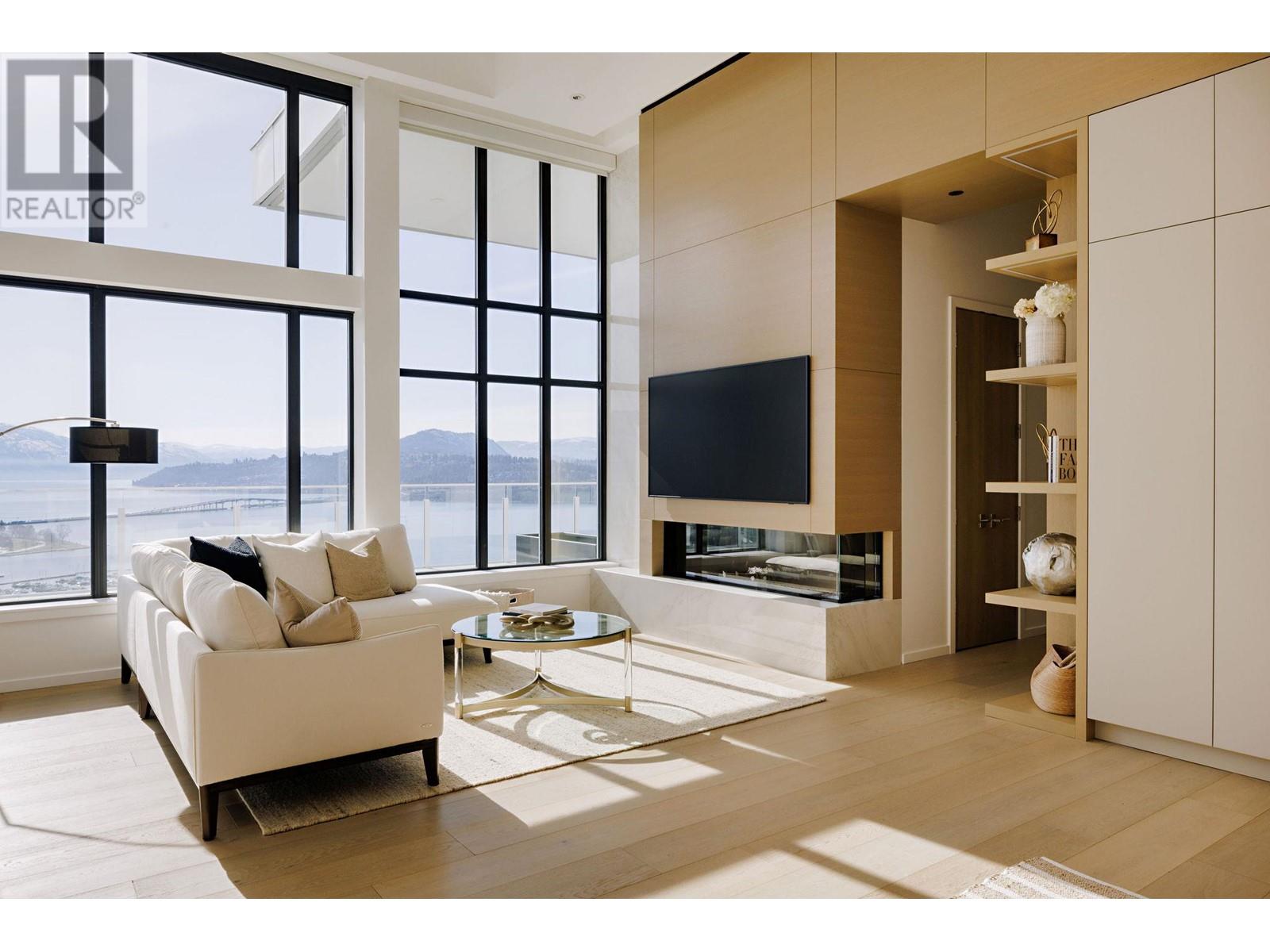 This penthouse at ONE Water Street, elegantly defines Okanagan urban living. Compromising one-half of the 29th floor and purposefully designed to make the most of Kelowna's vistas and natural light, enjoy captivating panoramic views through large spanning bay windows, offering unparalleled sights of the city, lake, and mountain scape. Expansive 3-bedroom home offering over 2400 sq. ft. of open concept living ideal for everyday living and entertaining. Well-appointed with carefully selected custom finishings, a superior appliance package and soaring ceilings. Designed with outdoor living in mind, enjoy enthralling views from the immense outdoor space totalling over 1,200 sq. ft. and featuring a fire pit, hot tub and outdoor kitchen. Retreat to the sensational primary suite with a spa-inspired en suite. SMART Home package for your convenience with automatic blinds, audio, climate control, security and lighting. Secure parking for 3 cars. Residents of ONE Water will relish in access to The Bench. The landscaped 1.3-acre amenity oasis is comprised of two impressive swimming pools, oversized hot tub, a pickleball court, outdoor seating with fire pit enclaves, a dog park, and so much more. Just steps from your front door, you will find a selection of restaurants, cafes, retail stores, and services lining the ONE Water Street streetscape. Georgie Award Finalist for BC Residential Community of the Year. (id:48970) Show More