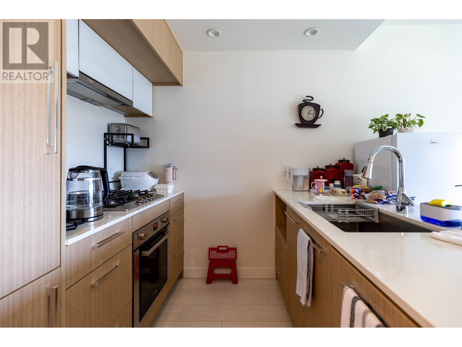 Welcome to Orchid by Beedie-luxury concrete high-rise living in the heart of Richmond. This bright, south-facing 1 bedroom + den unit offers 517 SF of functional space with central A/C, Bosch appliances, Grohe fixtures, and 9 ft ceilings. Enjoy a quiet courtyard view and modern finishes throughout. Steps to Lansdowne SkyTrain, T&T, Kwantlen, and top dining/shopping. Building amenities include gym, yoga room, lounge, garden, playground, 1 parking & 1 locker. Like-new condition in a prime location! (id:48970) Show More