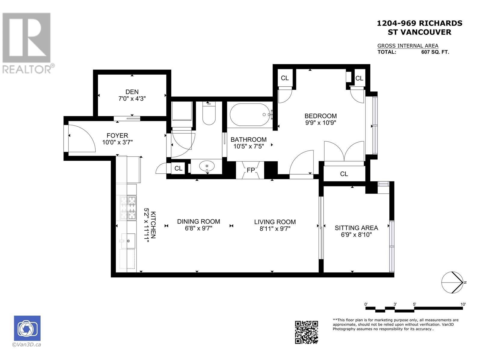 - Area 607 sq ft