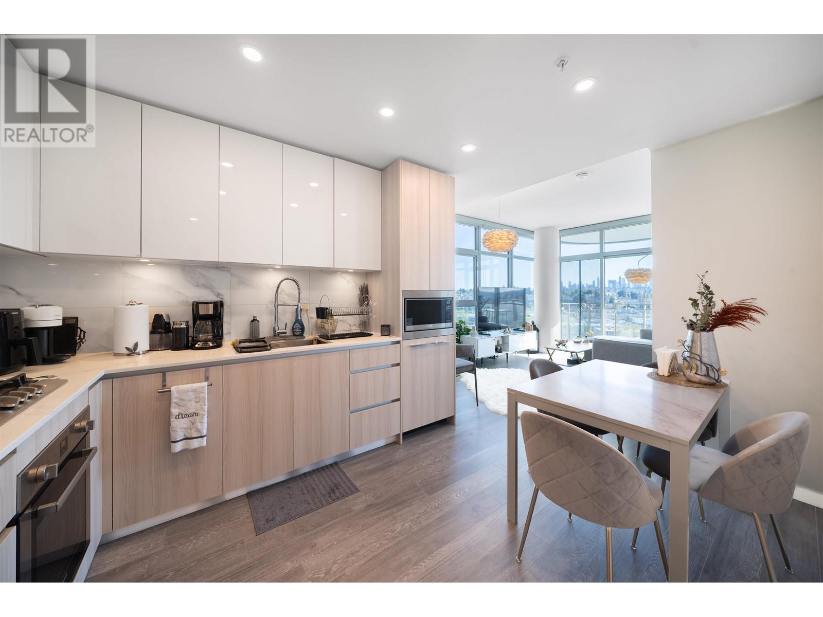 Discover upscale living in this 579 sqft CORNER one-bedroom unit with a den, just a 5-minute walk from the Skytrain. Enjoy southeast views of Metrotown from your 150 sqft balcony. Featuring 9-foot ceilings and air-conditioning, the unit boasts a gourmet kitchen with quartz countertops, premium cabinets, and a Bosch gas cooktop with an integrated fridge. Includes one secured parking space, a storage locker, and access to over 30,000 sqft of rooftop amenities, including a pool, hot tub, fitness center, and steam rooms. Minutes from Brentwood Town Centre, this property offers luxury and convenience. Don´t miss out! (id:48970) Show More