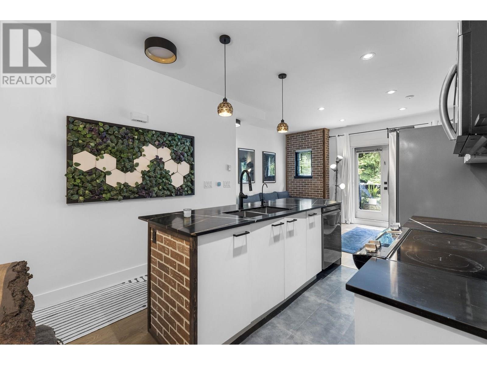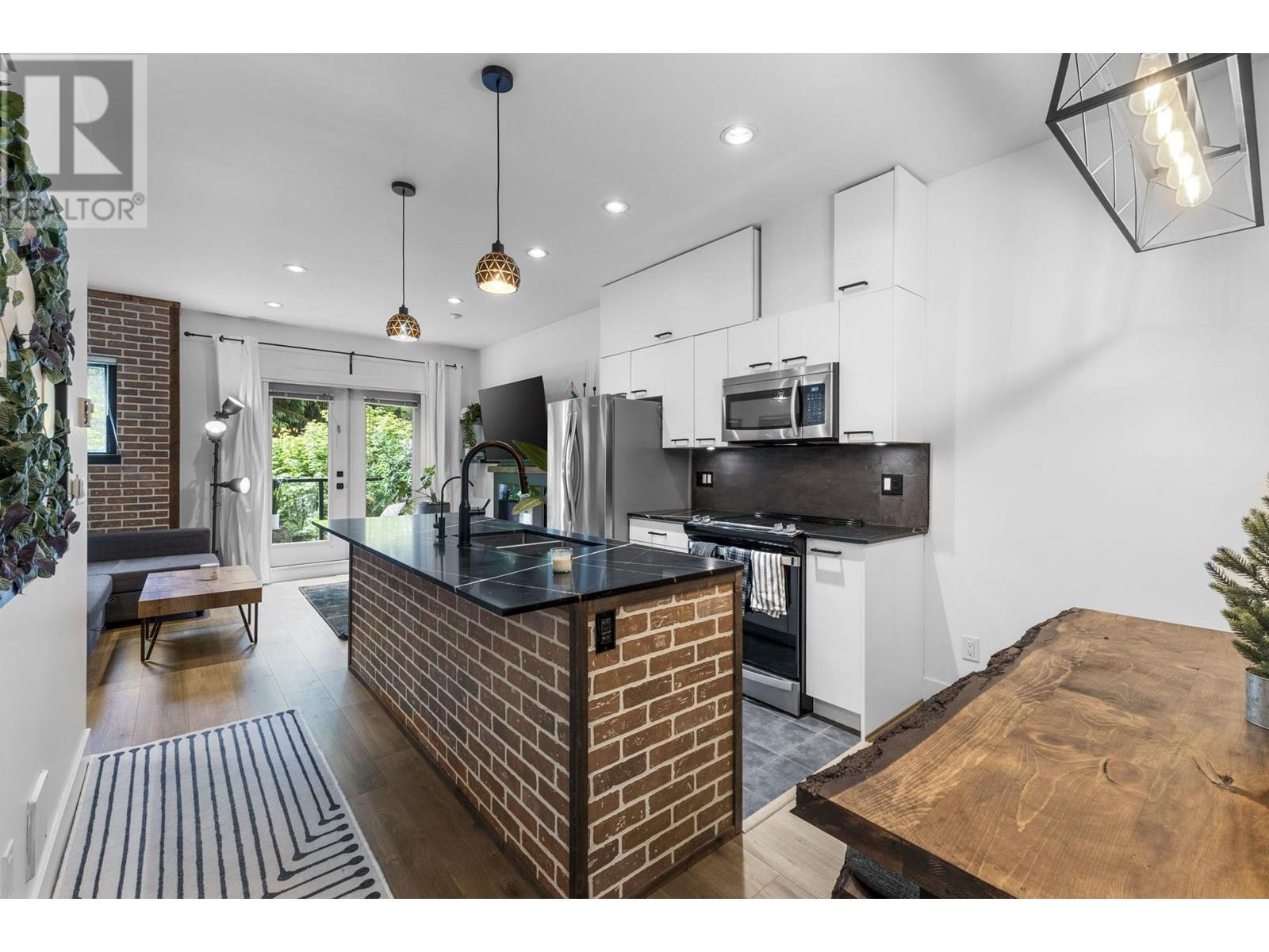 Stylish, updated, and perfectly located. This bright and welcoming townhome has been professionally renovated throughout with hardwood floors, quartz counters, stainless steel appliances, and a spacious open layout. Upstairs includes a large nook that's perfect for a home office, nursery, or reading space. Enjoy your own private backyard with direct access to peaceful green space, ideal for relaxing, playing, or entertaining. The tandem garage offers flexible space for storage or a small gym setup. Located in a quiet, family-friendly complex with a well-run strata. Just minutes to top schools, transit, Suter Brook, Newport Village, Rocky Point, and Brewery Row. (id:48970) Show More