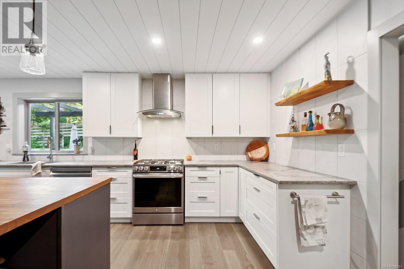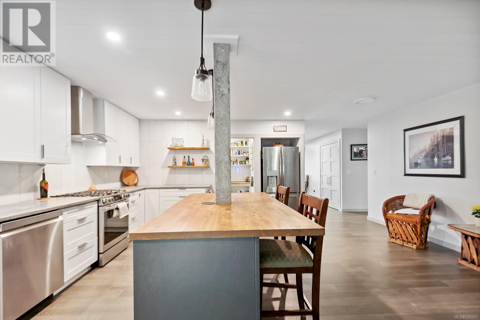 Nestled near picturesque Maple Bay & its bustling marina, this beautifully renovated 2,086 sq ft rancher offers a perfect blend of luxury & comfort. Just minutes from one of B.C.‘s best bike trails, a haven for outdoor enthusiasts. Step inside to discover a serene living room with a cozy fireplace & open-concept floor plan ideal for modern living. The chef-worthy kitchen boasts custom cabinetry, a large island, walk-in pantry, & an inviting eating area perfect for hosting large family gatherings. The private, sequestered primary bedroom features a custom-finished walk-in closet and a spacious 4-piece ensuite. Two additional generous bedrooms and a large laundry area add to the home’s functionality. Located at the end of a quiet cul-de-sac, the gated and fully fenced property is a private retreat. The meticulously landscaped backyard backs onto green space, offering peace and tranquility. With plenty of room for your RV or recreational toys, this home is as practical as it is beautiful. (id:48970) Show More