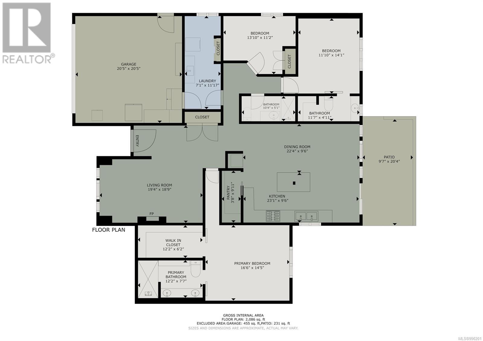 - Total Finished Area: 2086 sqft